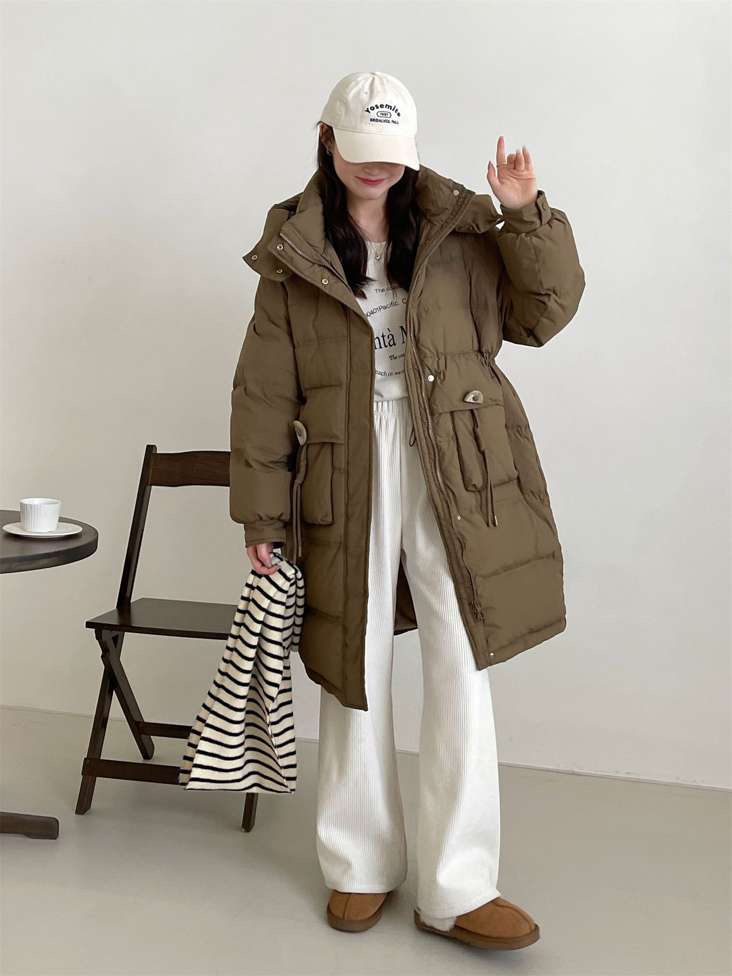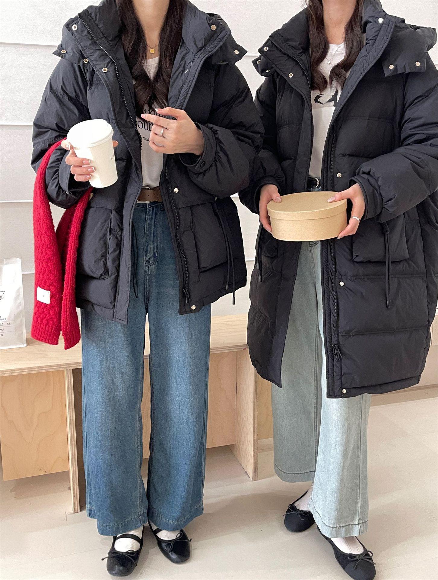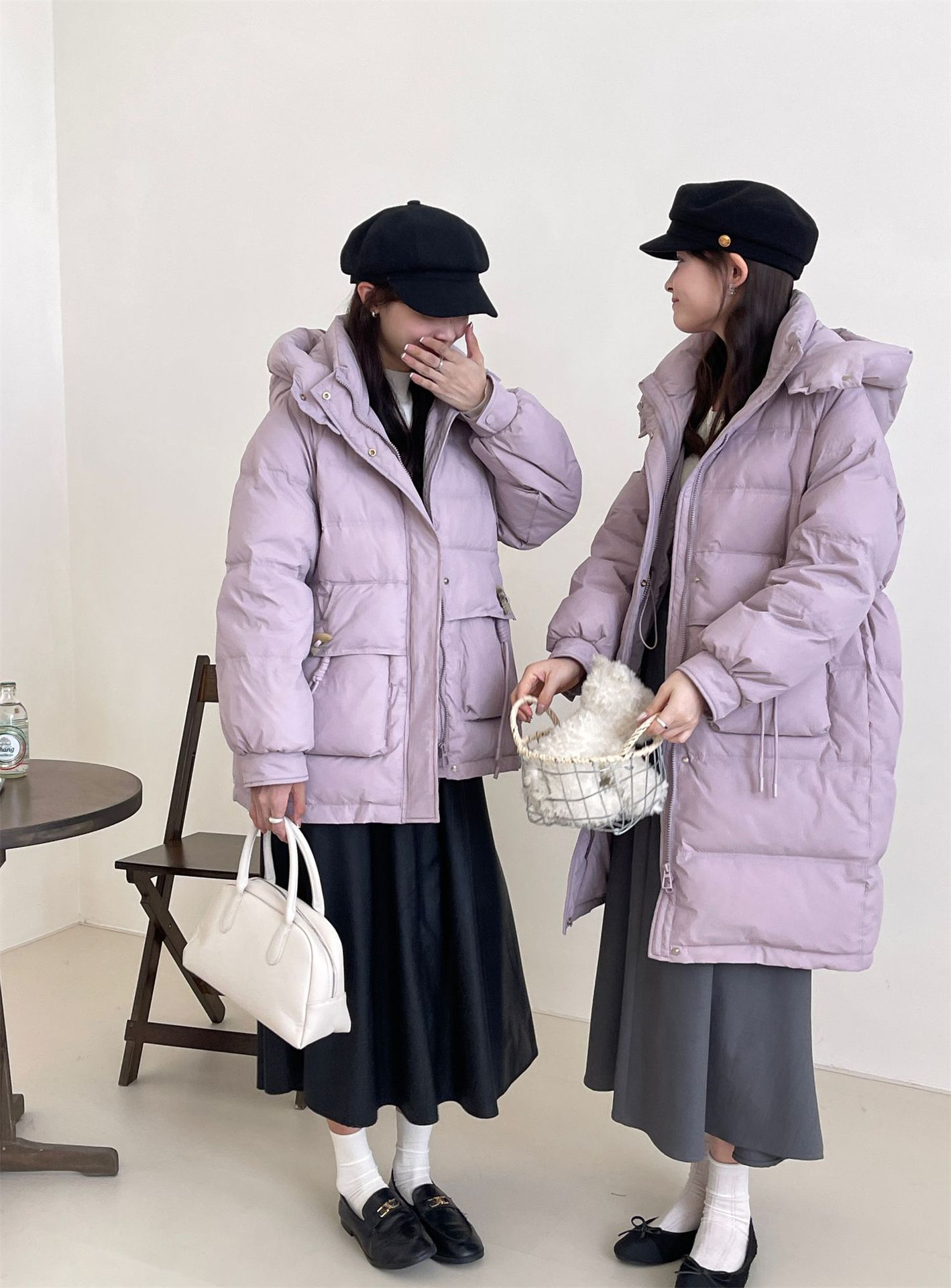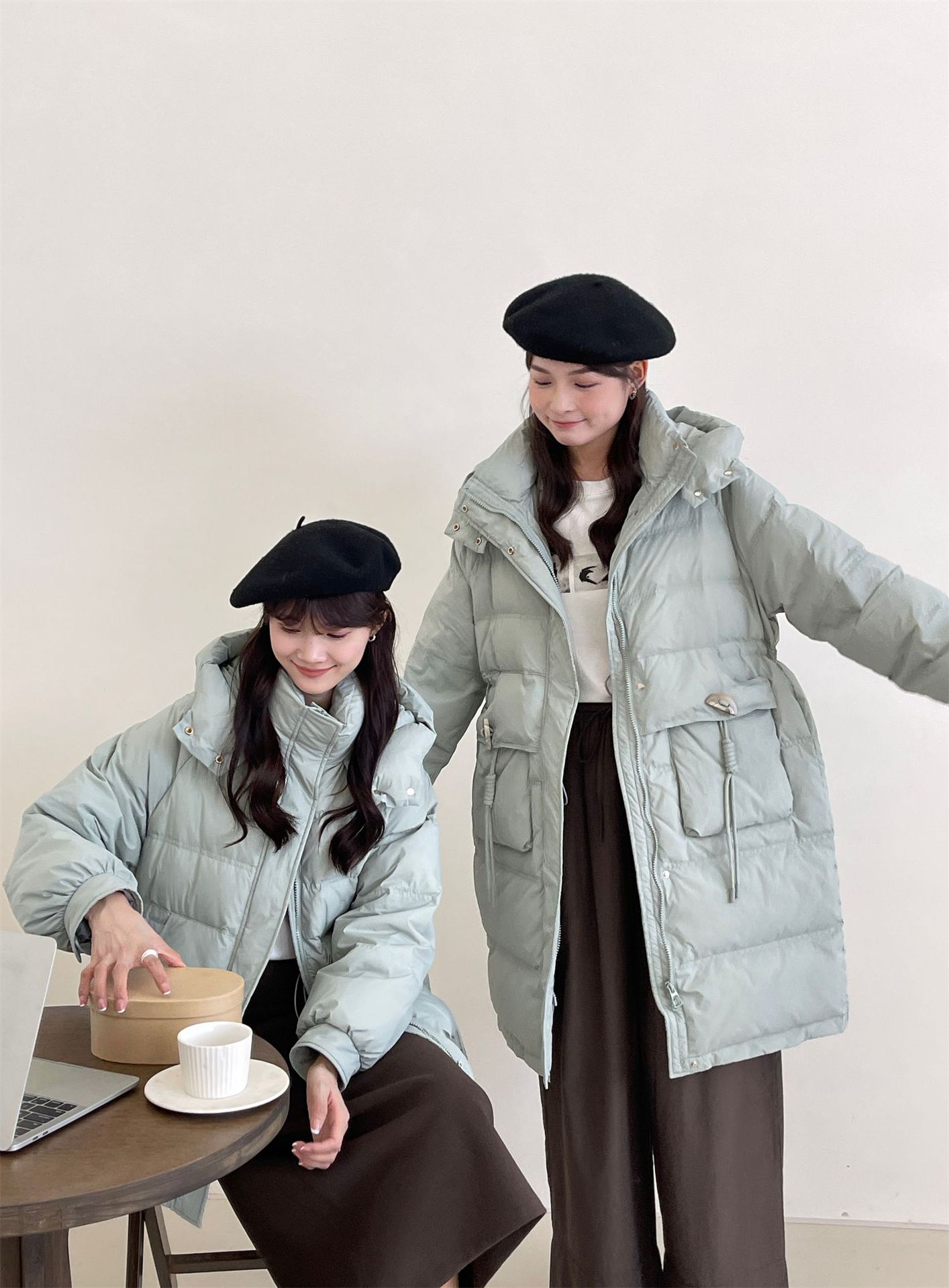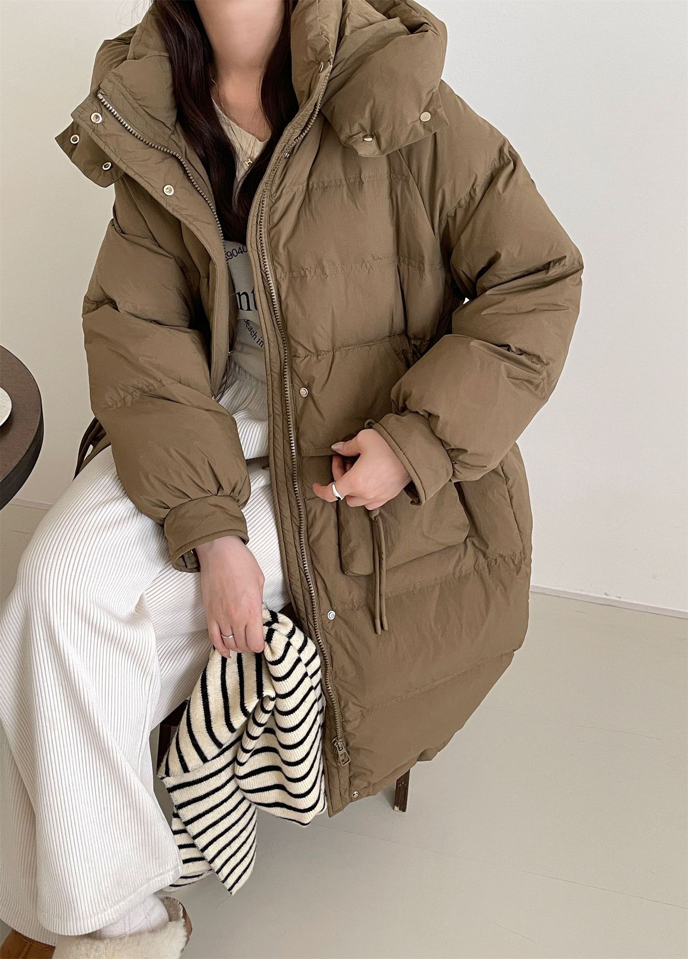 Chamarra corta de plumón con hebilla creciente para mujer Invierno Nuevo Estudiante con capucha Engrosada Cintura Adelgazante Look Plumón de pato blanco Chaqueta cálida