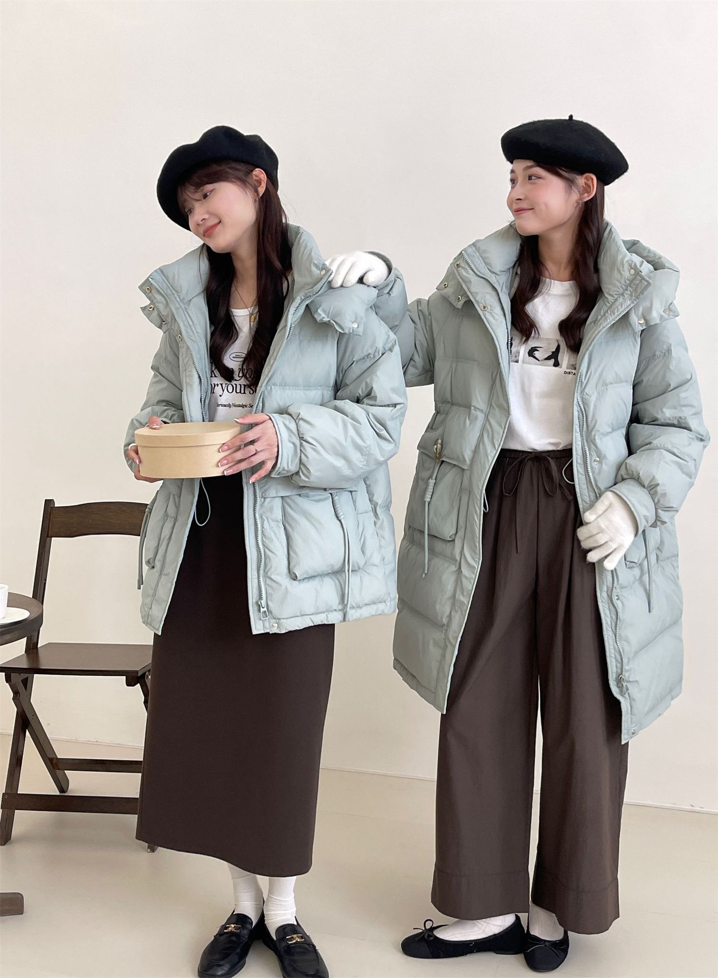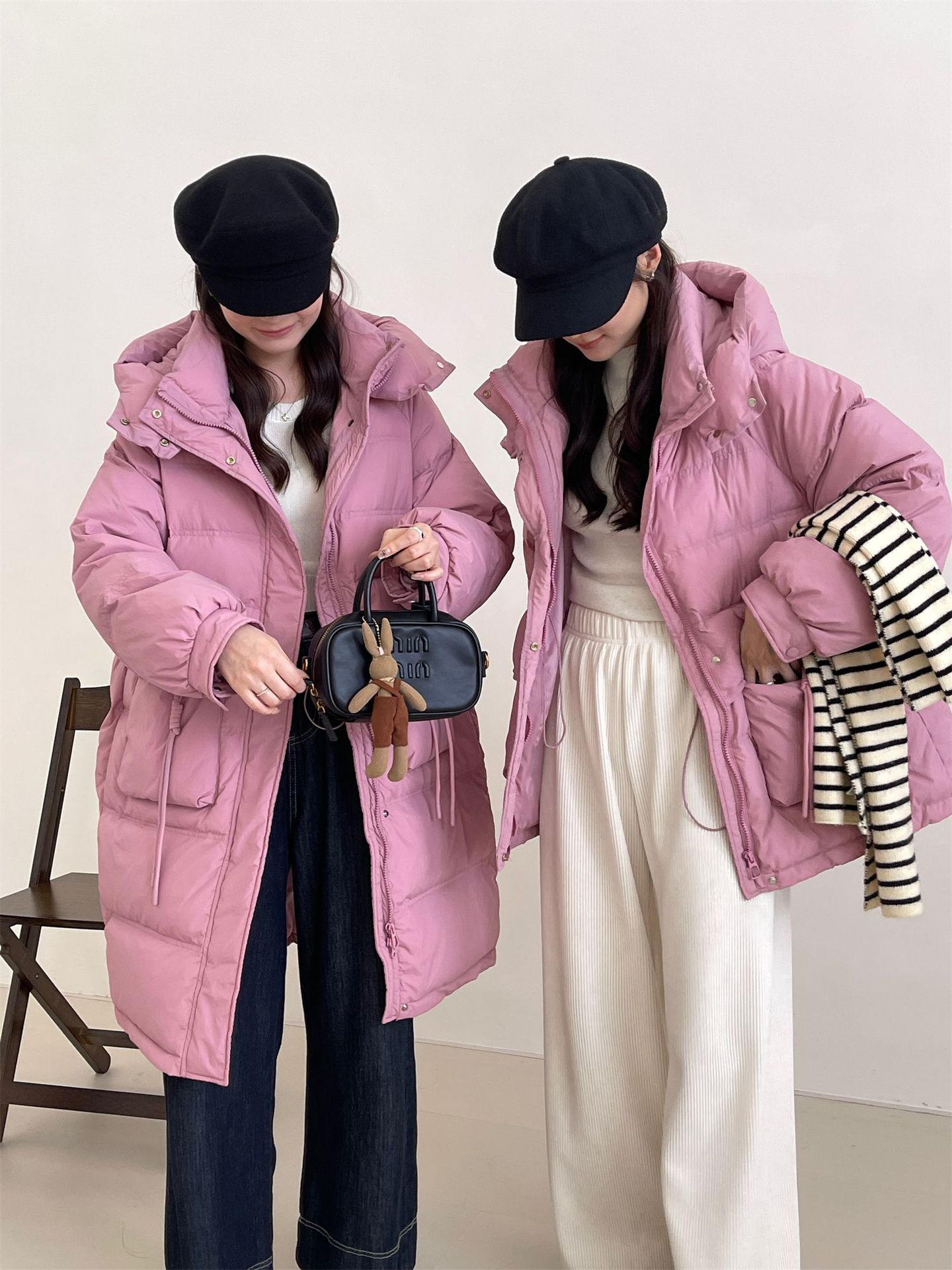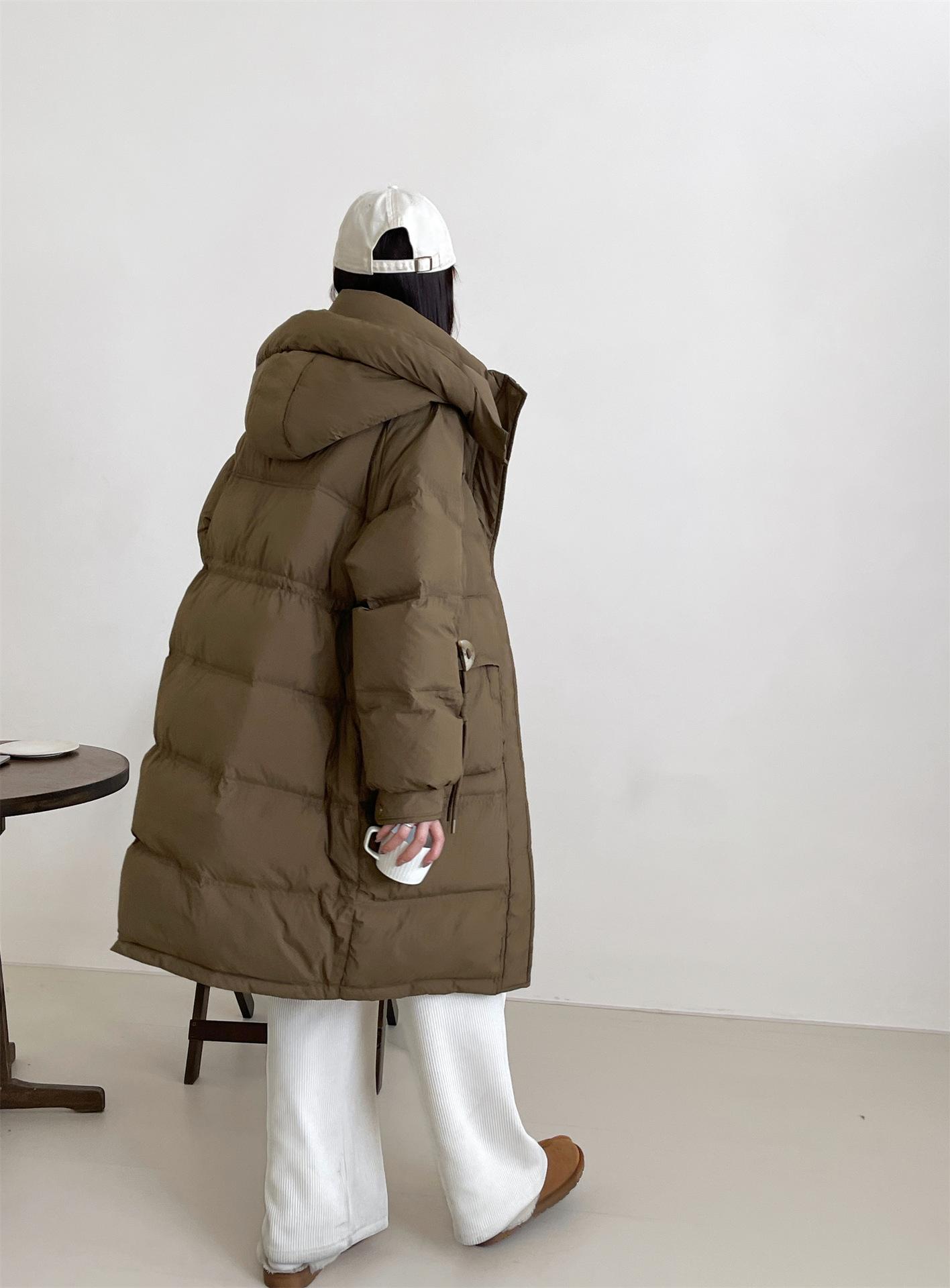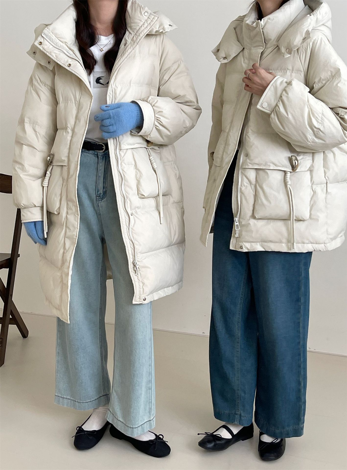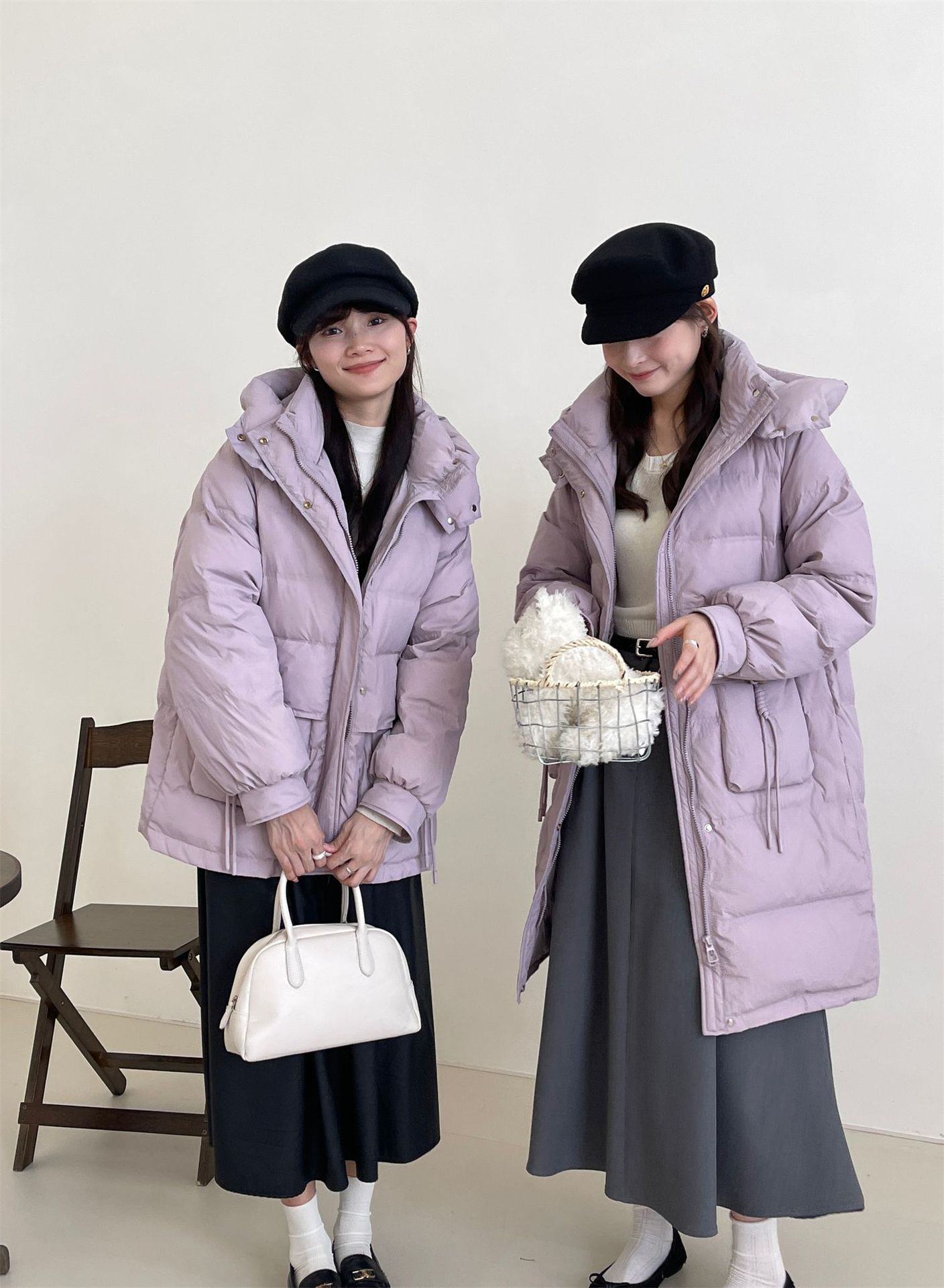 Chamarra corta de plumón con hebilla creciente para mujer Invierno Nuevo Estudiante con capucha Engrosada Cintura Adelgazante Look Plumón de pato blanco Chaqueta cálida
