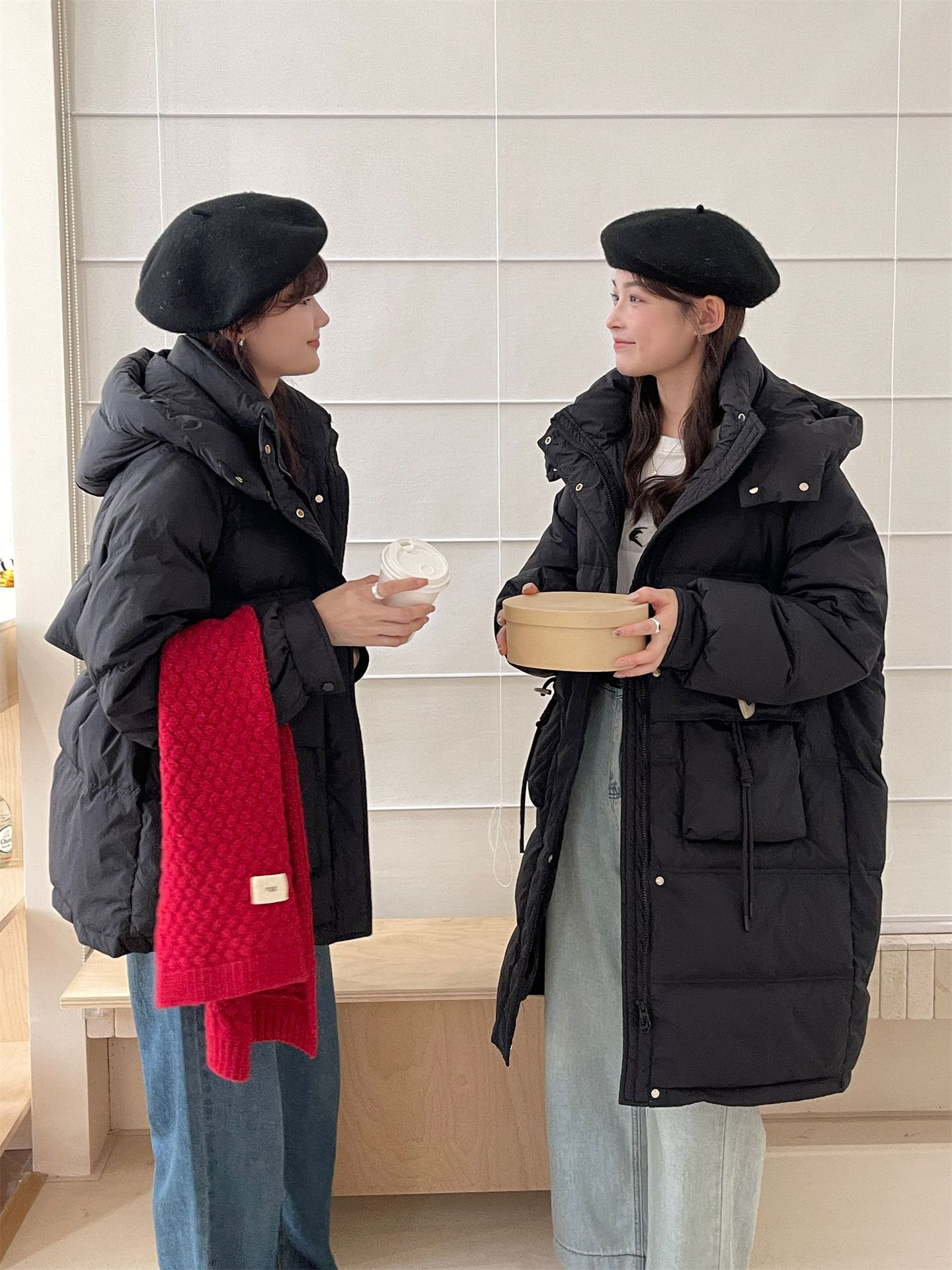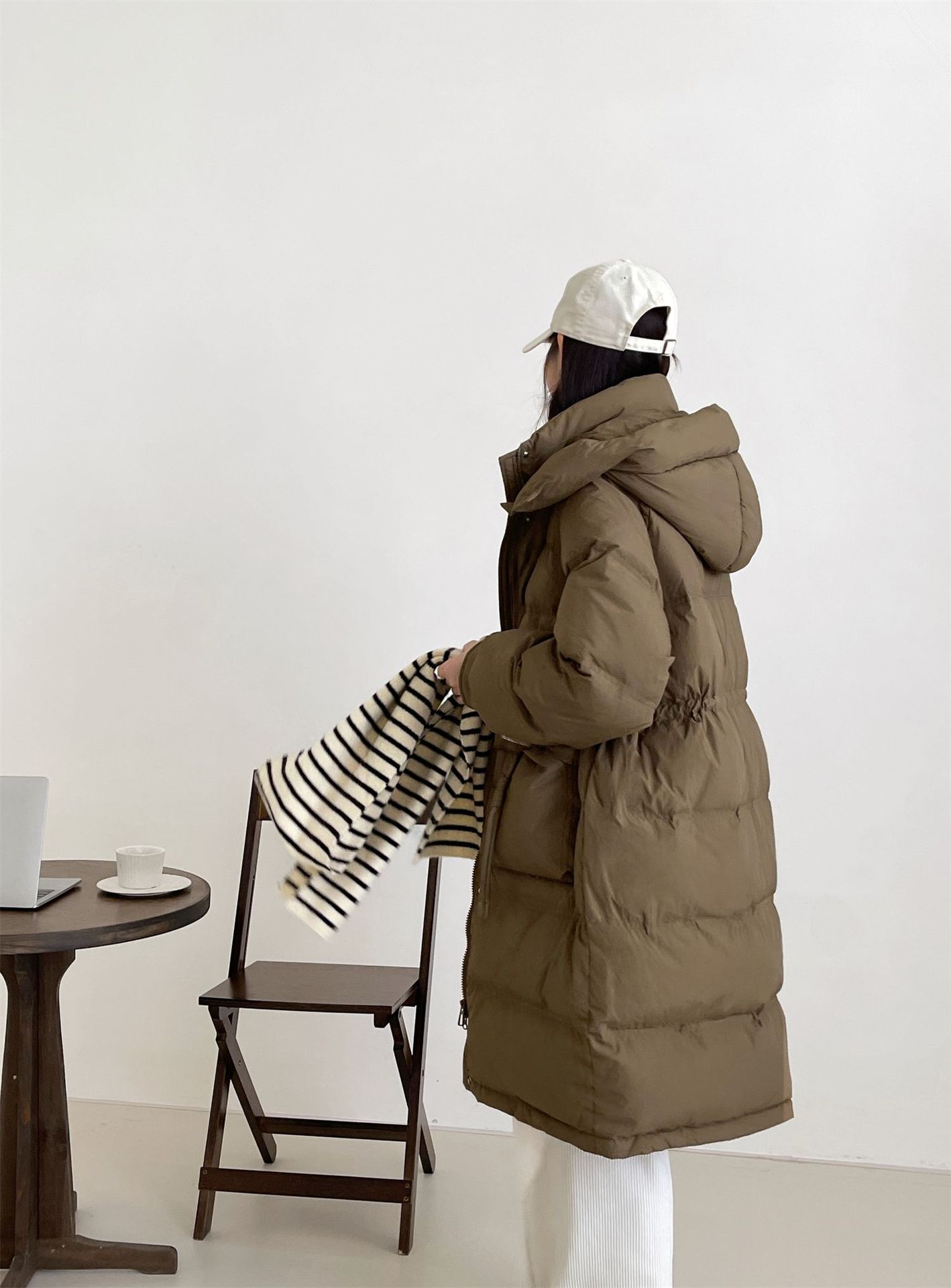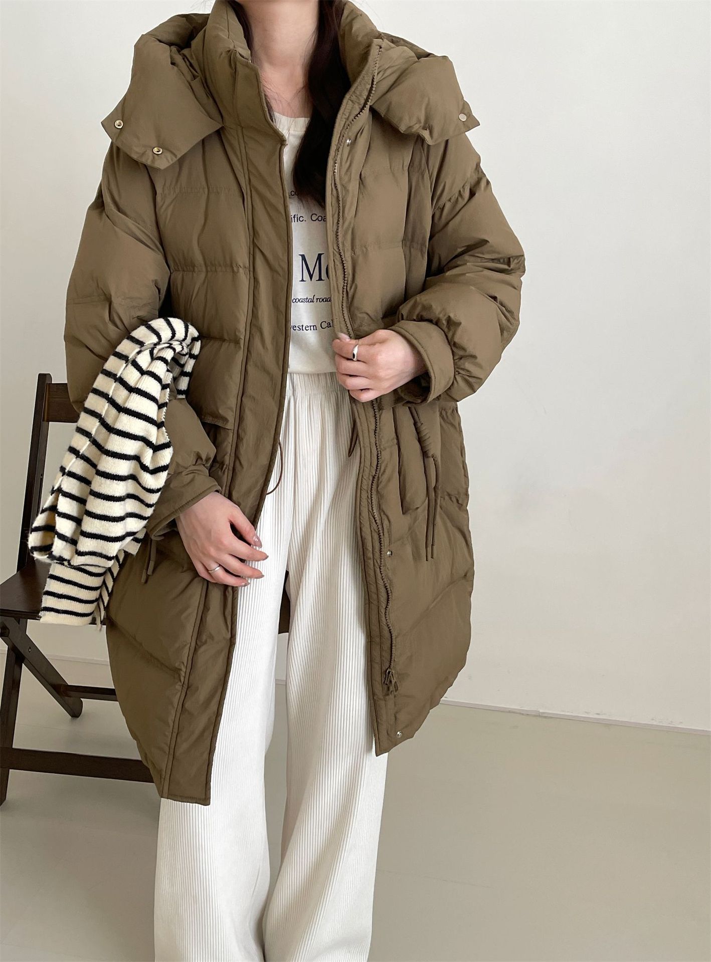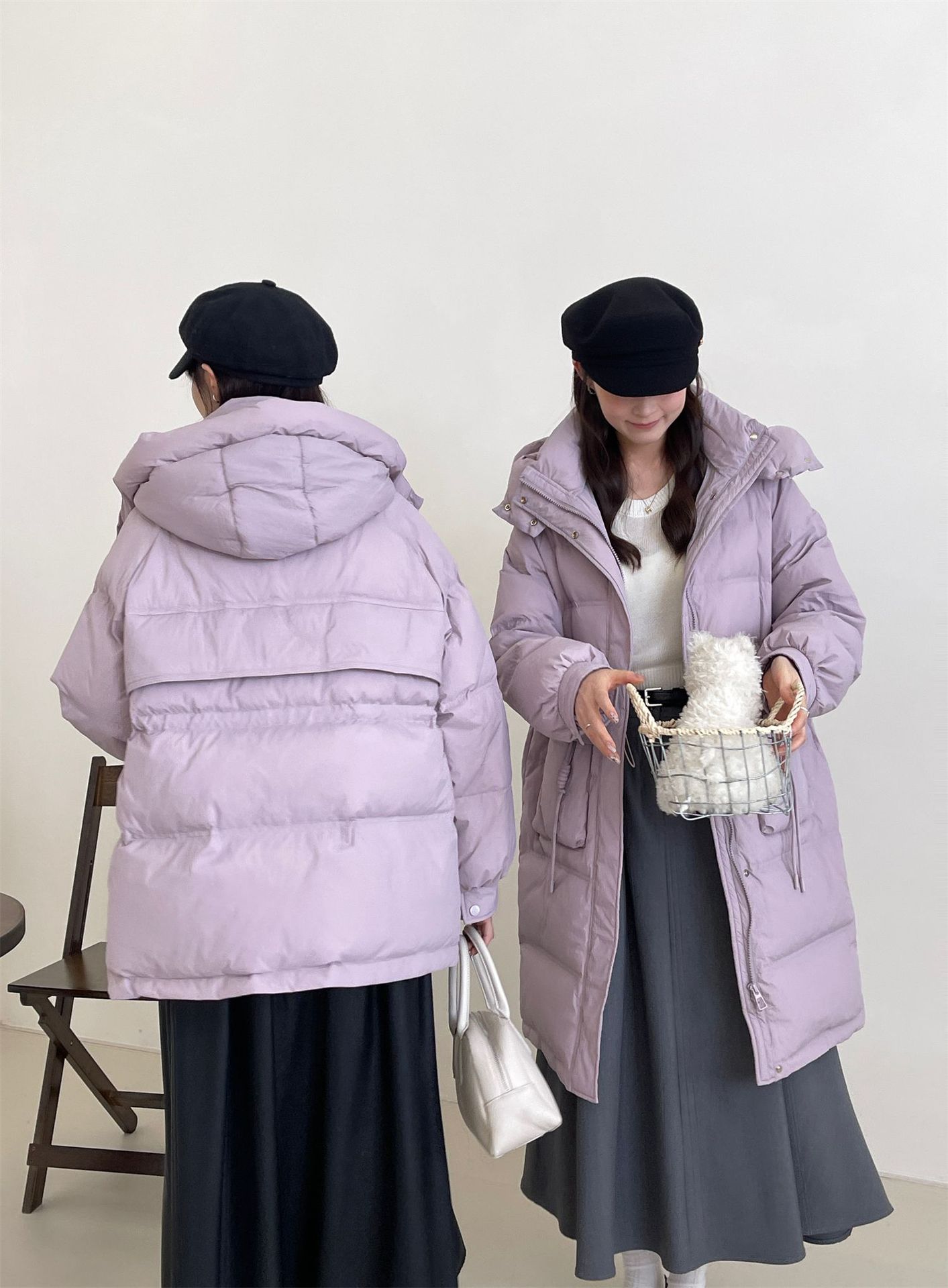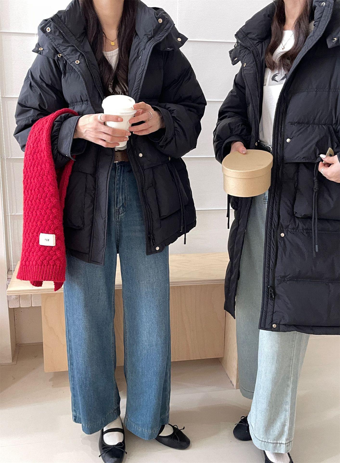 Chamarra corta de plumón con hebilla creciente para mujer Invierno Nuevo Estudiante con capucha Engrosada Cintura Adelgazante Look Plumón de pato blanco Chaqueta cálida