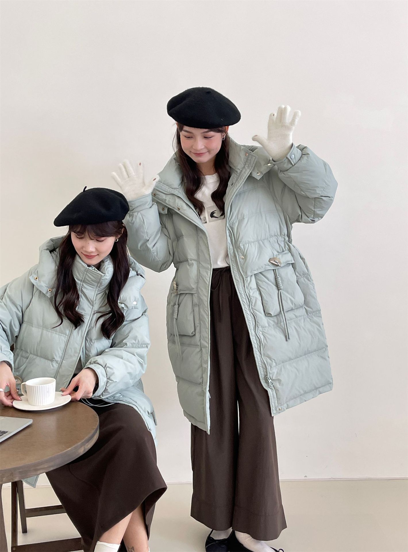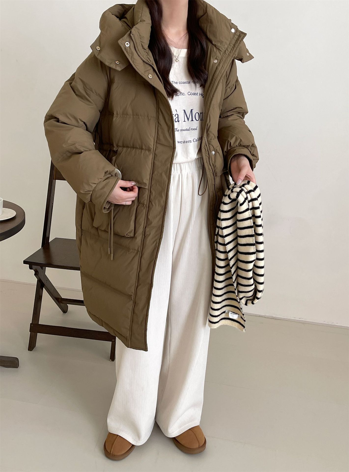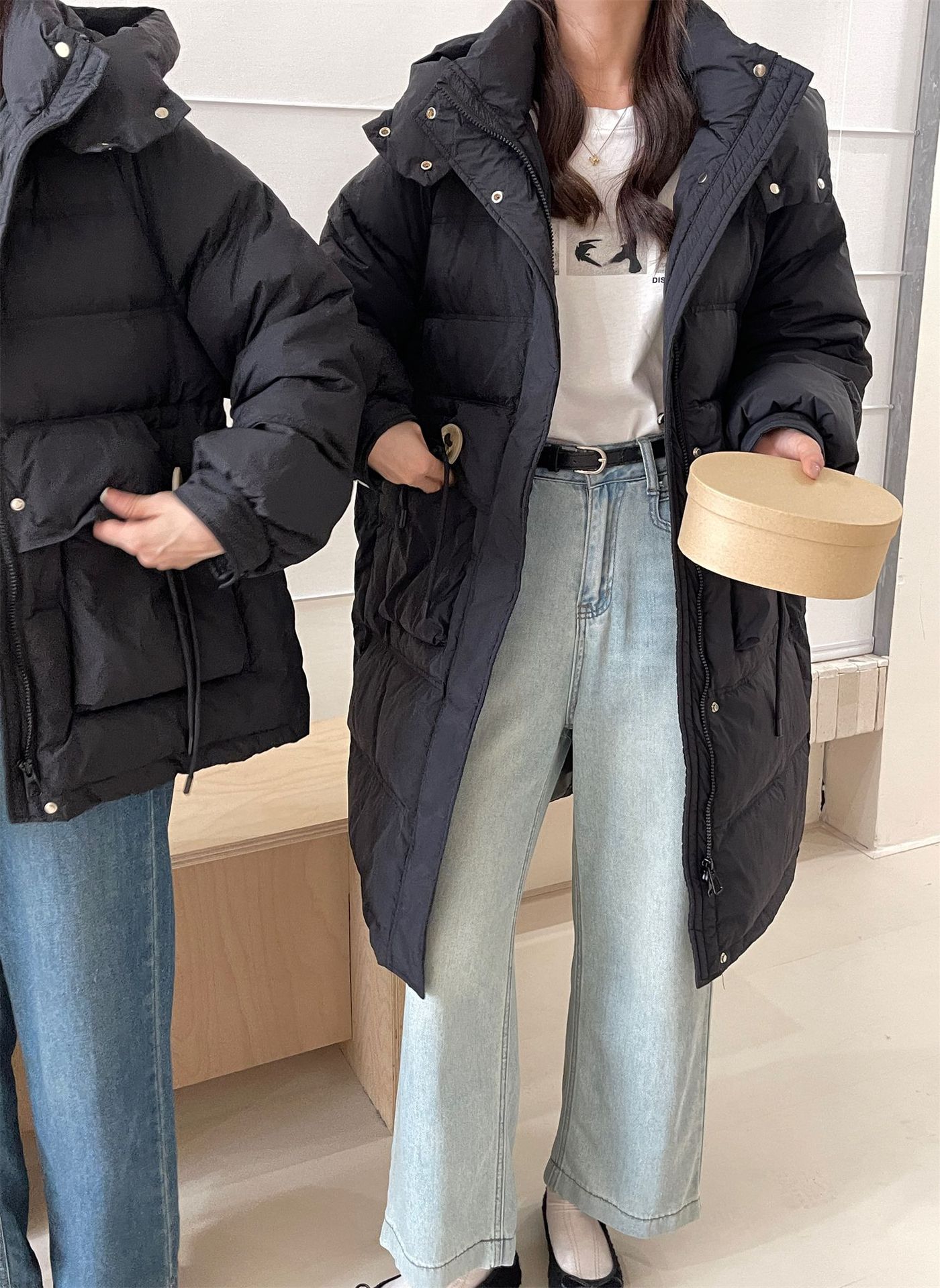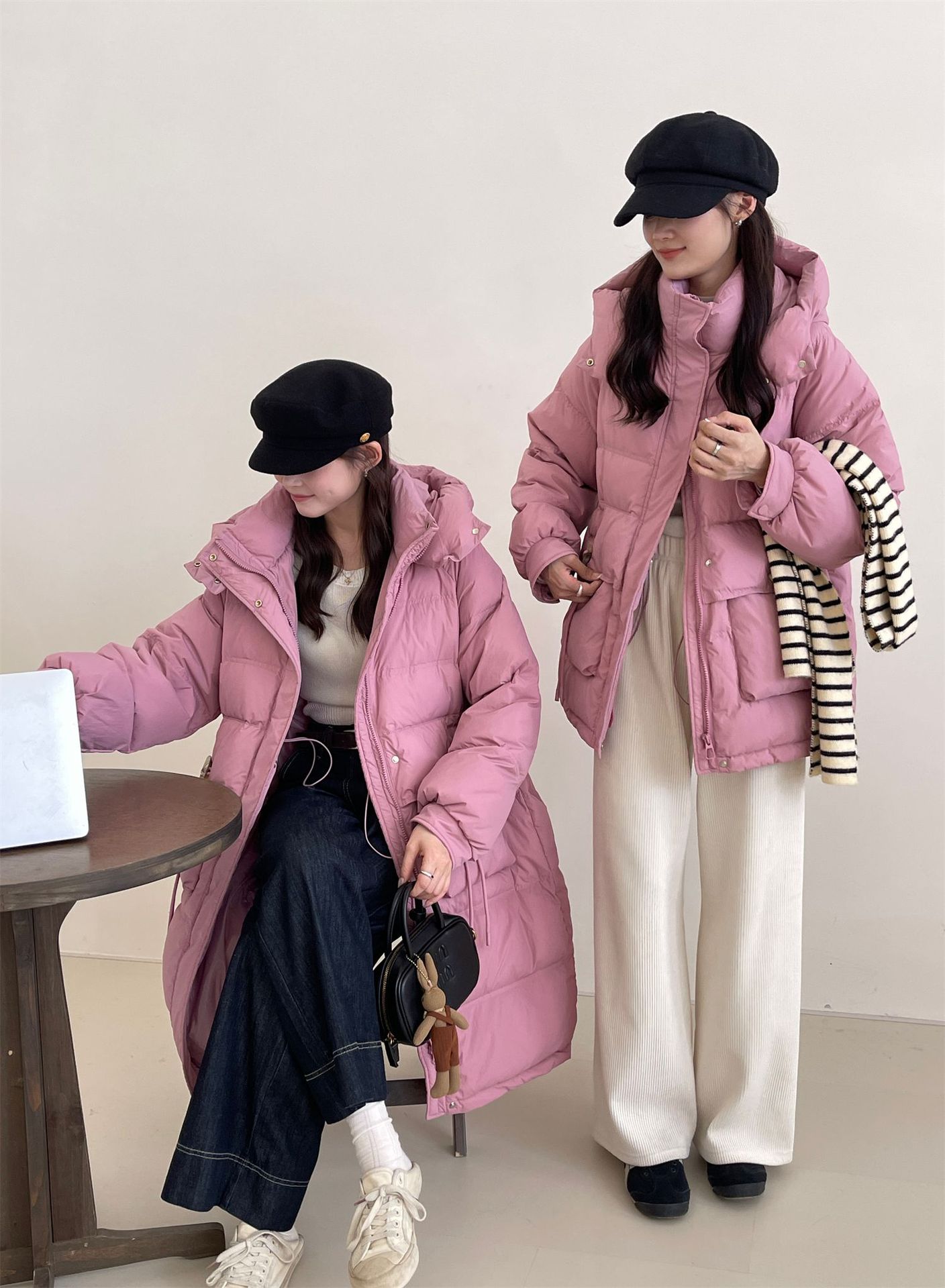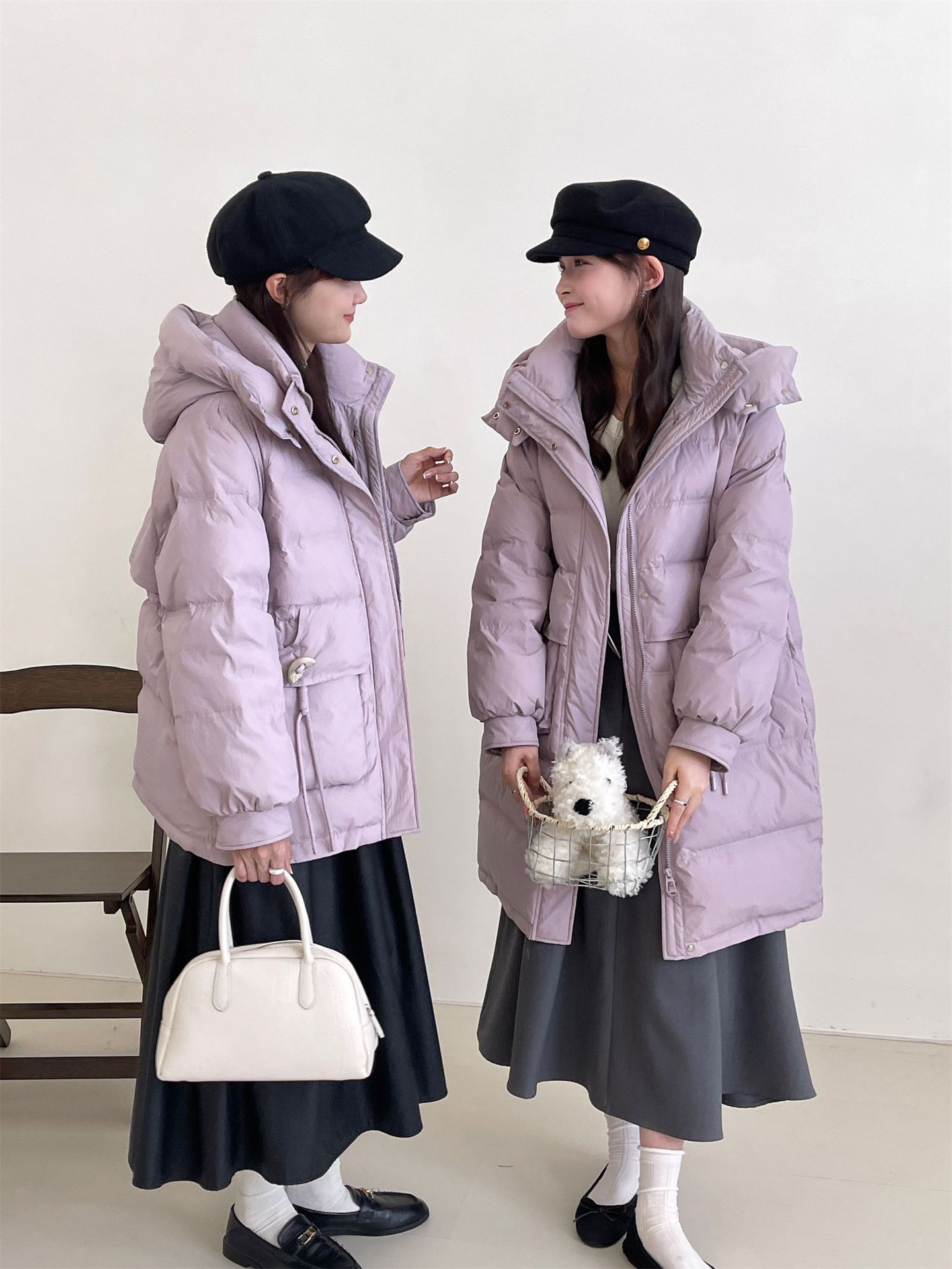 Chamarra corta de plumón con hebilla creciente para mujer Invierno Nuevo Estudiante con capucha Engrosada Cintura Adelgazante Look Plumón de pato blanco Chaqueta cálida