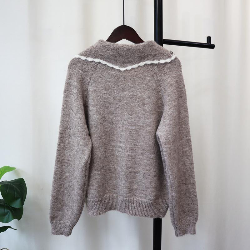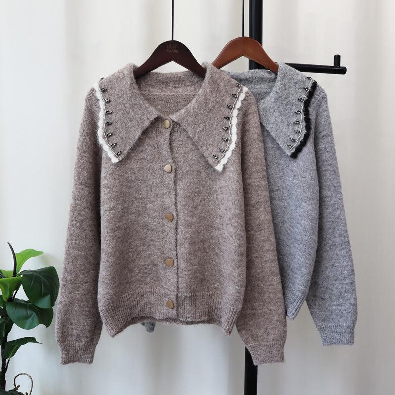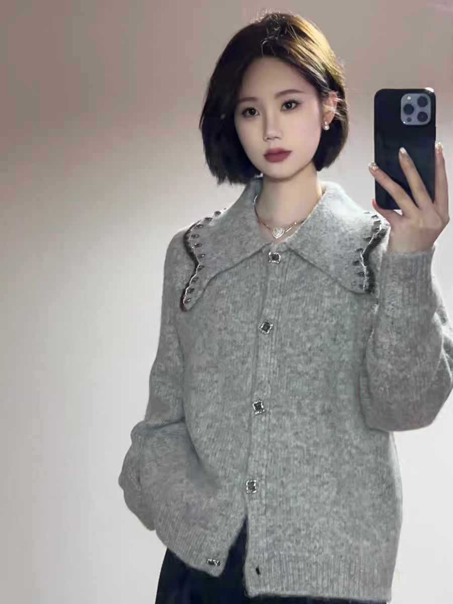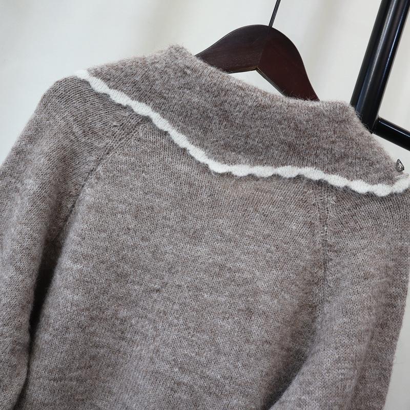 Chaqueta Suéter de Solapa Grande de Estilo Suave para Mujer 2025 Otoño e Invierno Nuevo Diseño Look Holgado Adelgazante Top Cárdigan de Punto