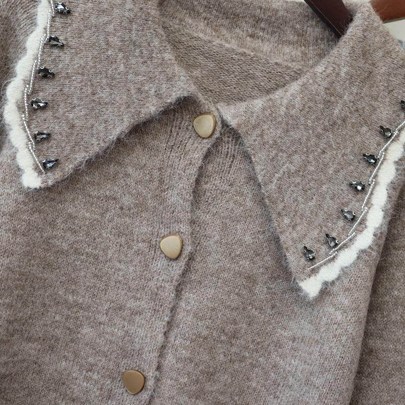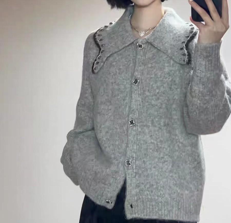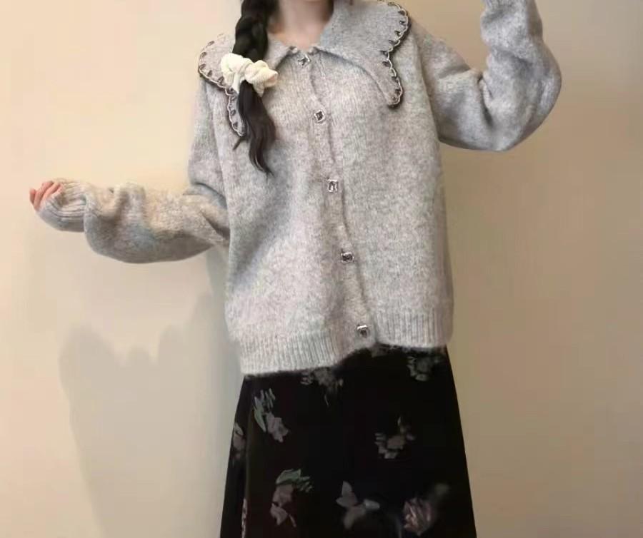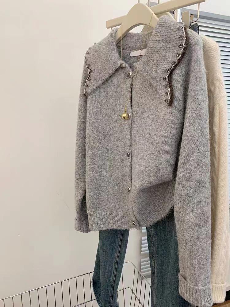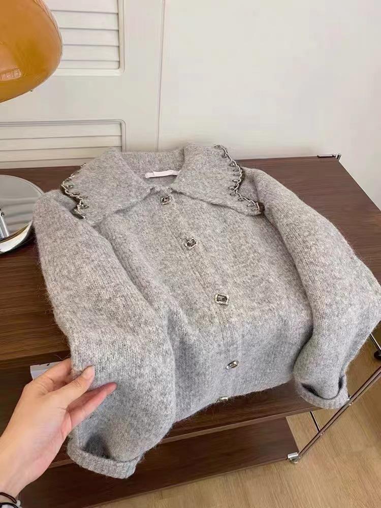 Chaqueta Suéter de Solapa Grande de Estilo Suave para Mujer 2025 Otoño e Invierno Nuevo Diseño Look Holgado Adelgazante Top Cárdigan de Punto