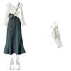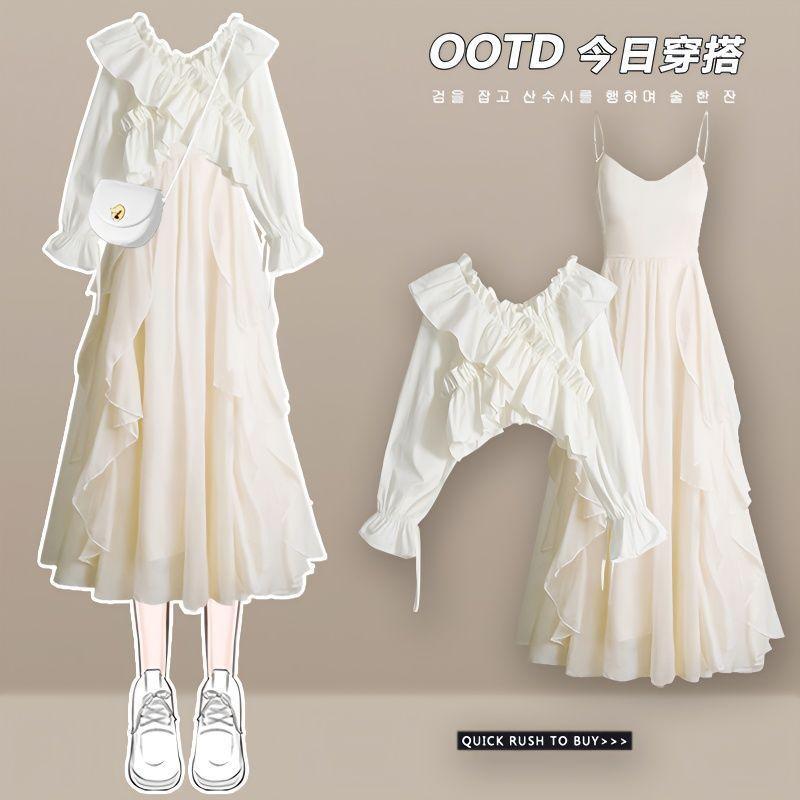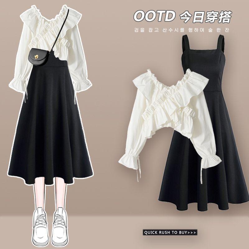 White shirt Denim skirt two-piece set, White shirt apricot skirt two-piece set, White Shirt Black Skirt Two-Pi...