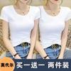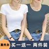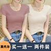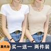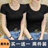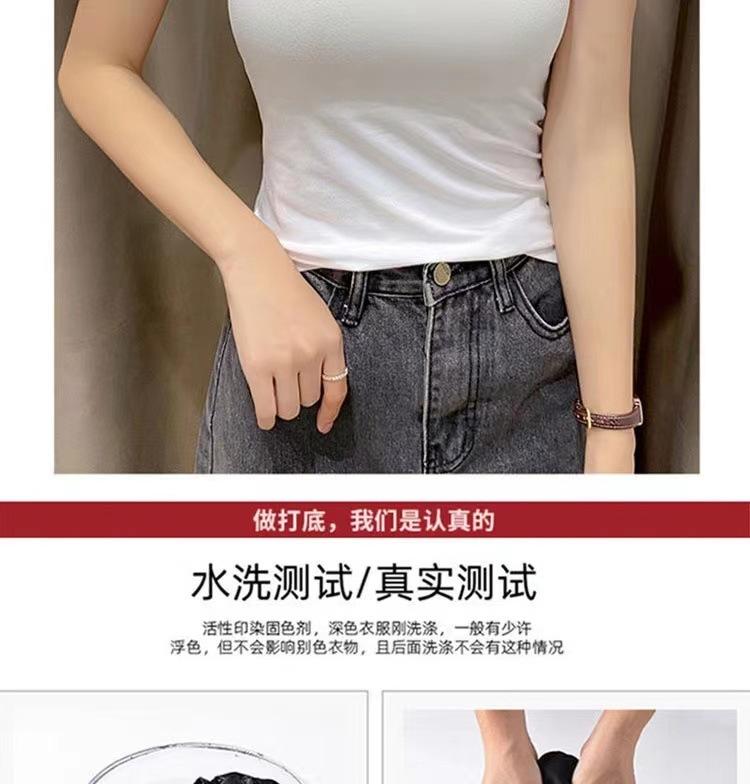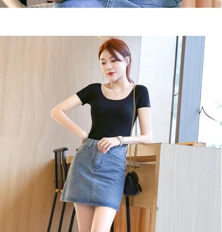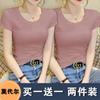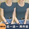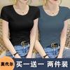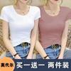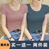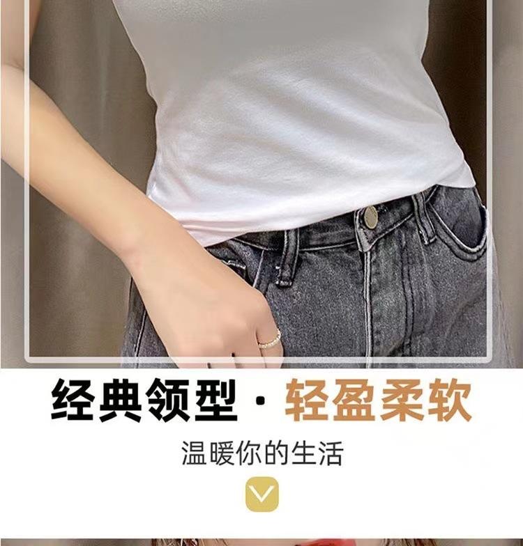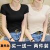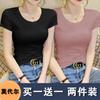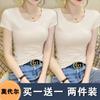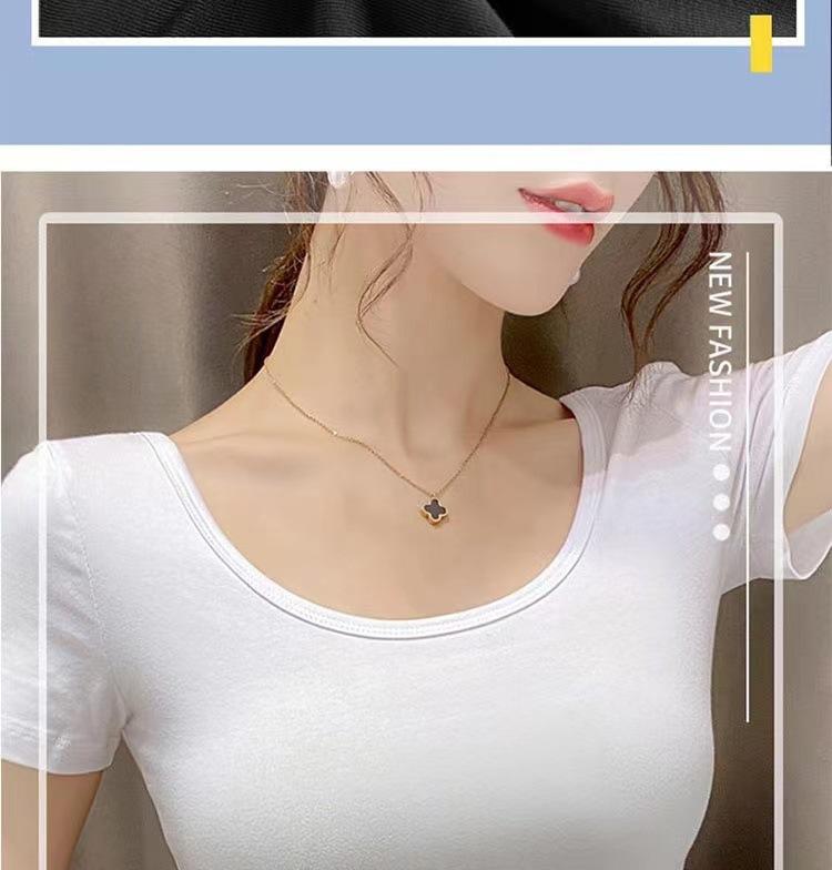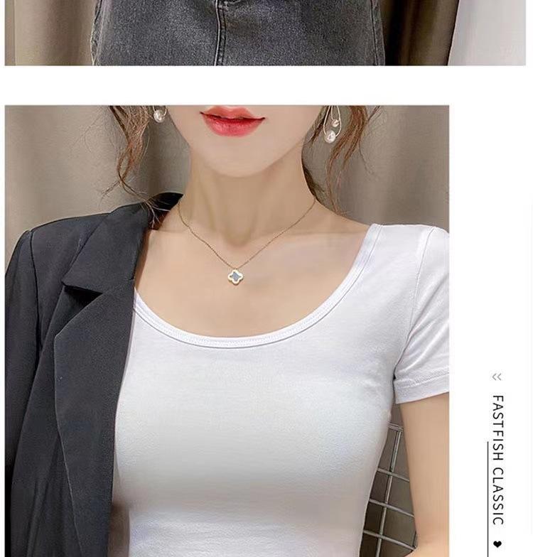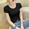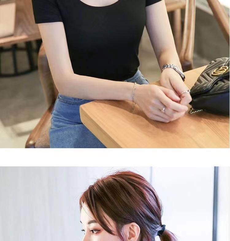 Camiseta de manga corta con cuello redondo modal para mujer, de verano, ajustada, con base de seda helada y hombros descubiertos, con media manga interior, 2023