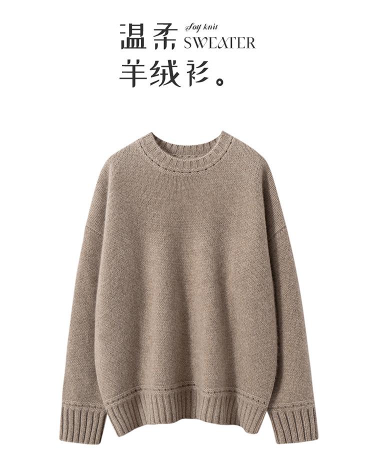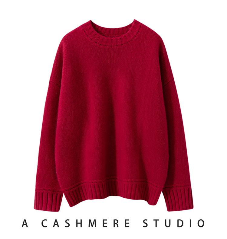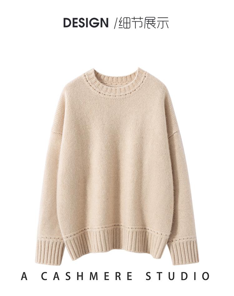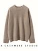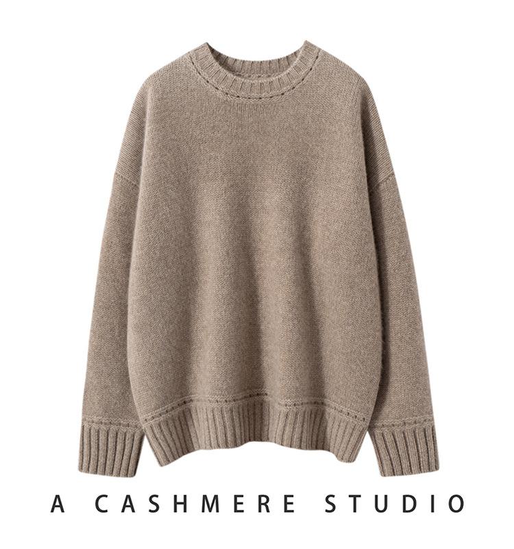 Suéter de punto de cachemira para mujer, otoño e invierno 2024, cuello redondo, manga larga, combinable, holgado, cómodo y agradable para la piel, estilo perezoso.