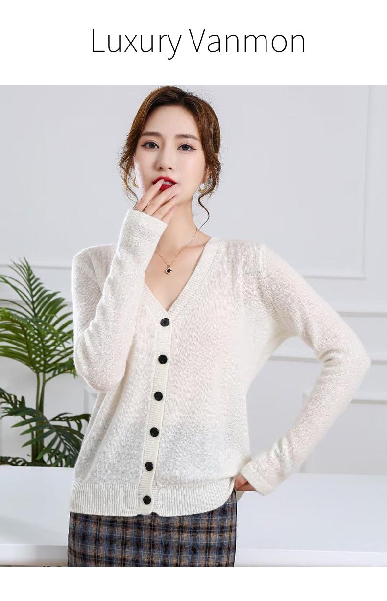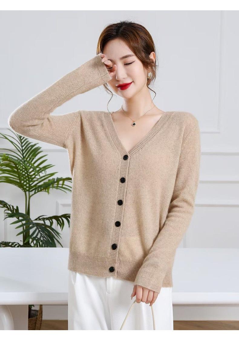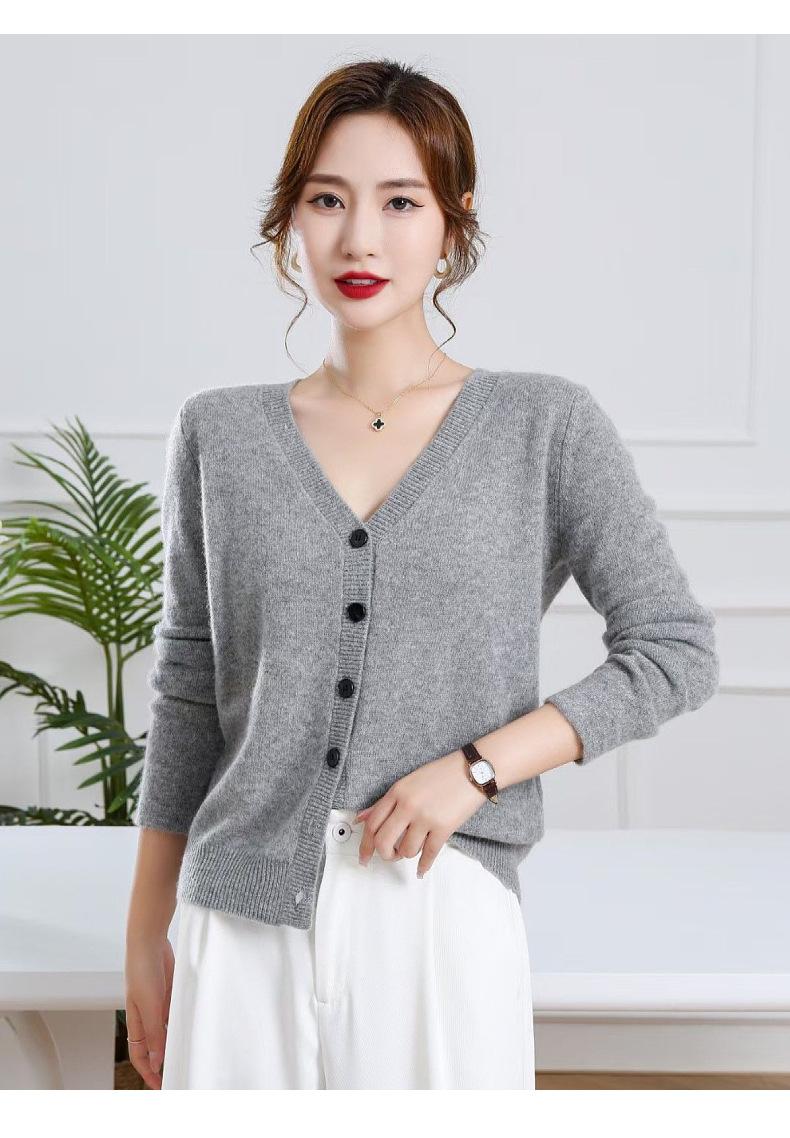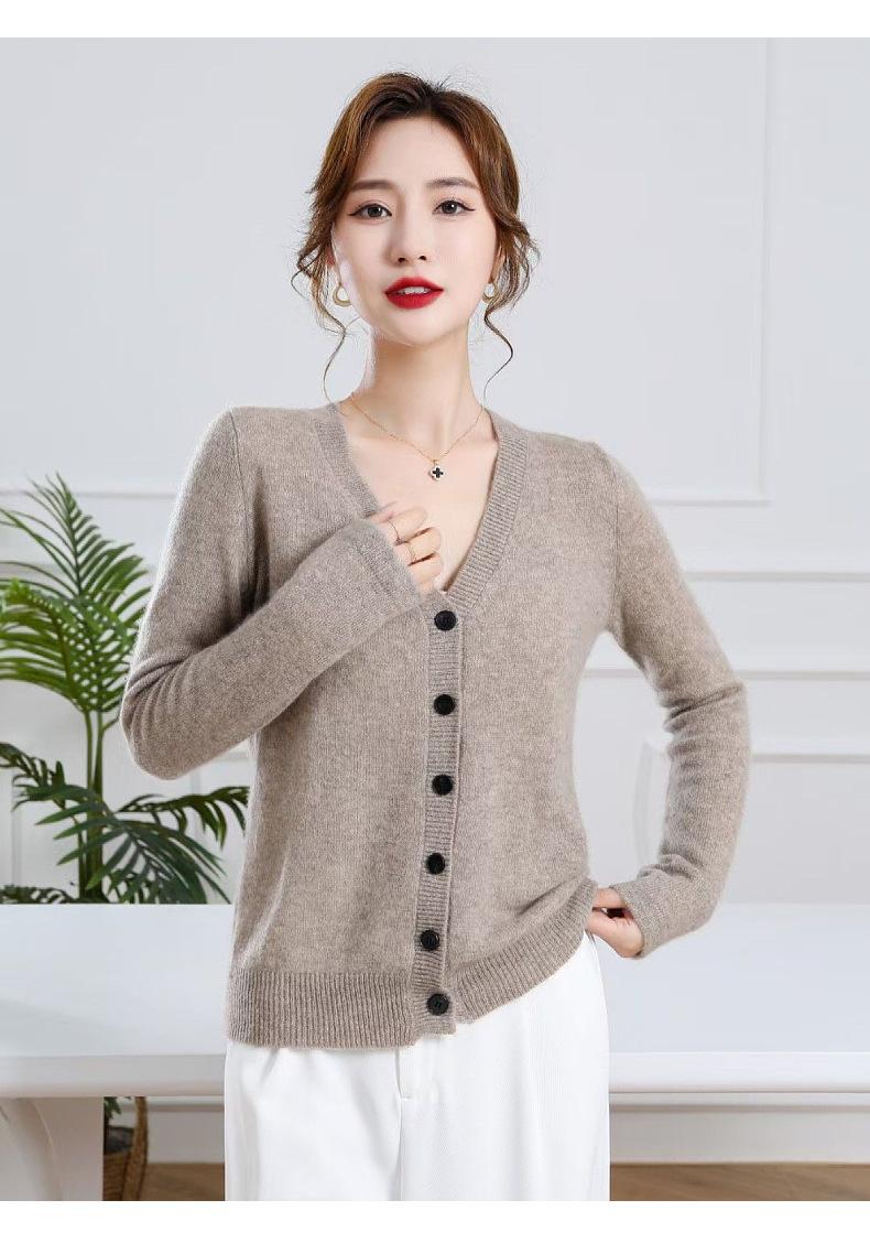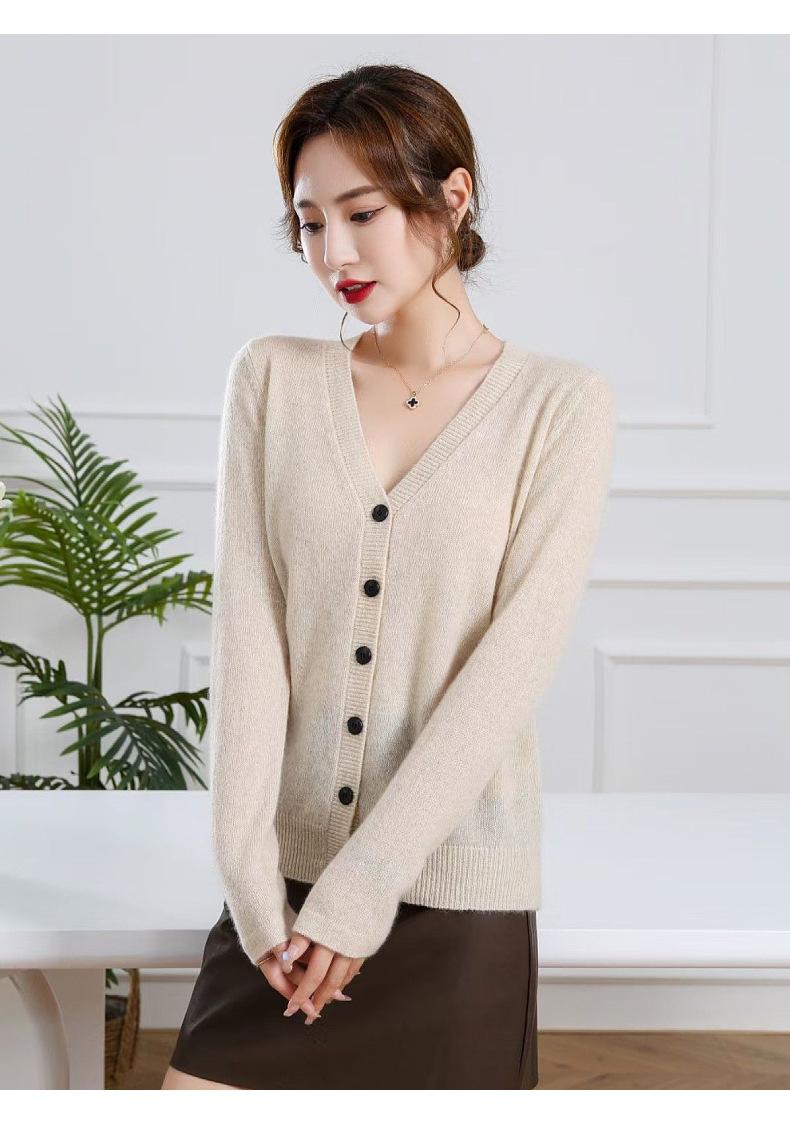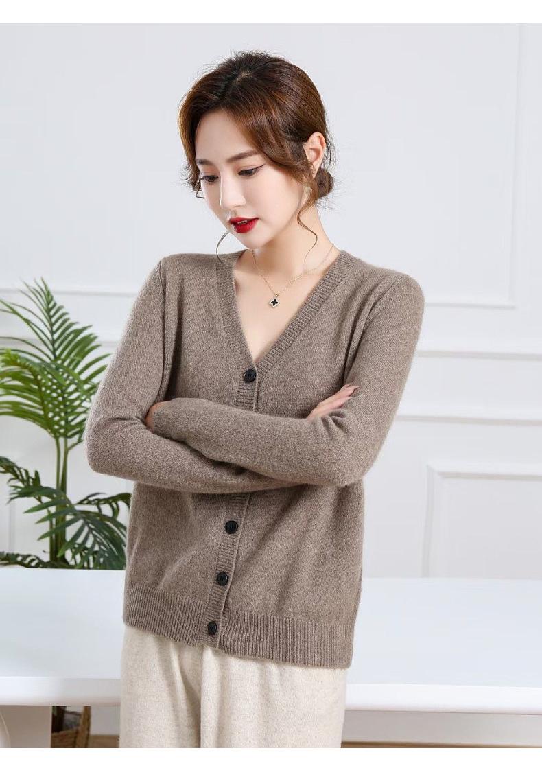 Cárdigan de Cachemira 100% Pura para Mujer 2024 Otoño e Invierno Nuevo Cárdigan de Cachemira Tejido de Manga Larga con Cuello en V