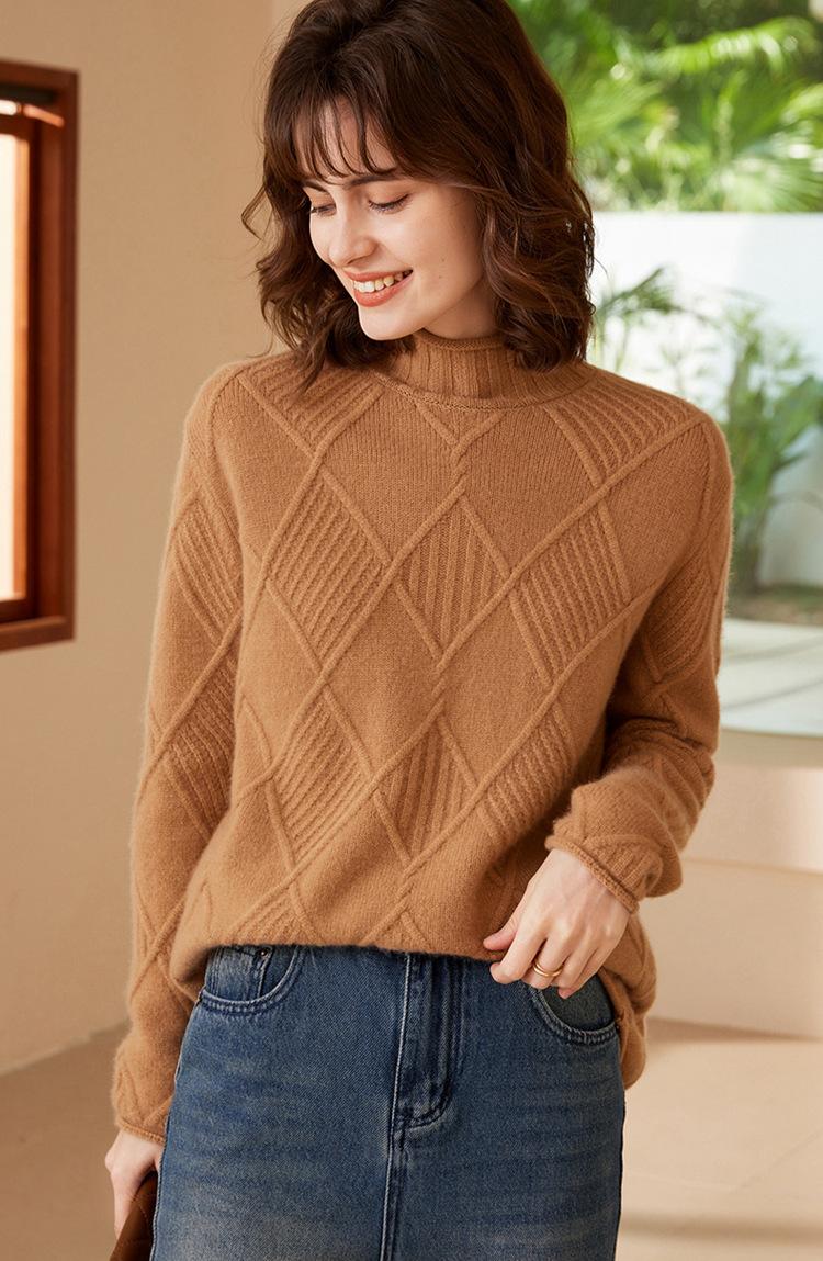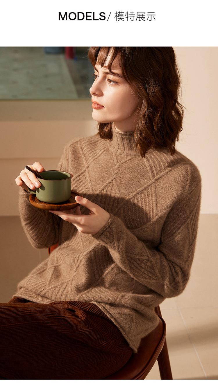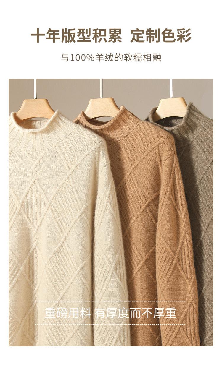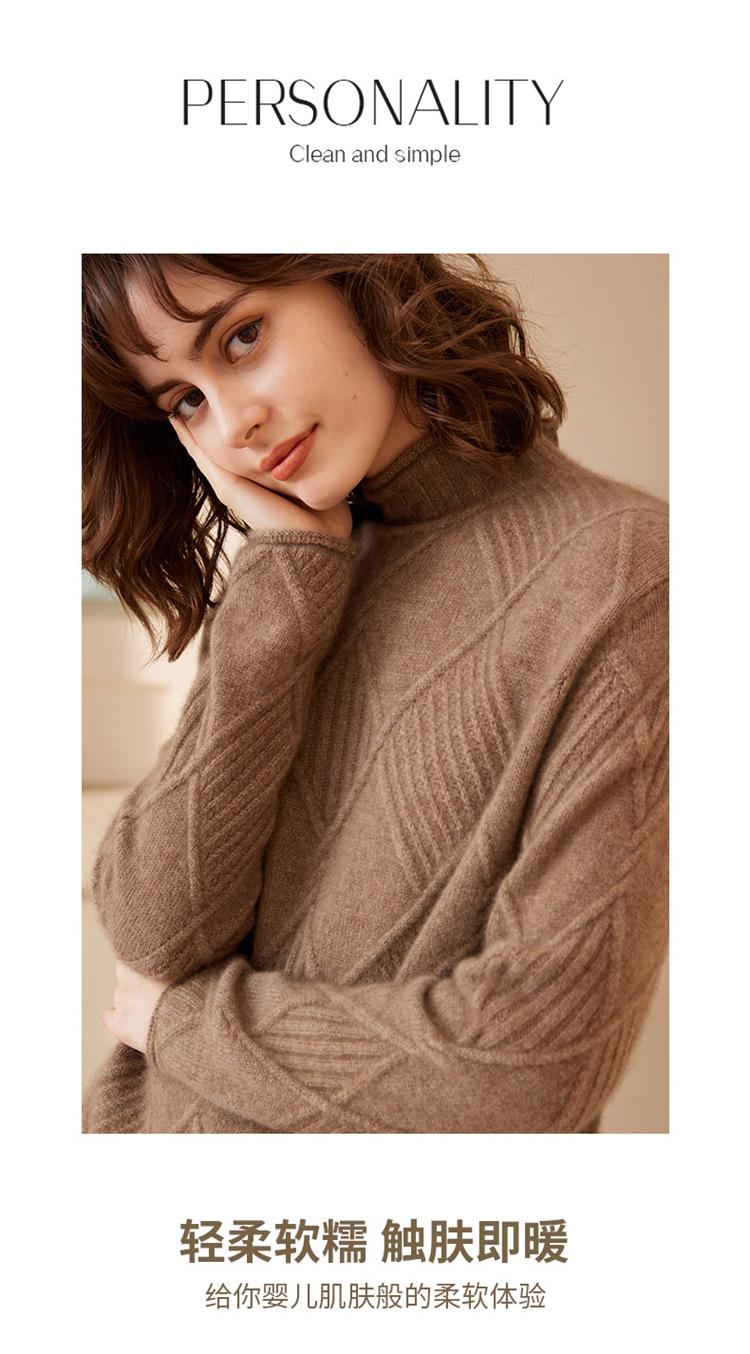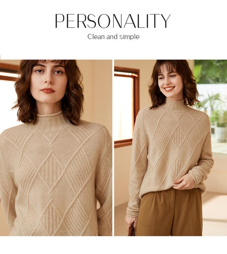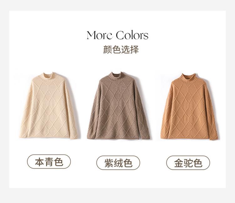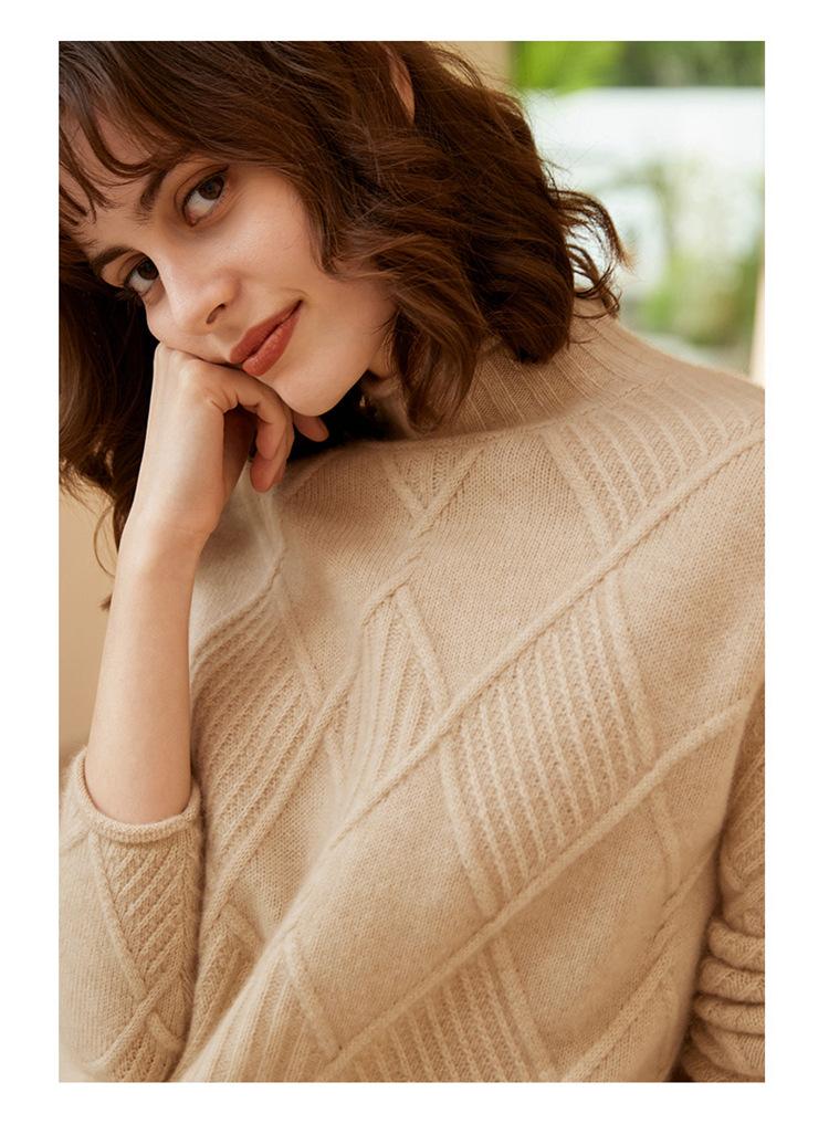 Suéter de Cachemira para Mujer Cuello Medio Alto 100% Cachemira Pura Otoño e Invierno Nuevo Grueso de Manga Larga Tejido para Usar Debajo Venta al por Mayor