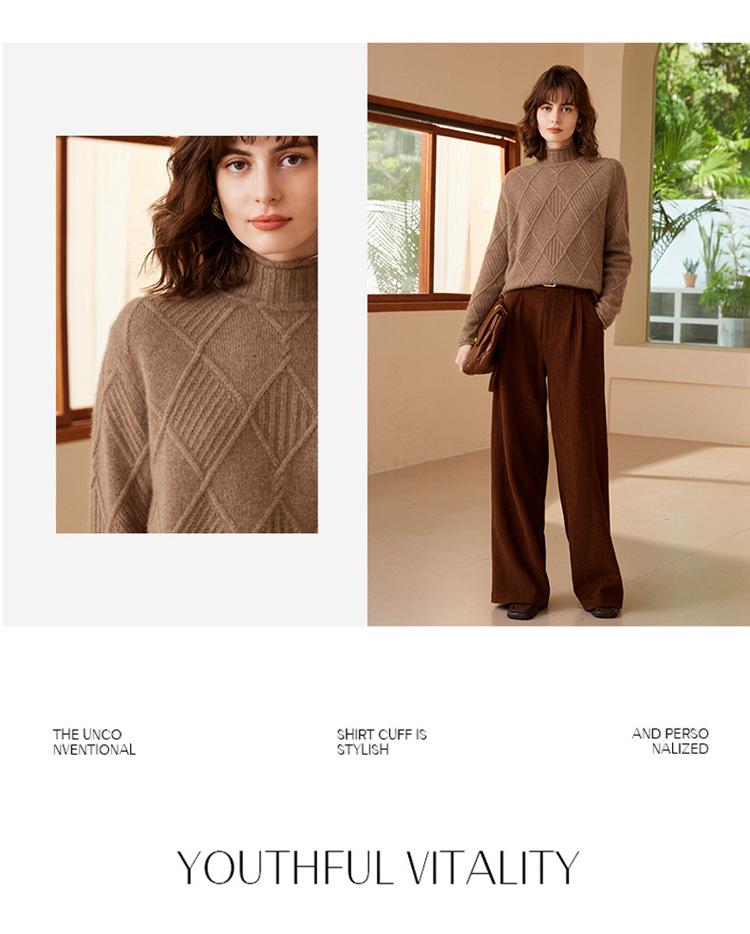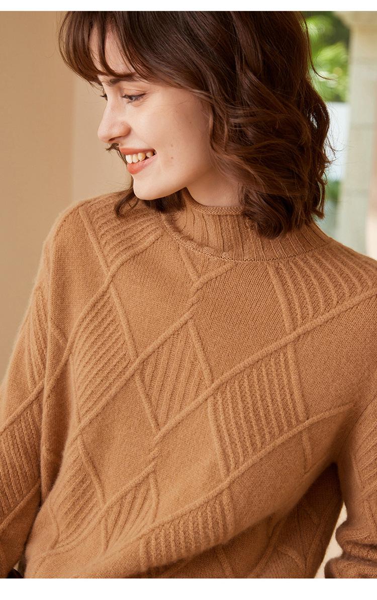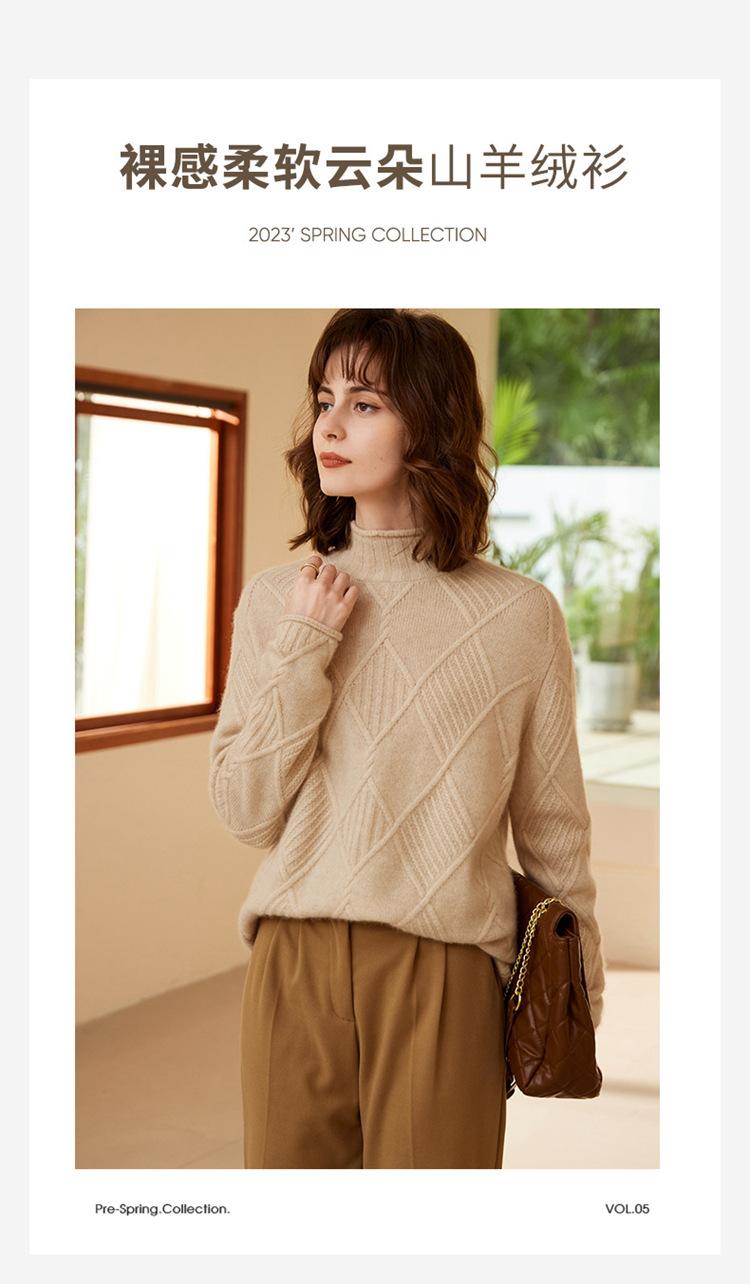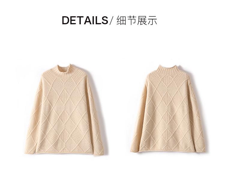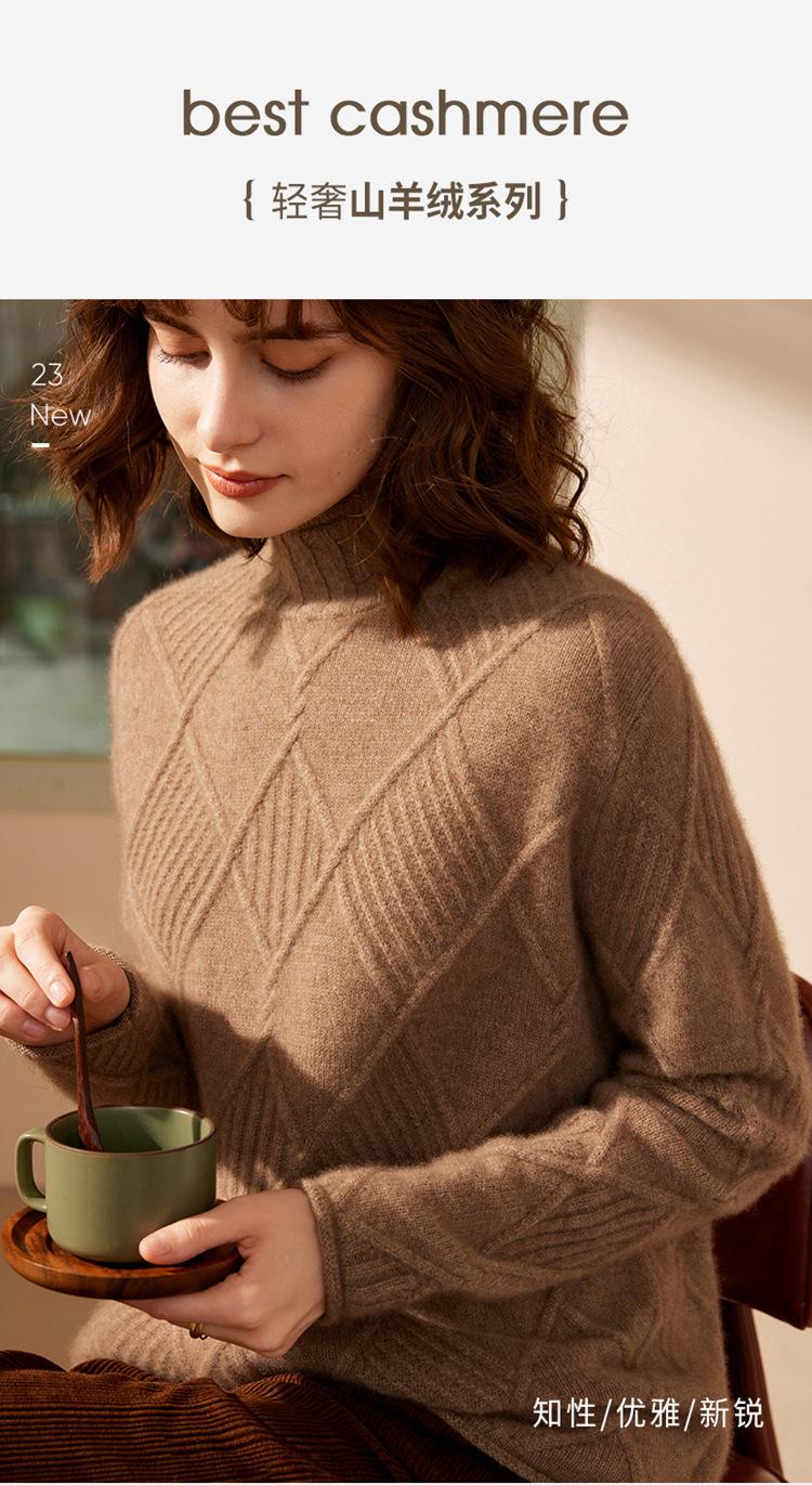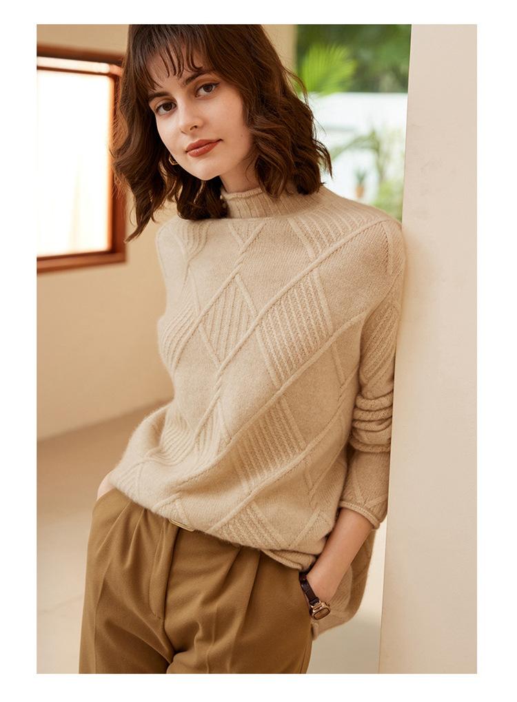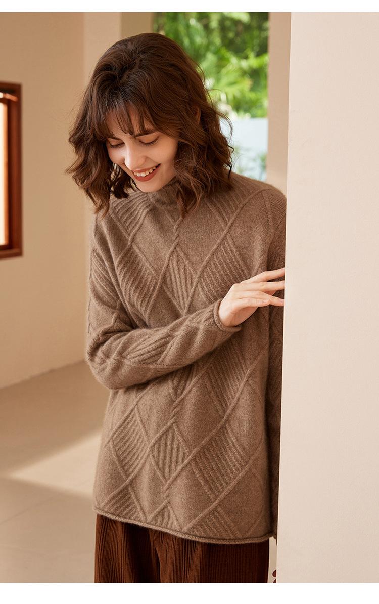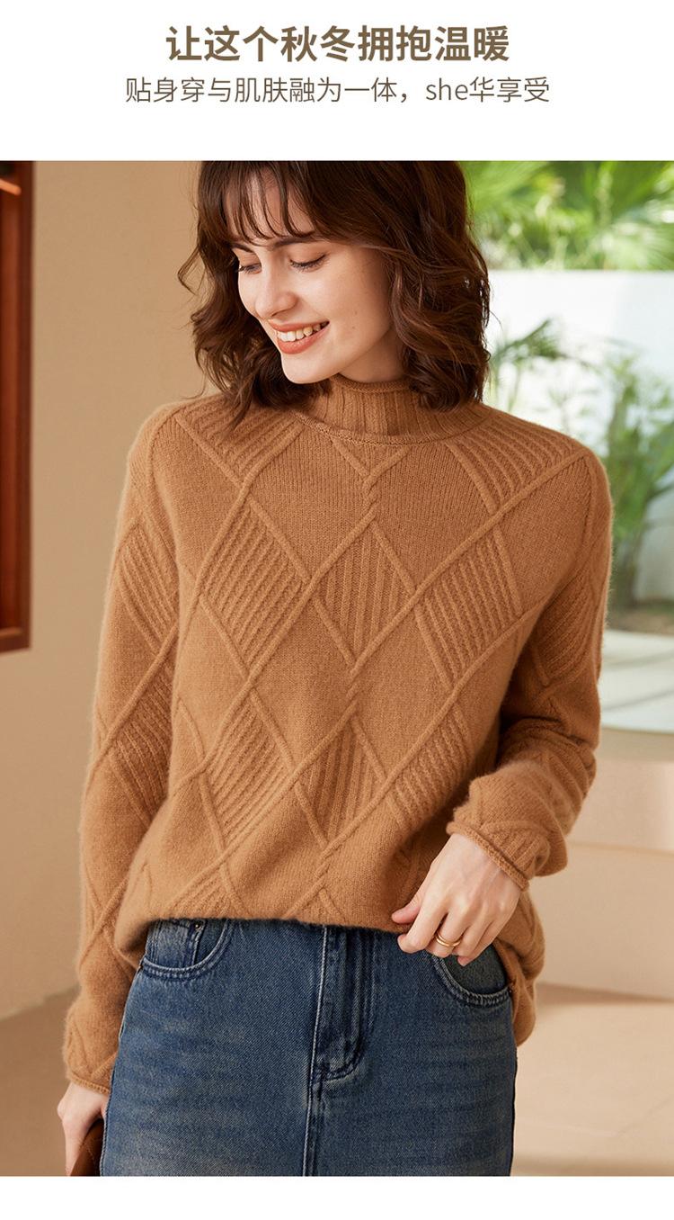 Suéter de Cachemira para Mujer Cuello Medio Alto 100% Cachemira Pura Otoño e Invierno Nuevo Grueso de Manga Larga Tejido para Usar Debajo Venta al por Mayor
