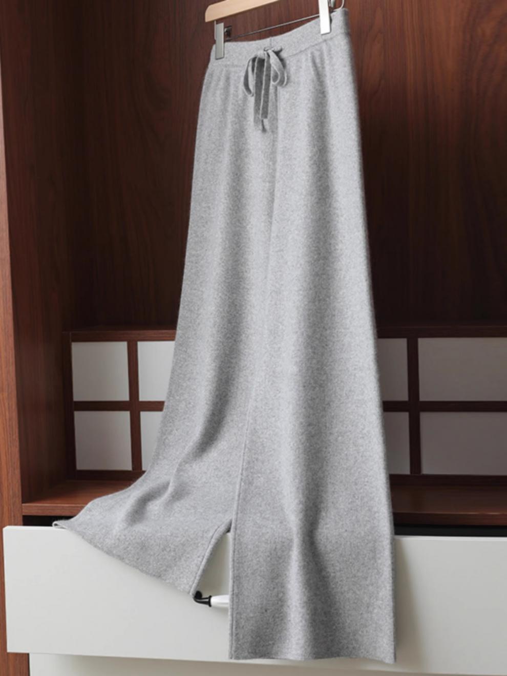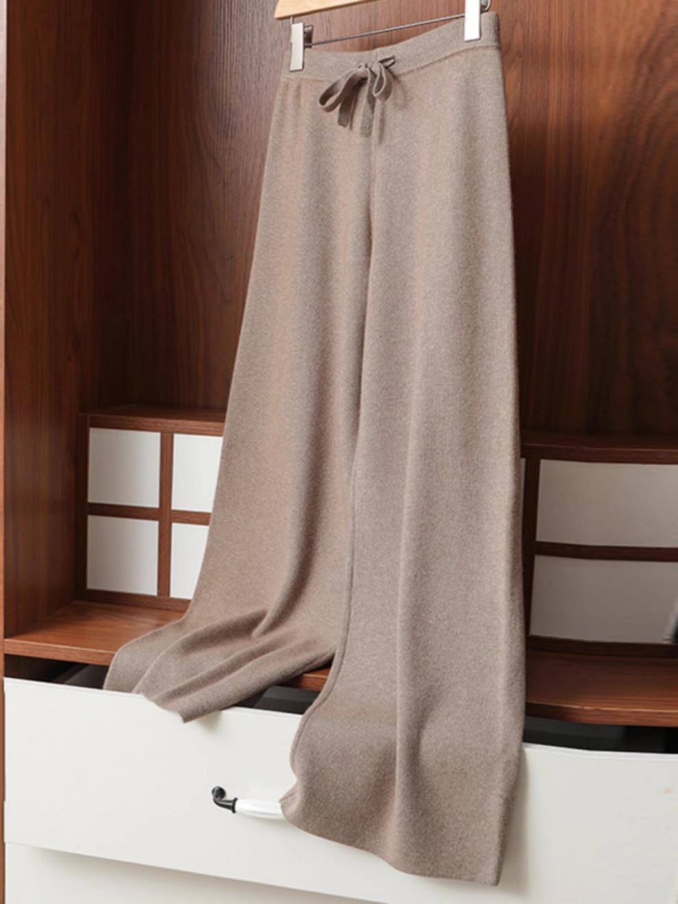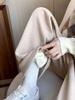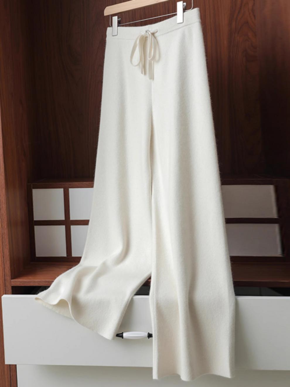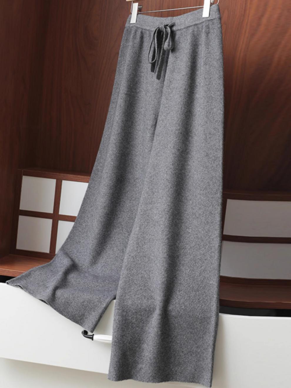 Pantalones de Punto de Lana de Cintura Alta y Pierna Ancha para Mujer 2025 Otoño e Invierno Nuevo Suelto Adelgazante Recto Drapeado Largo hasta el Piso