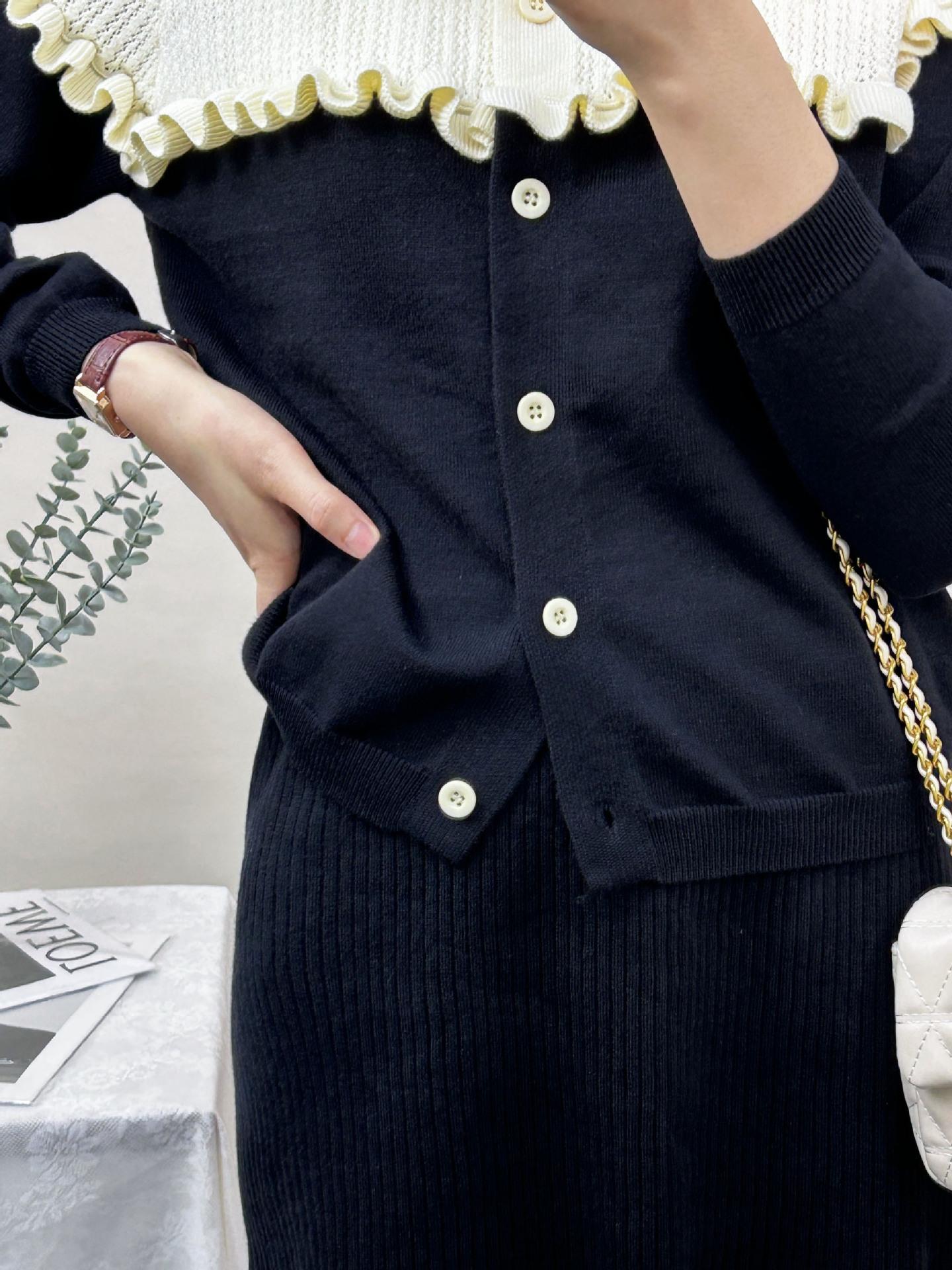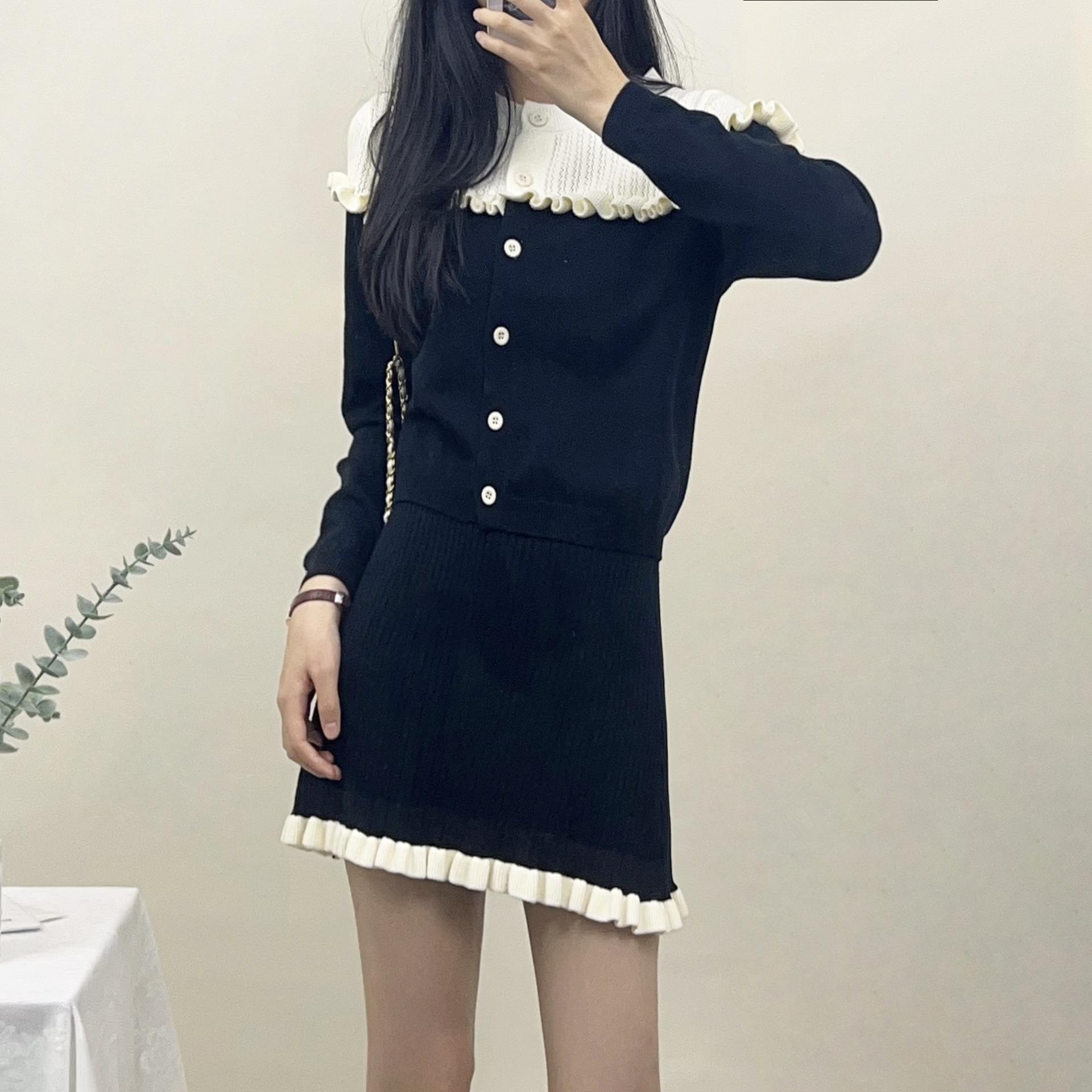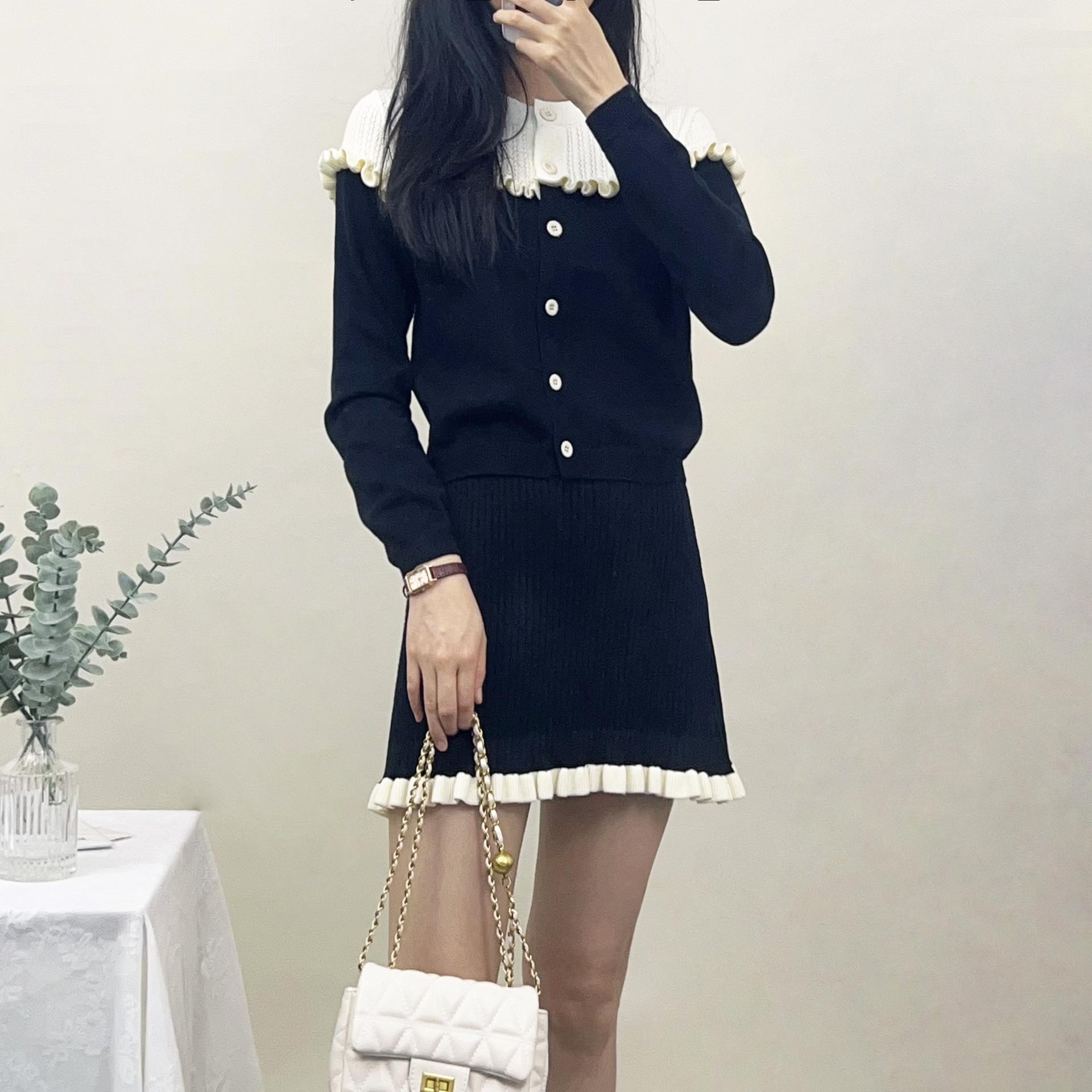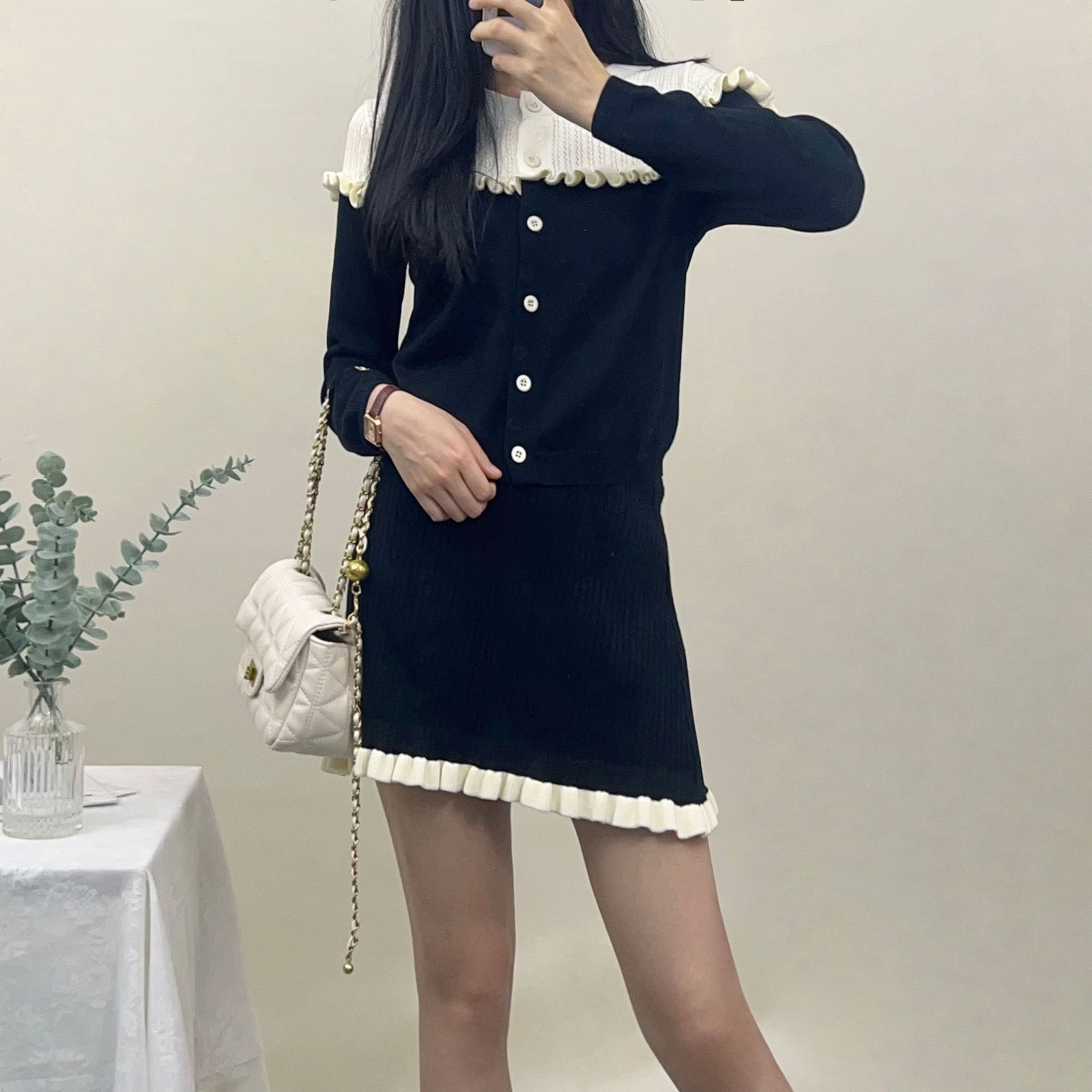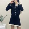 Traje de Otoño 2024 Estilo Pequeño Fragancia Conjunto de Dos Piezas para Mujer Dulce Reductor de Edad Temperamento de Alta Calidad Cárdigan de Punto Falda Traje