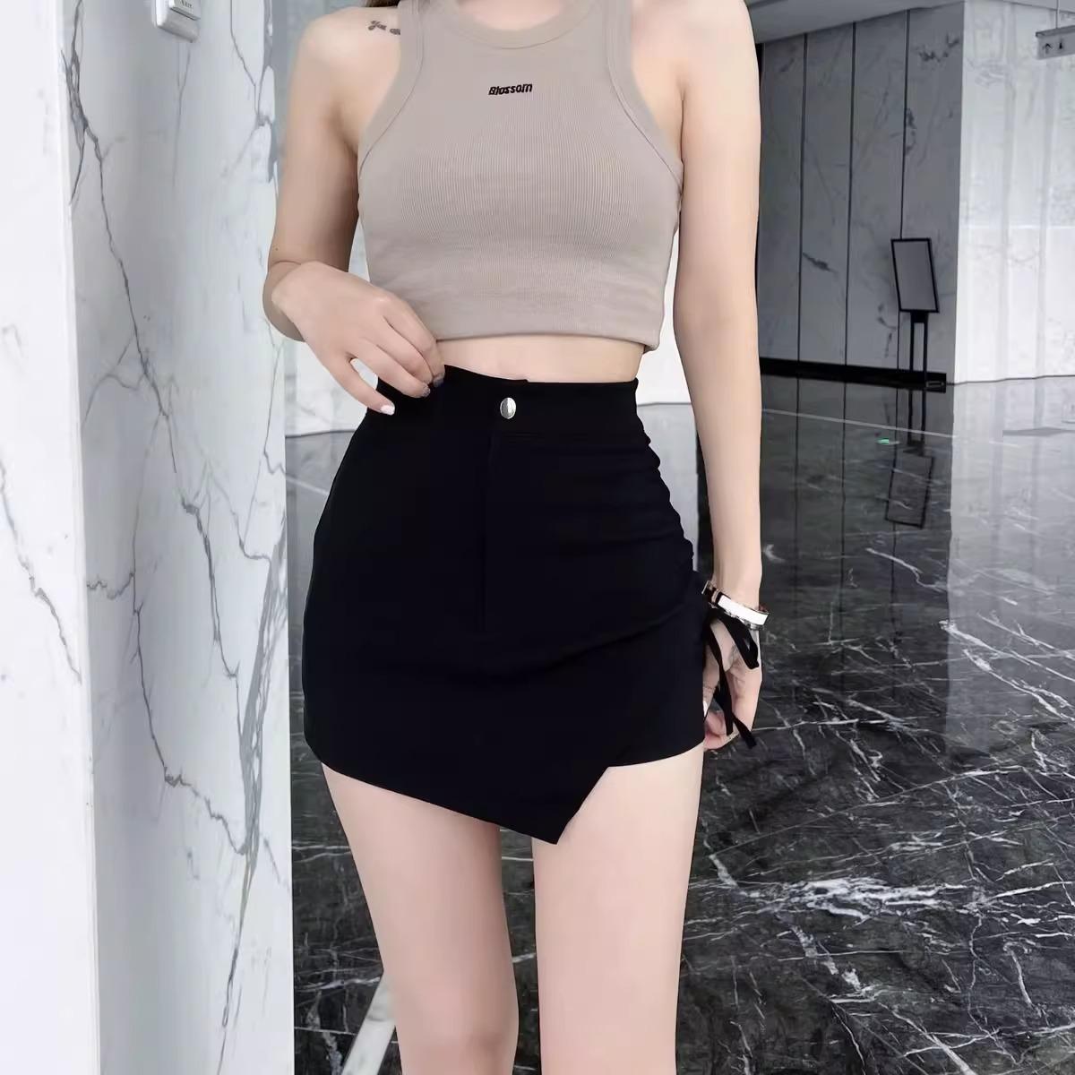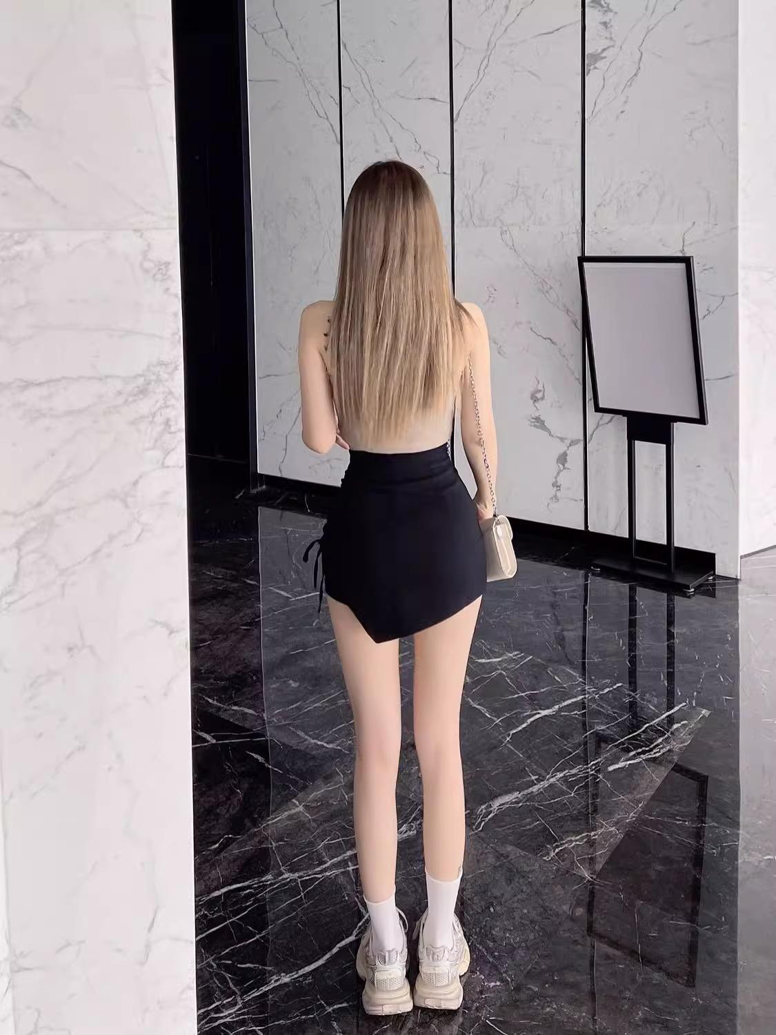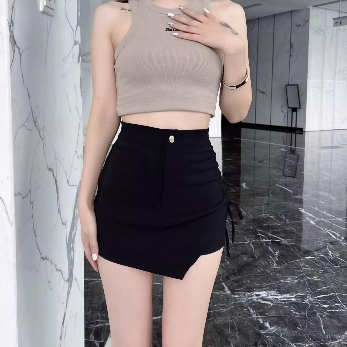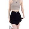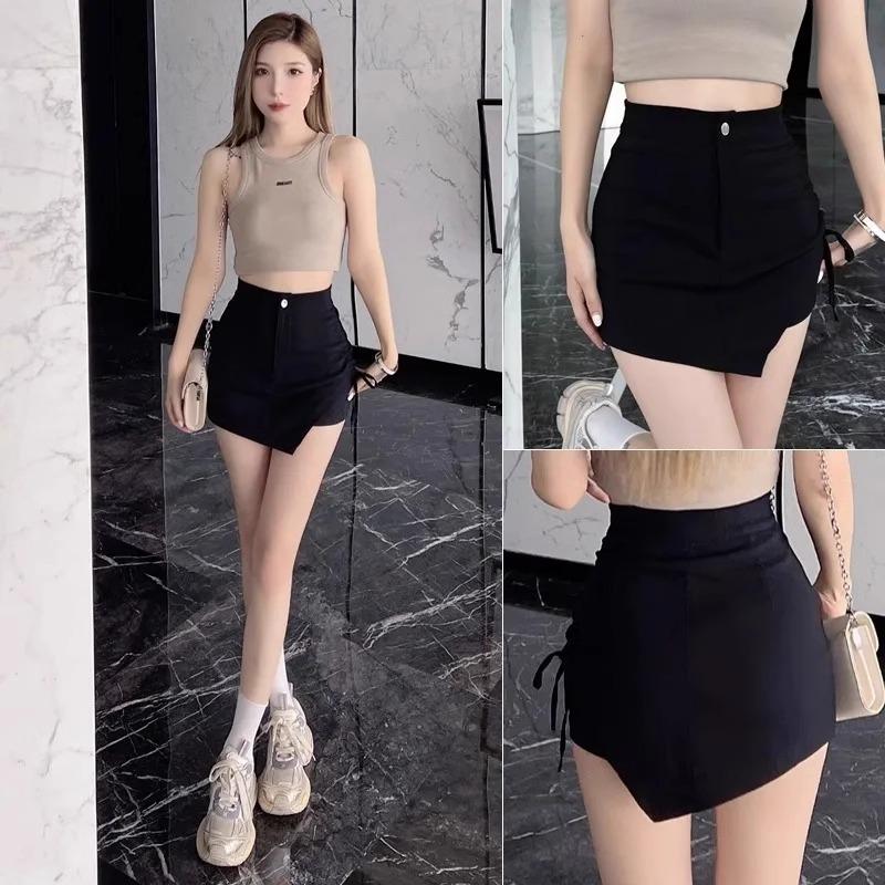 Nueva Falda Negra Asimétrica con Cordón para Mujer Primavera, Otoño y Verano Sexy de Cintura Alta Corte A Falda de Traje Elegante