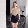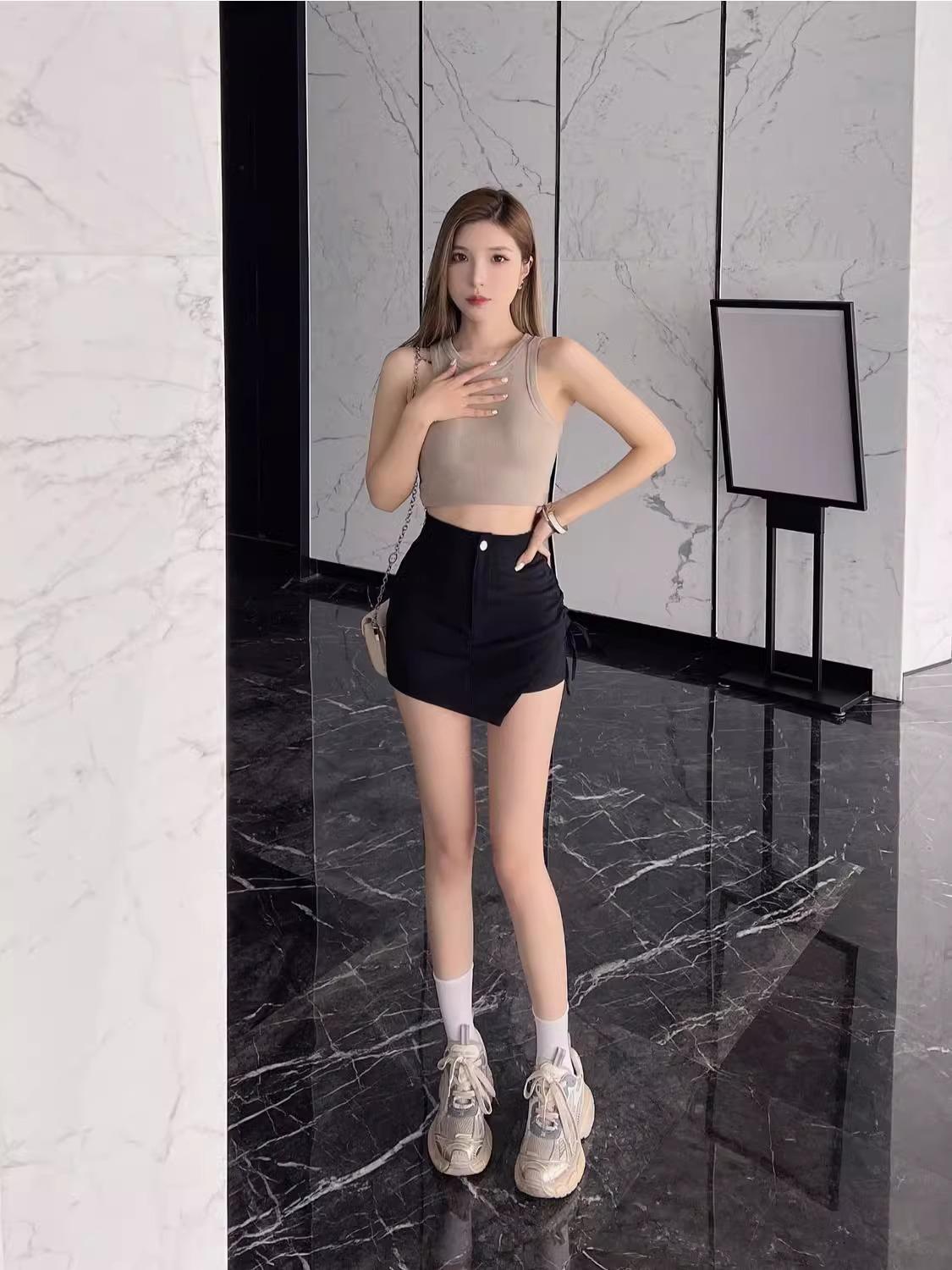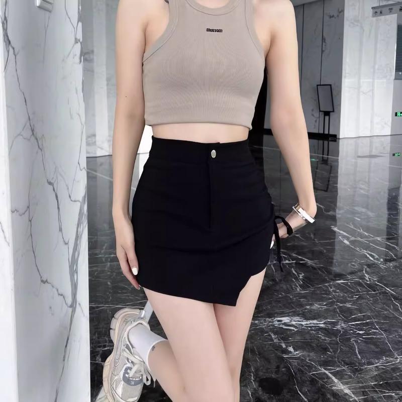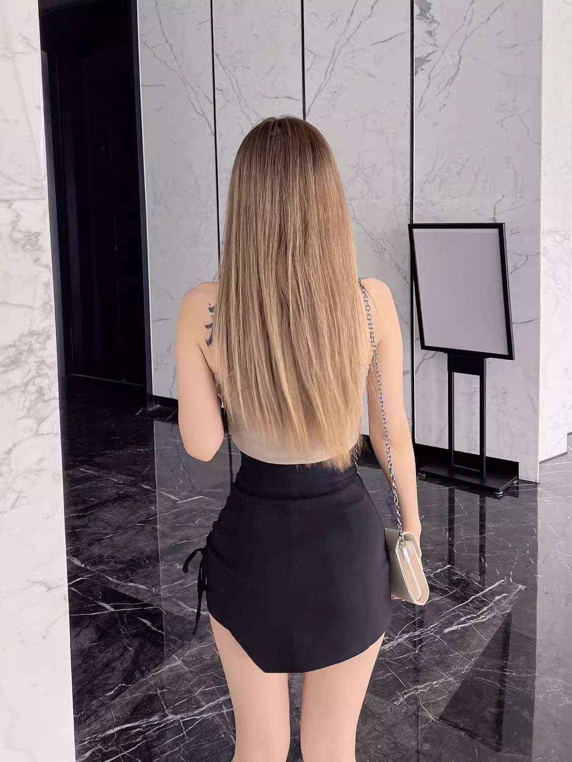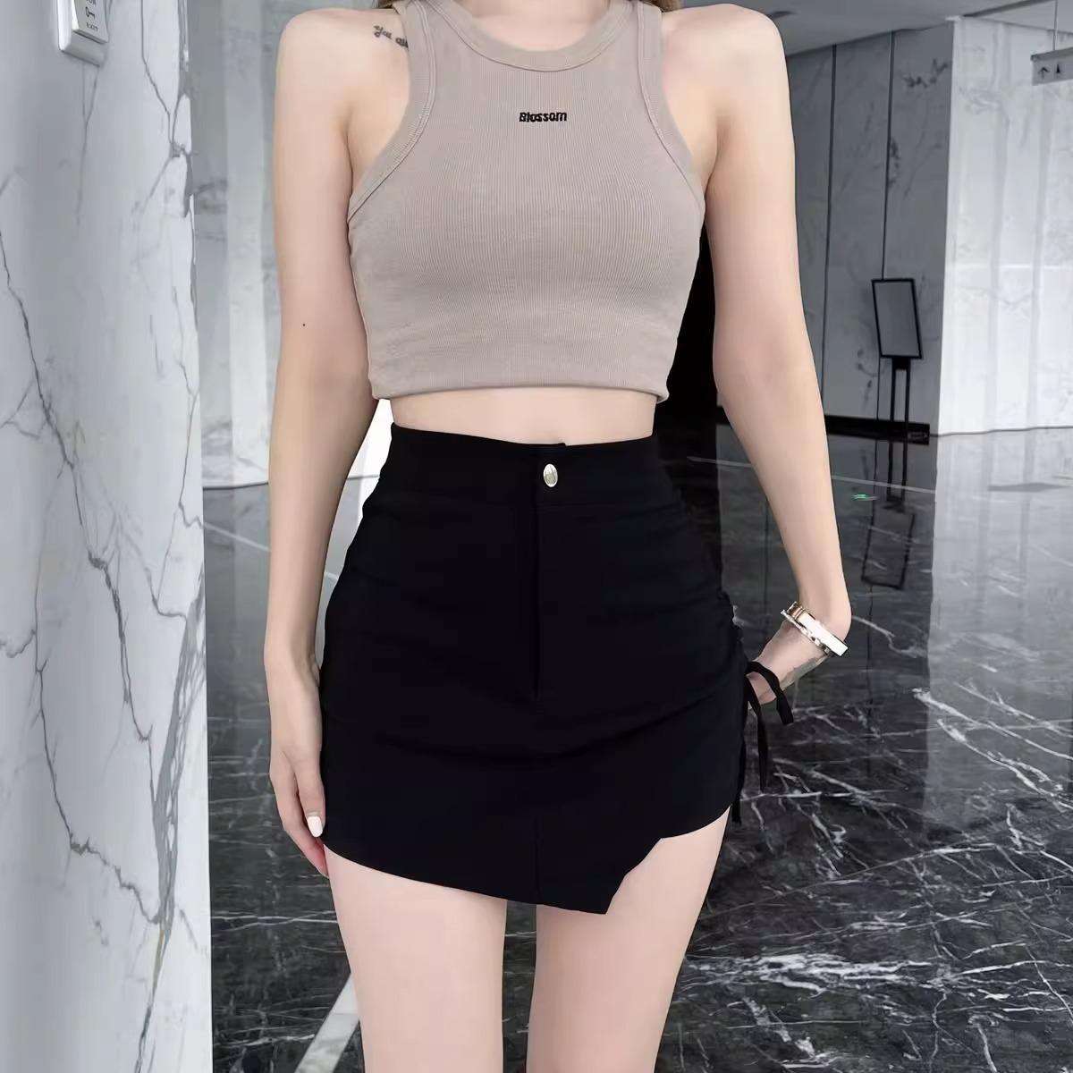 Nueva Falda Negra Asimétrica con Cordón para Mujer Primavera, Otoño y Verano Sexy de Cintura Alta Corte A Falda de Traje Elegante
