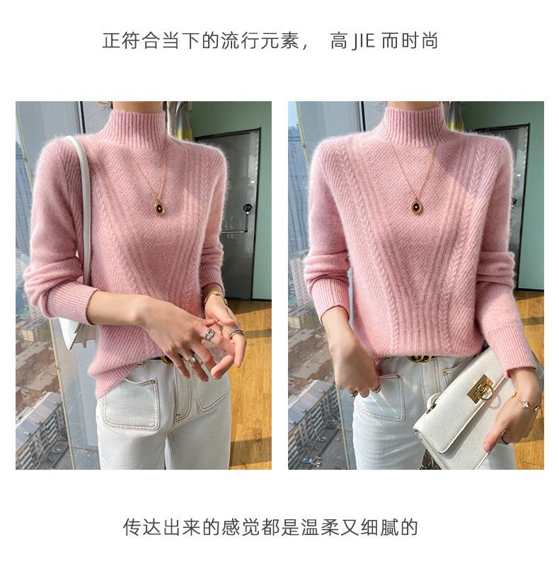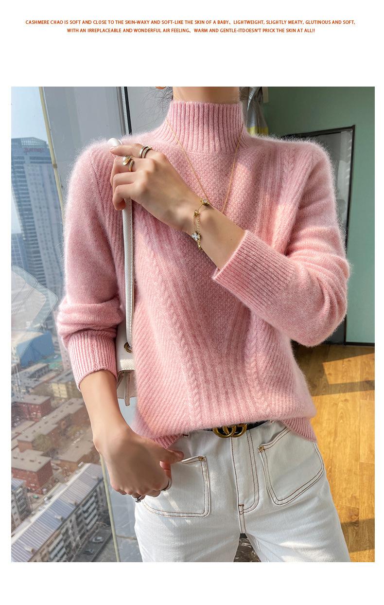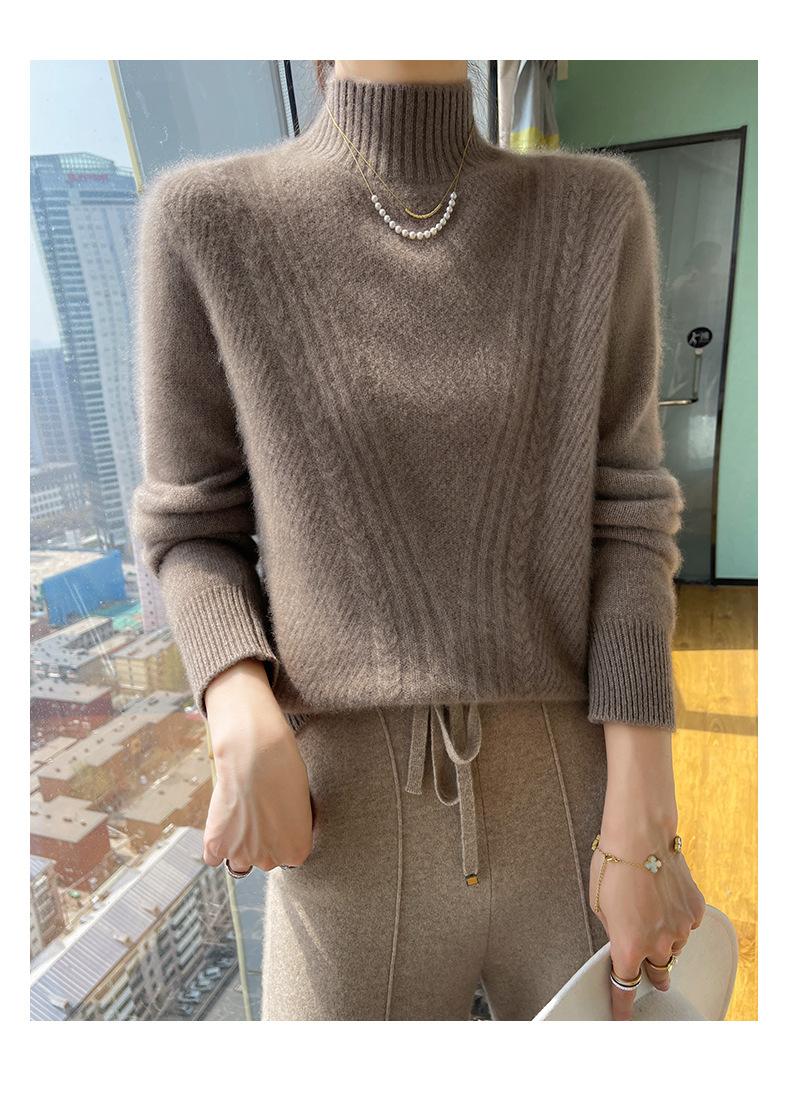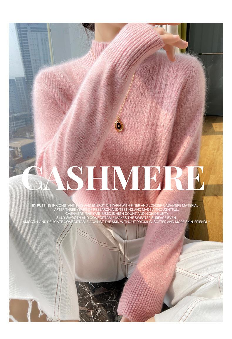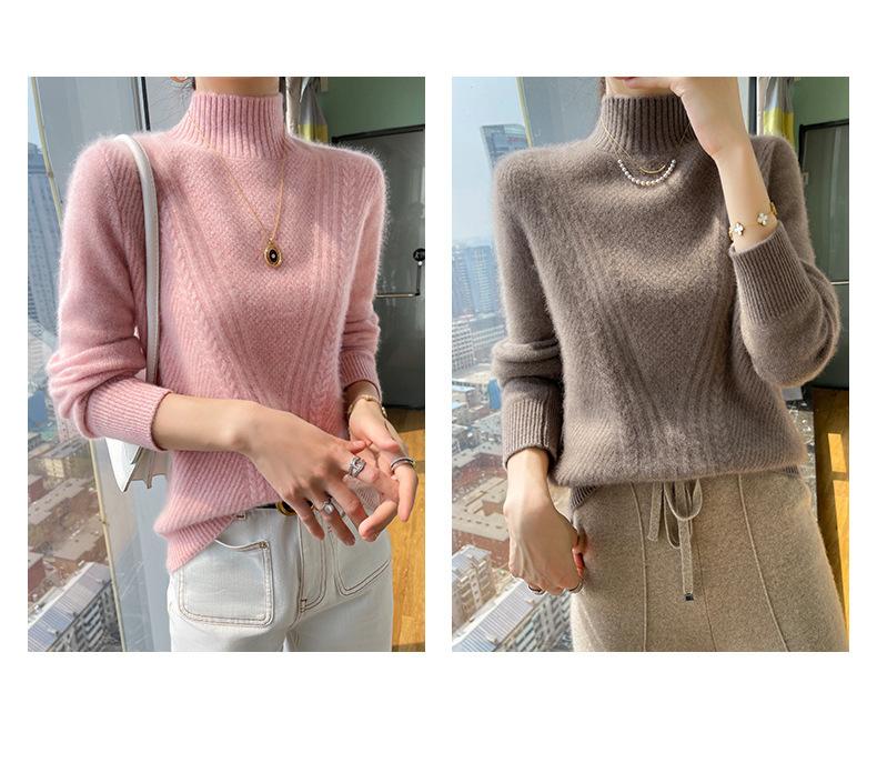 Nuevo Otoño e Invierno 2025 Suéter Holgado Jacquard de Cachemira de Cuello Alto Medio para Mujer Top de Punto Camiseta Básica para Mujer