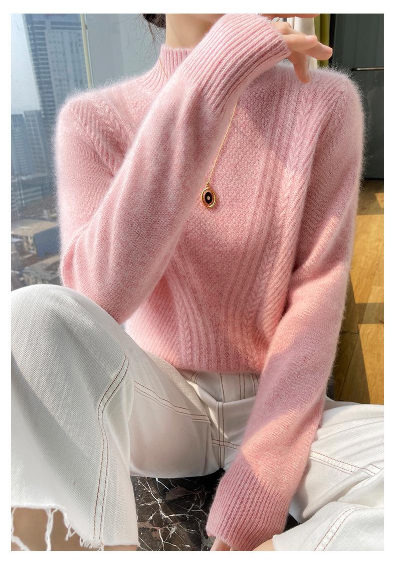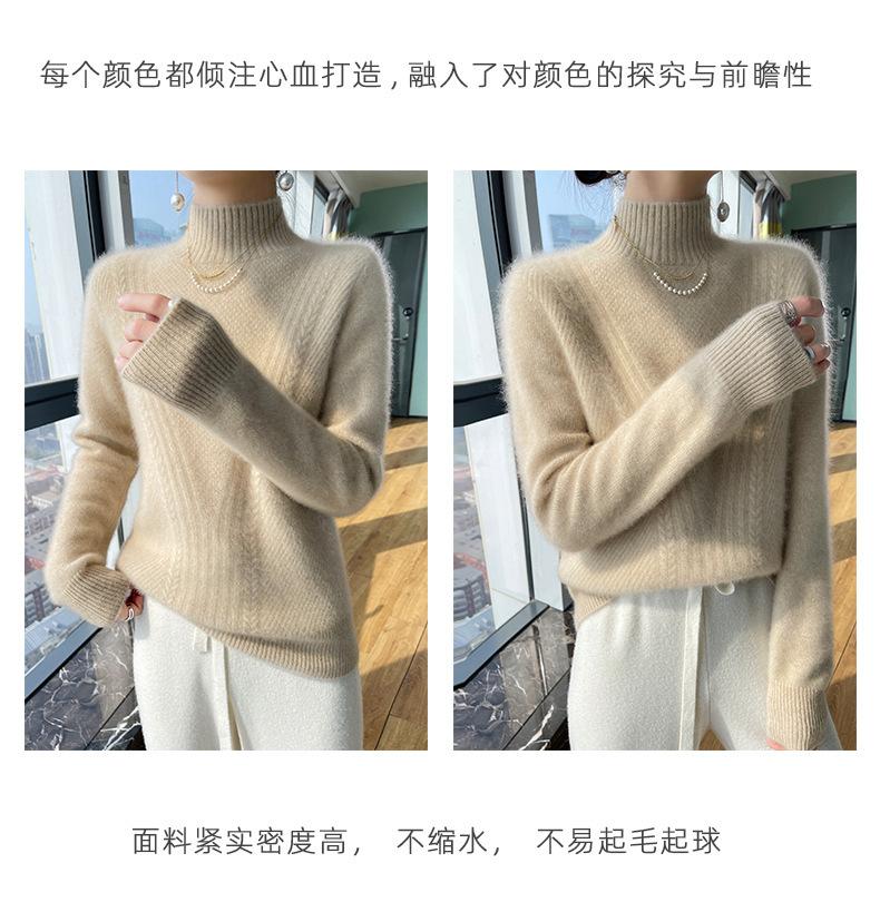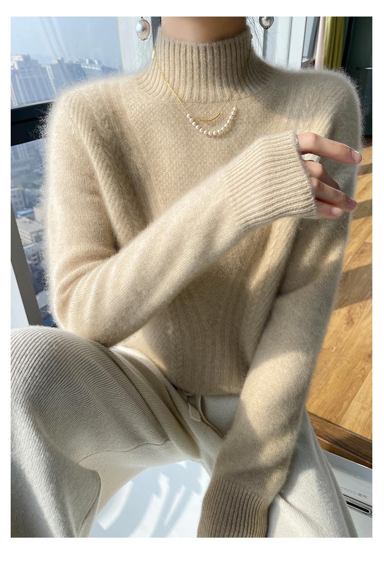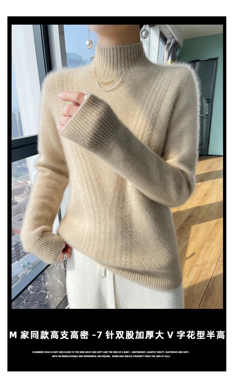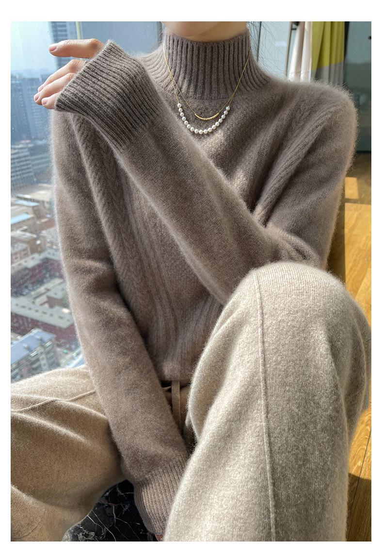 Nuevo Otoño e Invierno 2025 Suéter Holgado Jacquard de Cachemira de Cuello Alto Medio para Mujer Top de Punto Camiseta Básica para Mujer