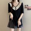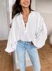 Camisa con cuello en V y costuras para mujer, otoño 2024, nueva camisa holgada europea elegante y pequeña, top elegante para chica gordita de talla grande