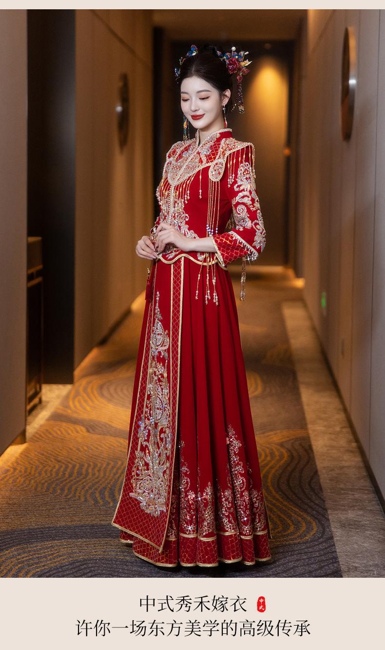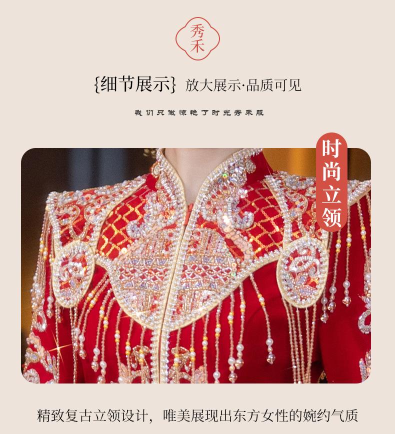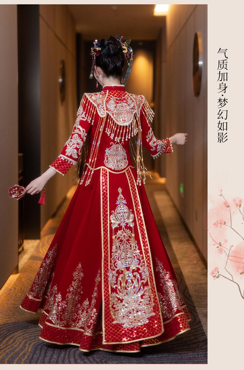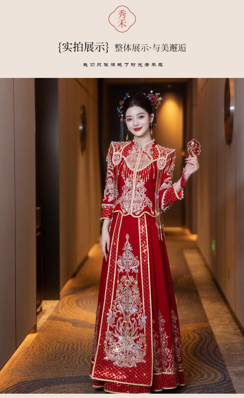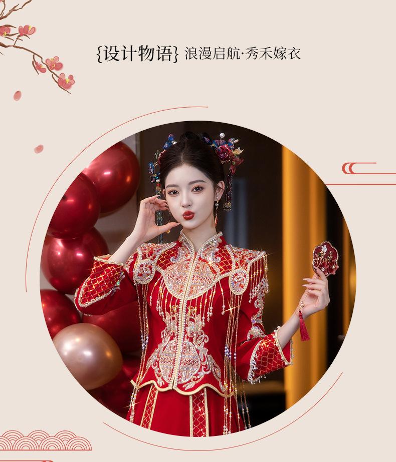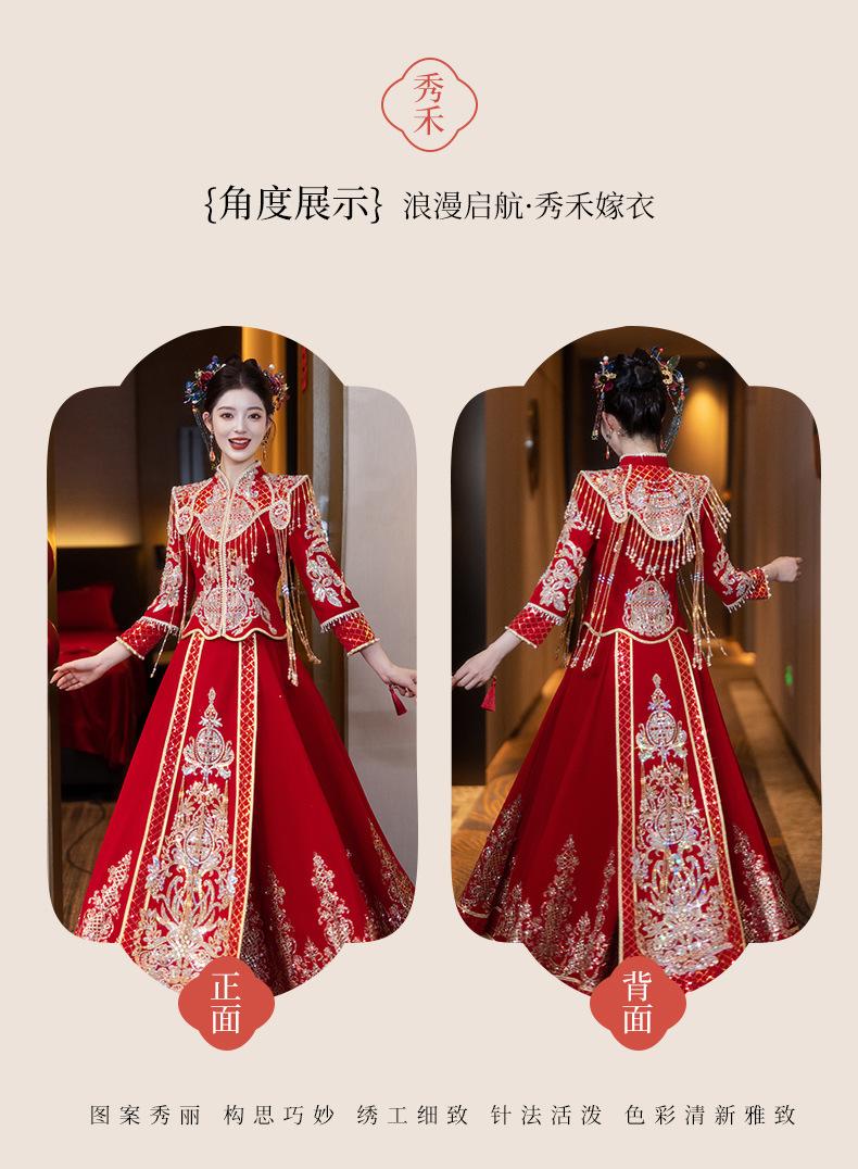 Xiuhe clothing, Xiuhe + crown headdress, Xiuhe + jinfeng headdress, Xiuhe + tassel nine-piece headgear set, Xi...