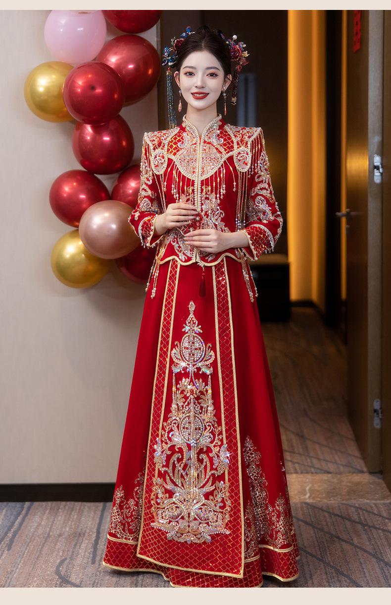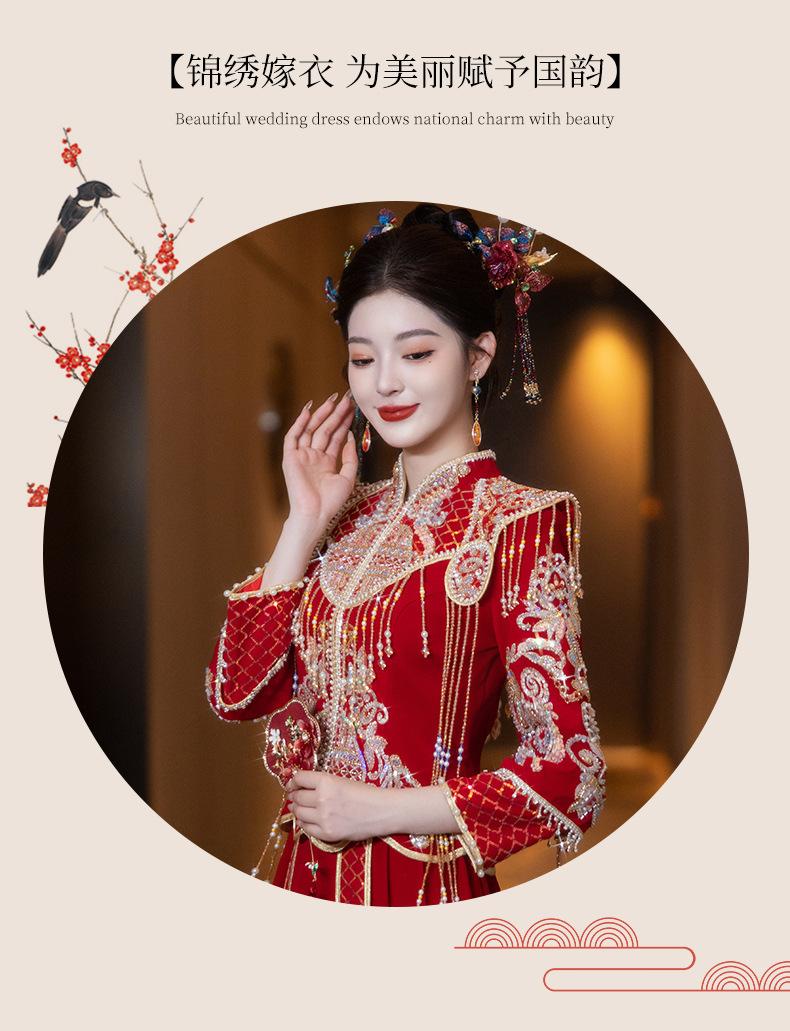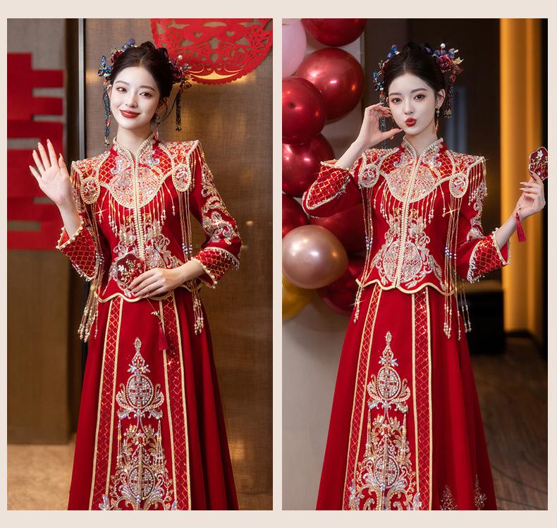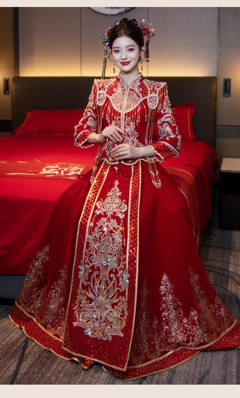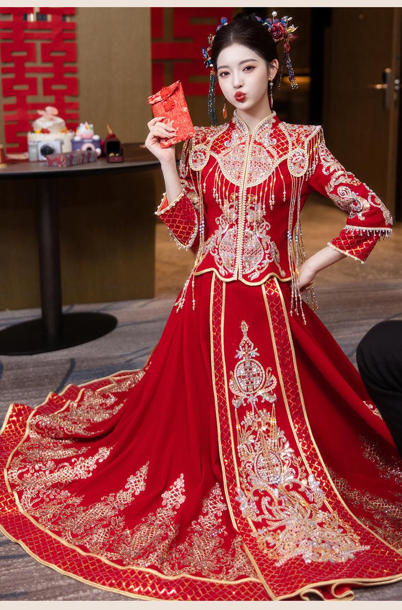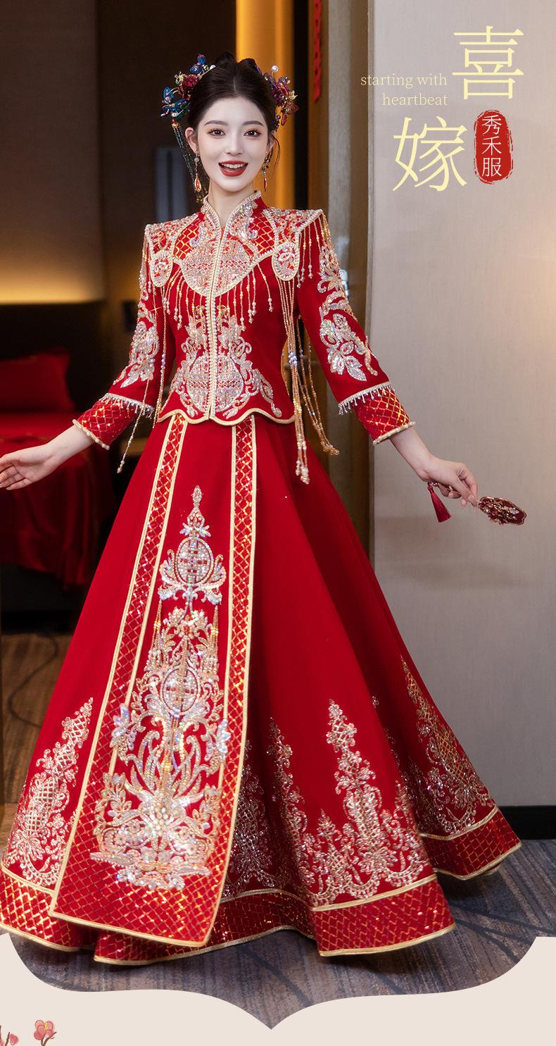 Xiuhe clothing, Xiuhe + crown headdress, Xiuhe + jinfeng headdress, Xiuhe + tassel nine-piece headgear set, Xi...