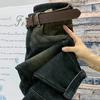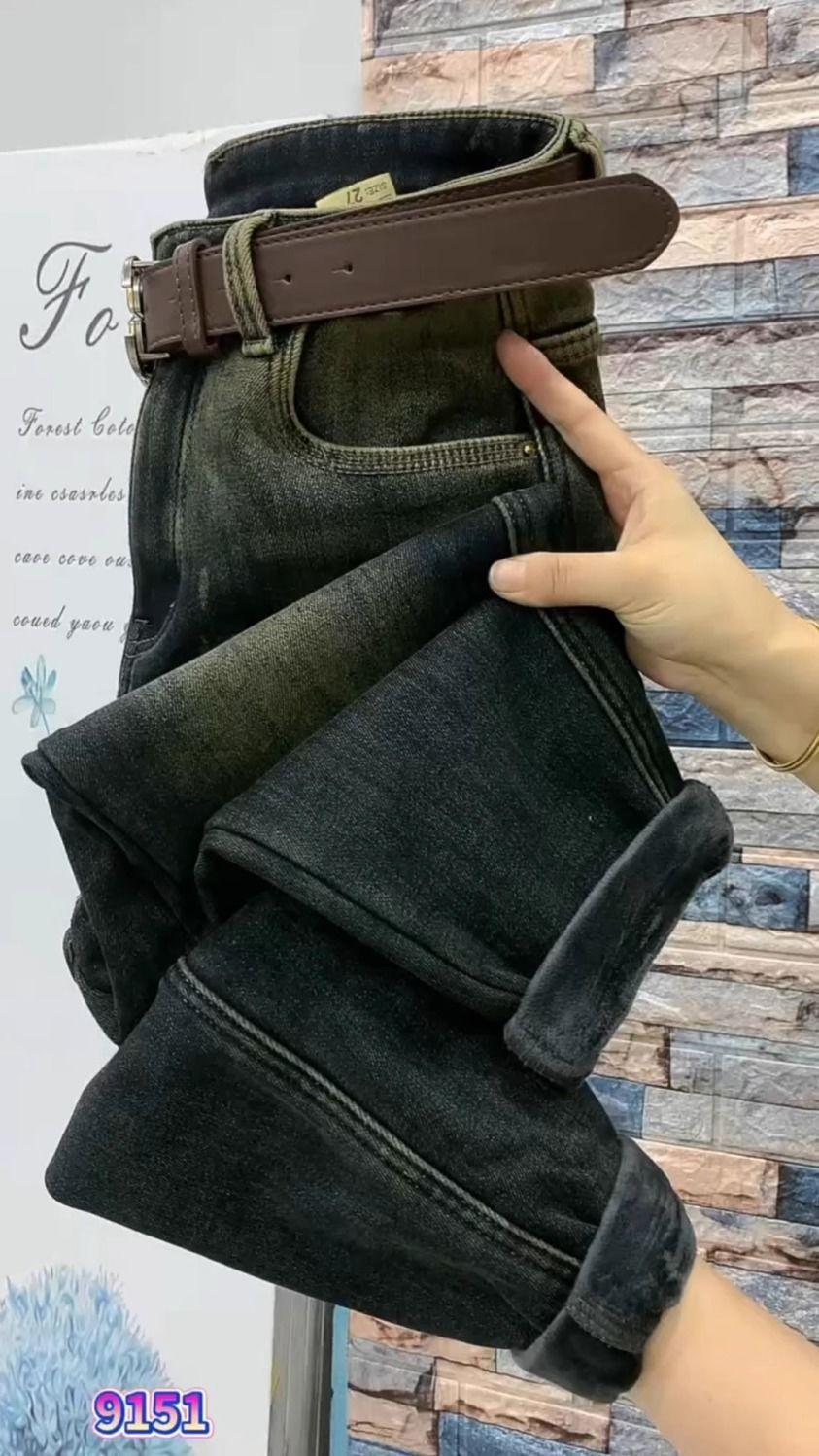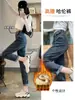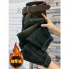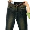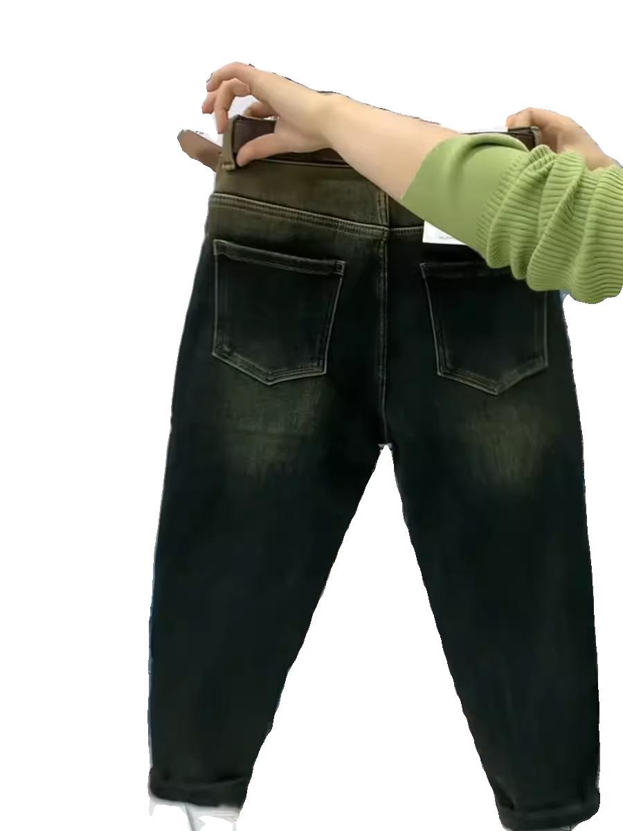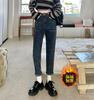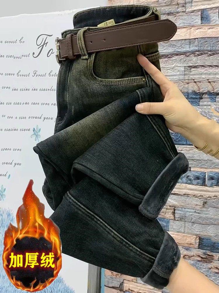 Pantalones vaqueros gruesos con forro polar retro de nicho para mujer, pantalones harén recortados adelgazantes de cintura alta, nuevos de invierno 2020