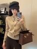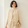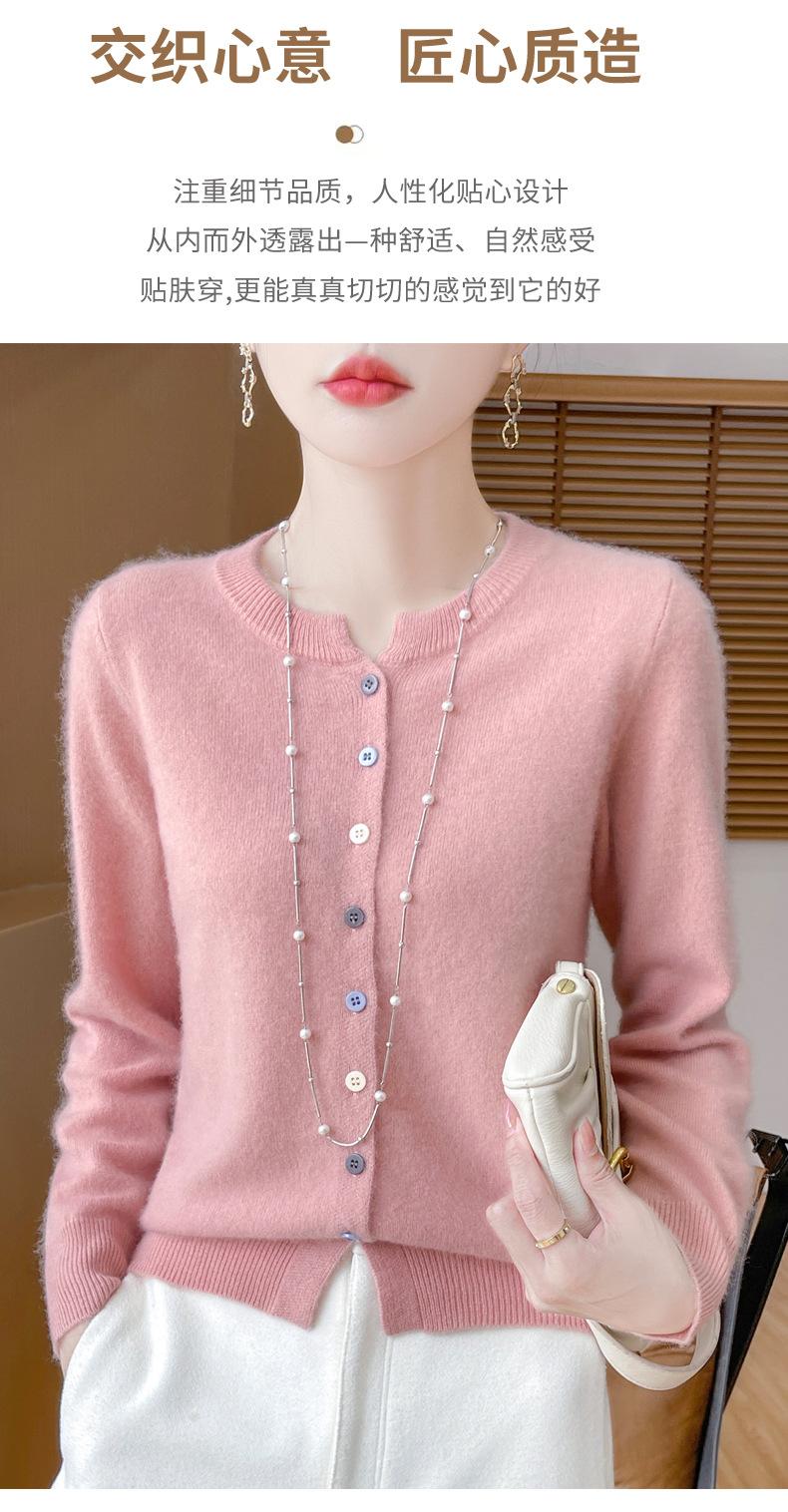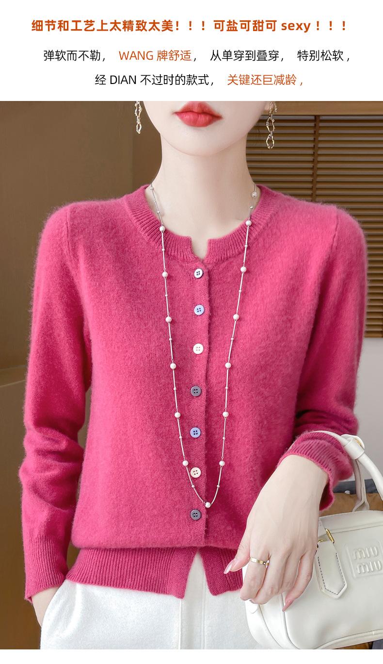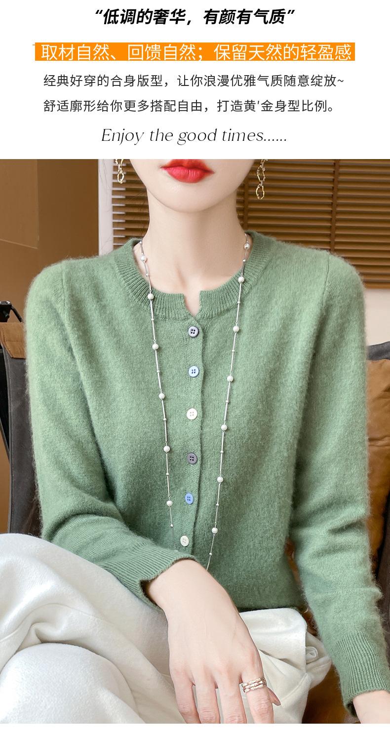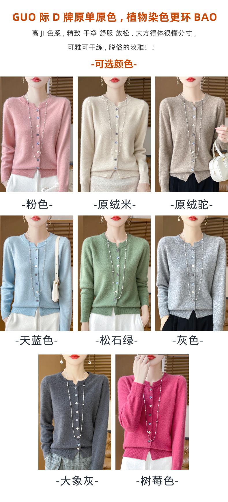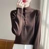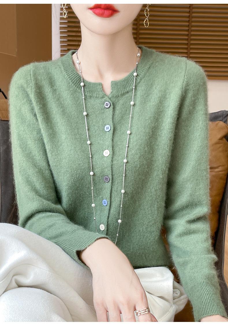 Cárdigan de punto de lana pura sencillo de otoño e invierno para mujer, novedad de 2024, camisa básica de manga larga con cuello redondo y abrigo con hebilla para uso diario.