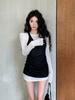 Camiseta de manga larga con hombros descubiertos estilo americano y estilo Hong Kong para mujer, primavera y verano, ajustada, adelgazante, combinable, nueva, de longitud media, sencilla
