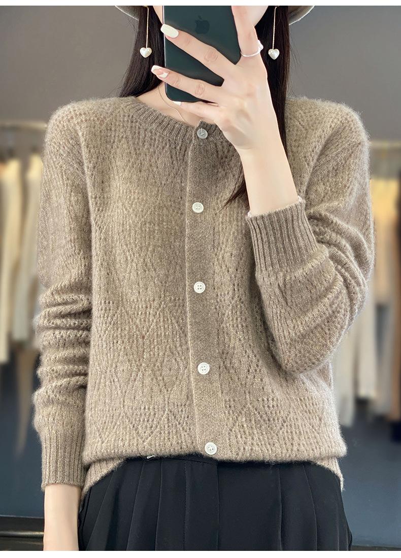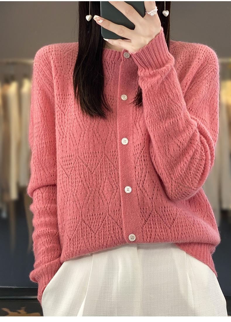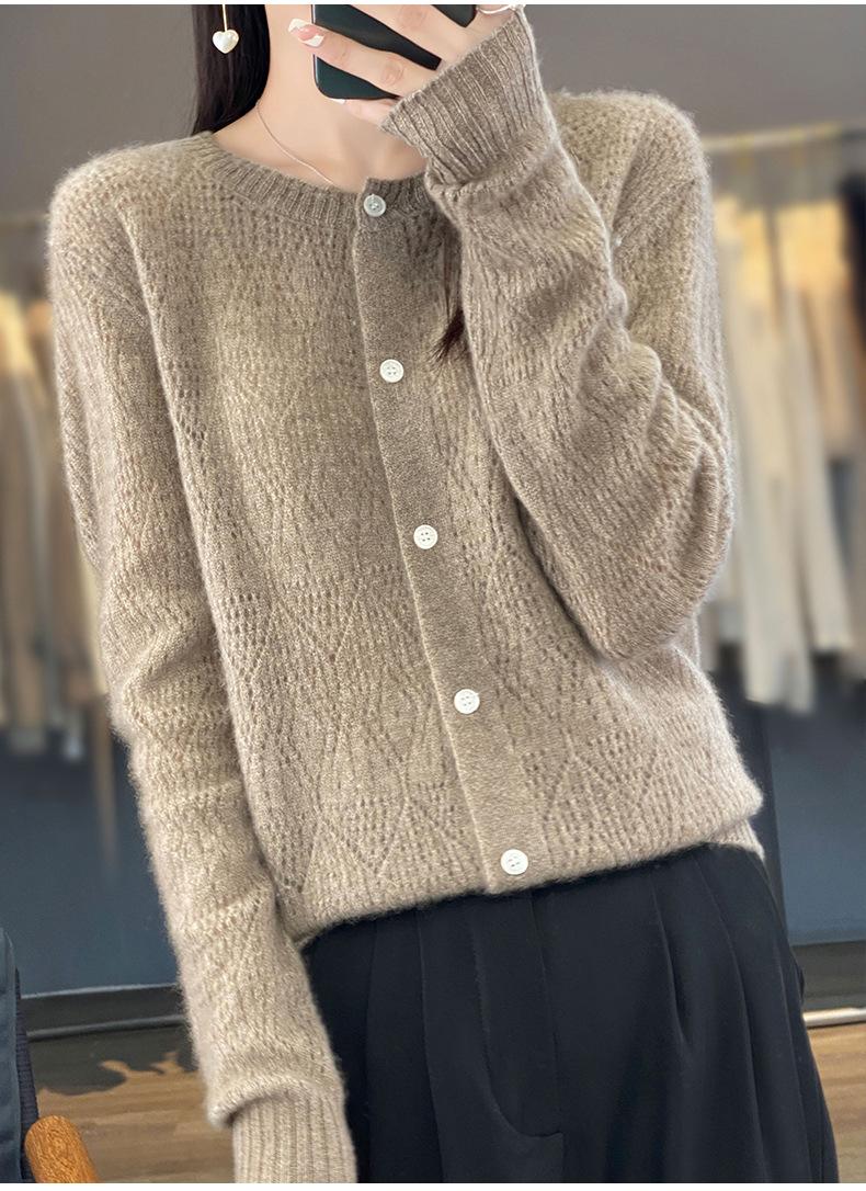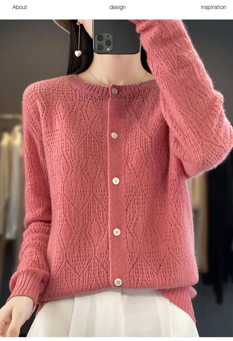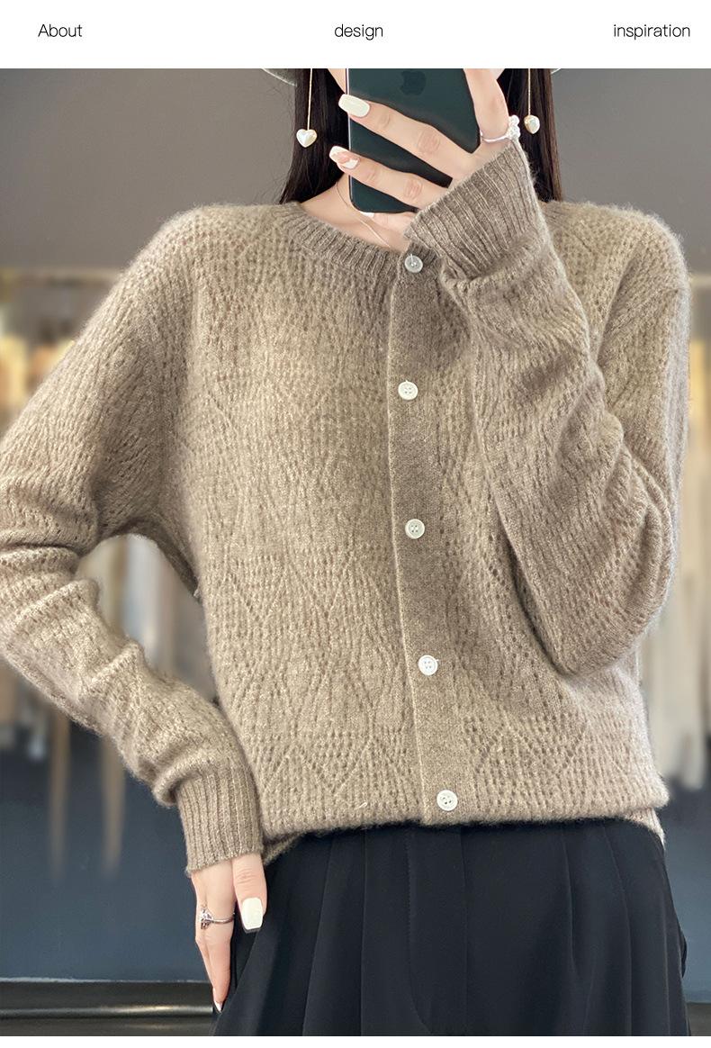 Cárdigan de cuello redondo para mujer, cárdigan de punto holgado de manga larga con cuello redondo, color liso, para otoño e invierno, 24 unidades