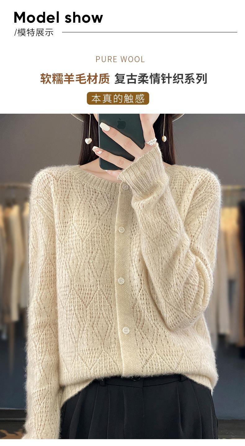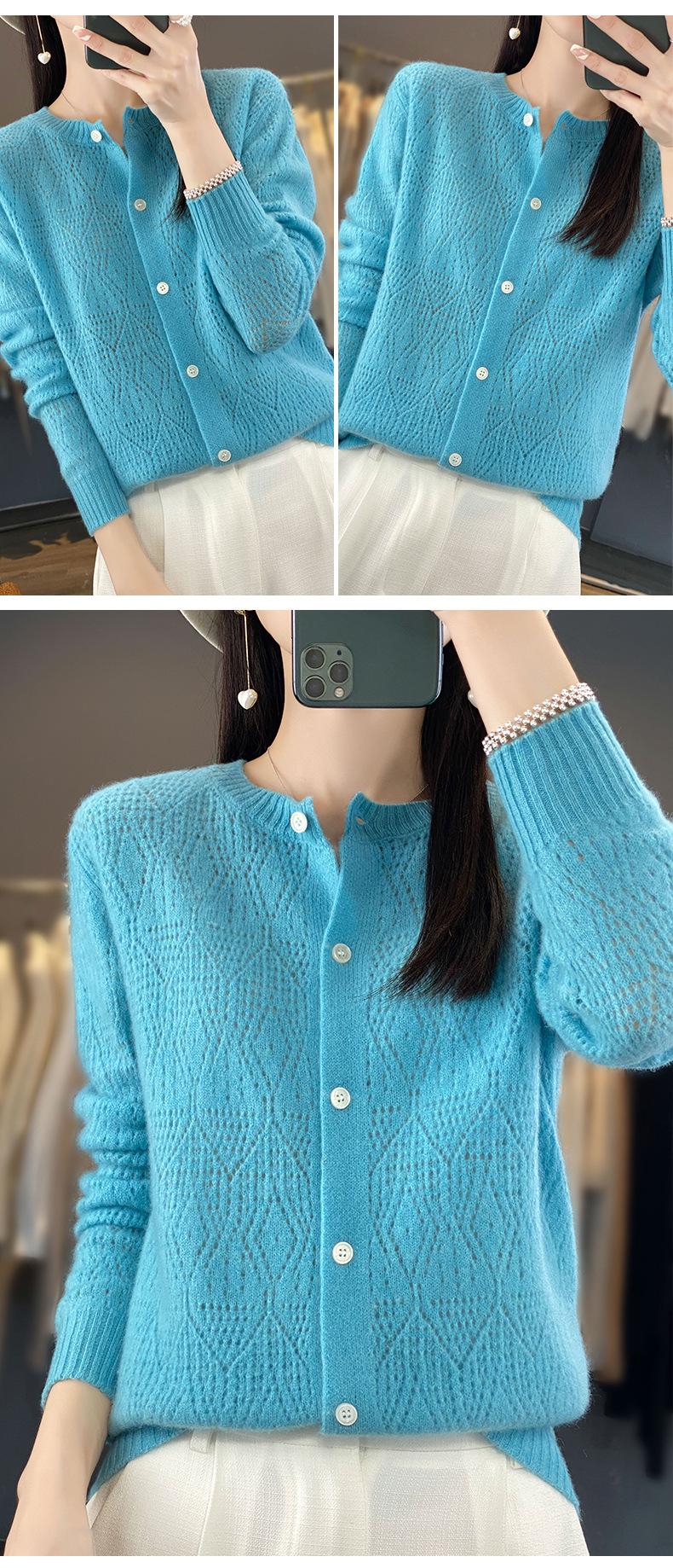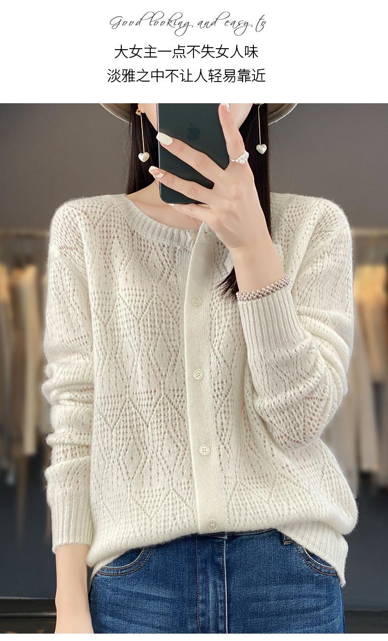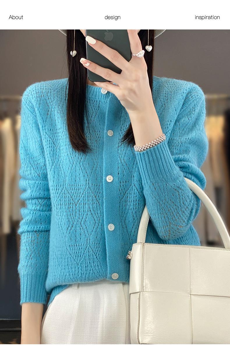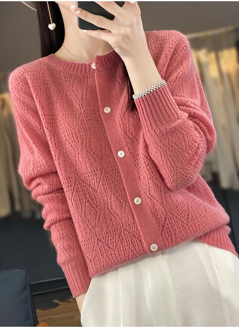 Cárdigan de cuello redondo para mujer, cárdigan de punto holgado de manga larga con cuello redondo, color liso, para otoño e invierno, 24 unidades