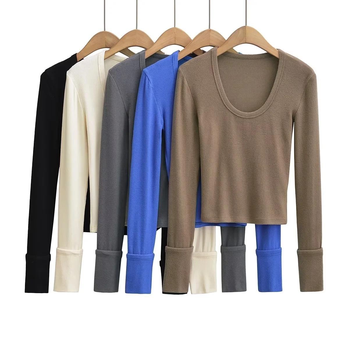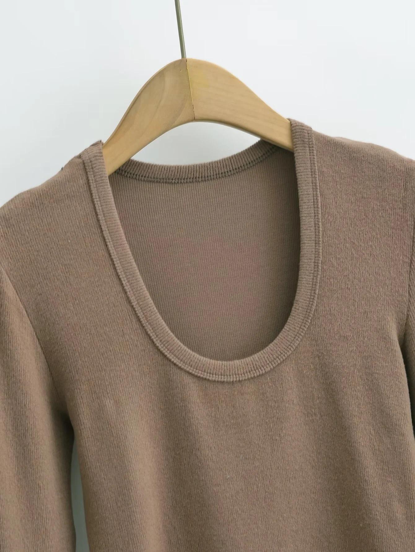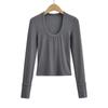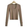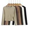 Spice Girl Europea y Americana Adelgazante Otoño e Invierno Lijado Engrosado Camiseta de Manga Larga Grande para Mujer Camiseta Base Top ins
