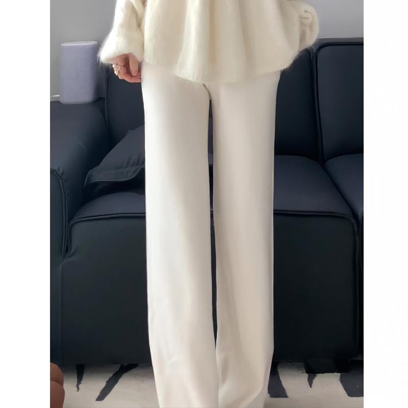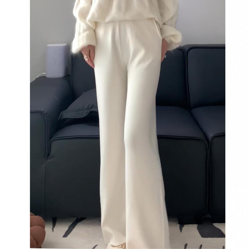 Pantalones de Punto de Cachemira Sueltos de Pierna Recta para Otoño e Invierno 2024 para Mujer, Pantalones Casuales de Cachemira de Pierna Ancha con Bolsillo