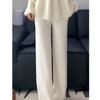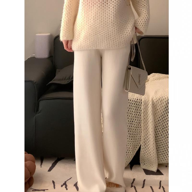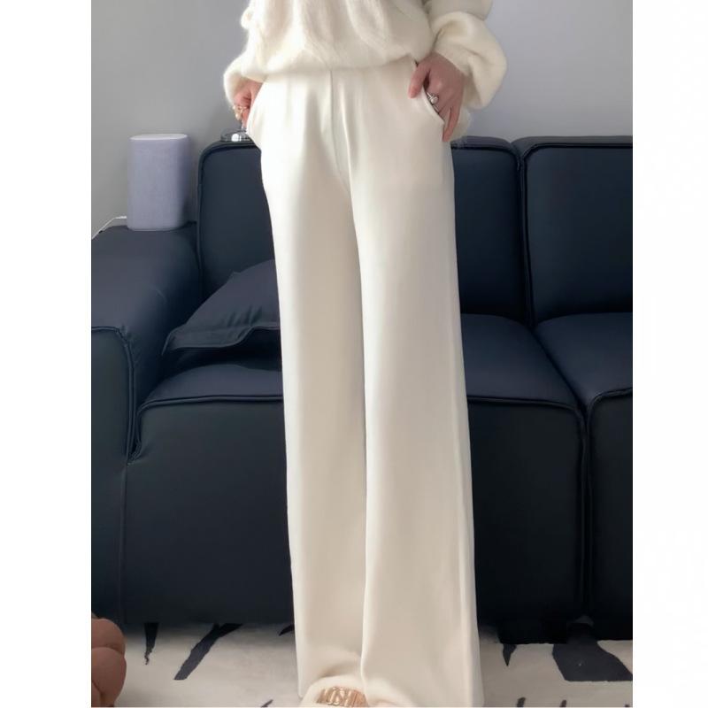 Pantalones rectos holgados de punto de lana de otoño e invierno para mujer, pantalones de cachemira de pierna ancha, pantalones de barrido, talla pequeña con bolsillos