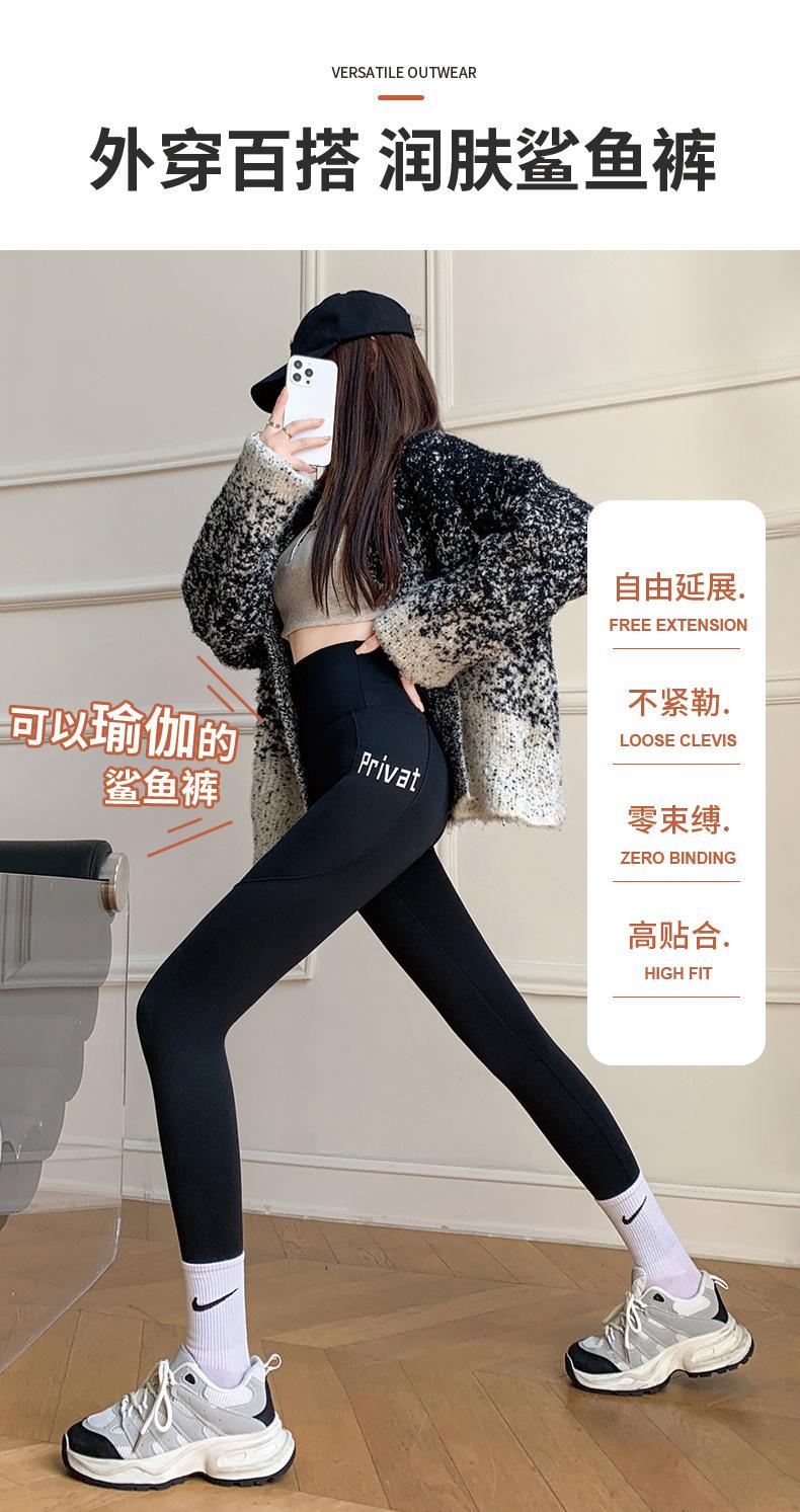 Pantalones Tiburón para Mujer con Forro Polar y Bolsillo Pantalones Barbie Otoño e Invierno Ropa Exterior Cintura Alta Corte Slim Adelgazantes Cadera Yoga Leggings Deportivos