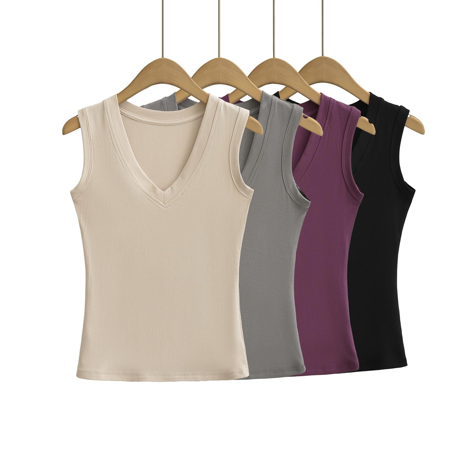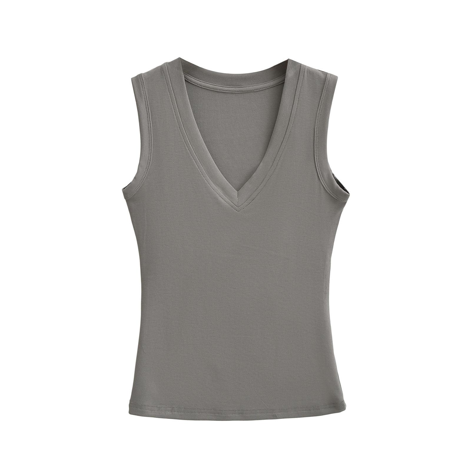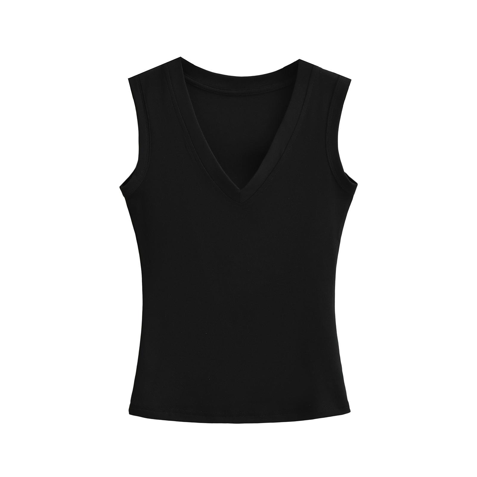 Chaleco sin mangas con cuello en V para mujer, novedad de verano 2024, ajustado, transpirable, adelgazante, de color sólido, de ala ancha