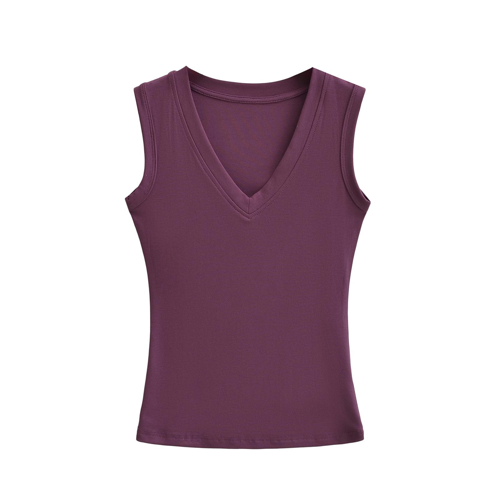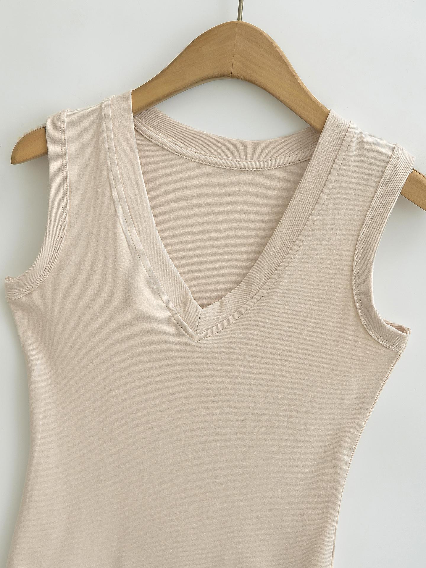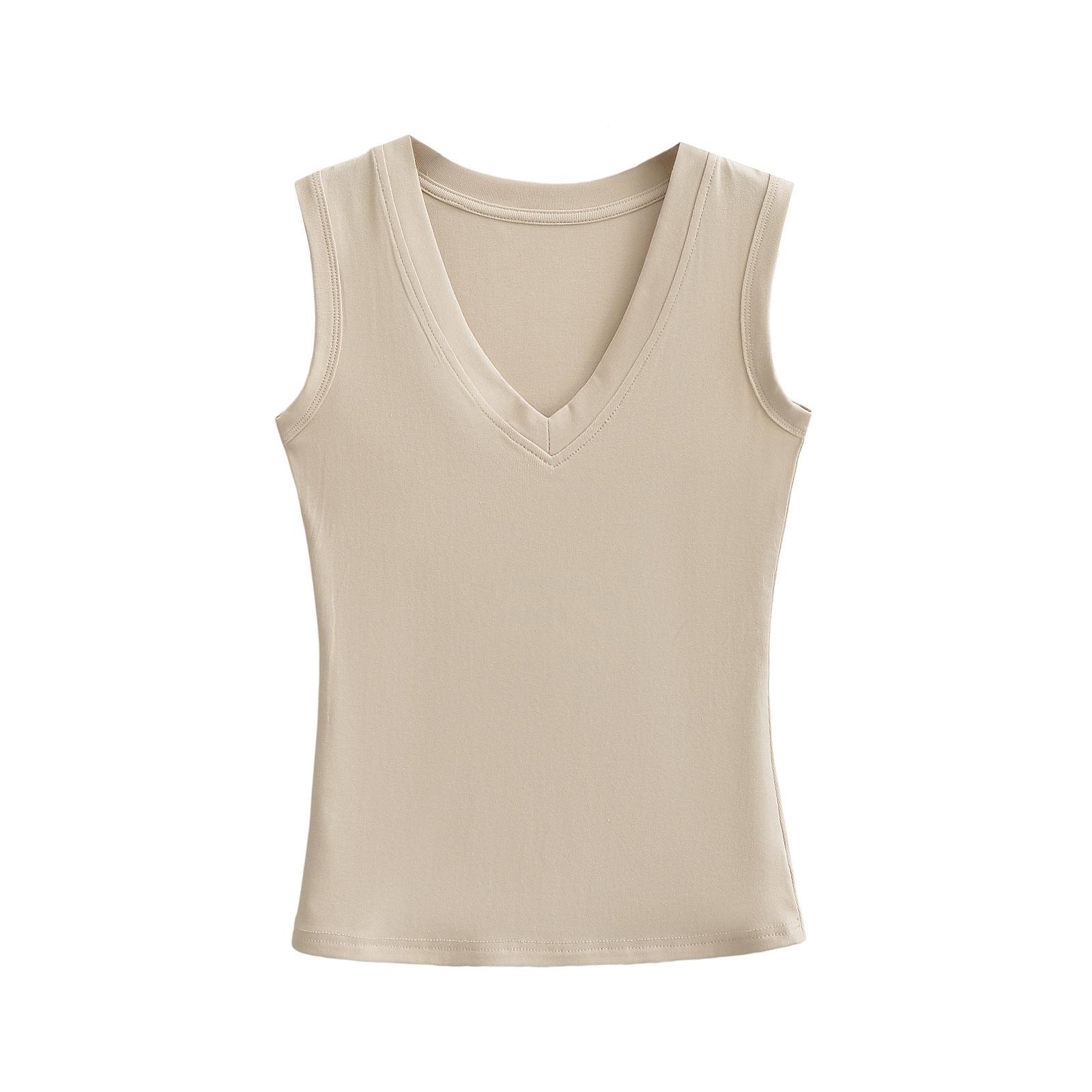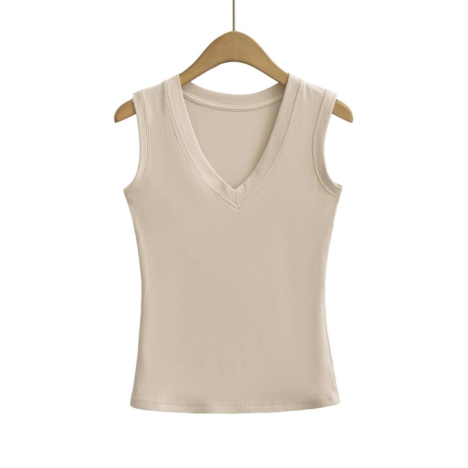 Chaleco sin mangas con cuello en V para mujer, novedad de verano 2024, ajustado, transpirable, adelgazante, de color sólido, de ala ancha