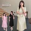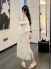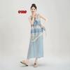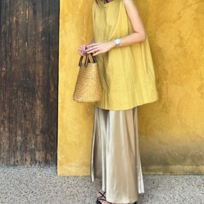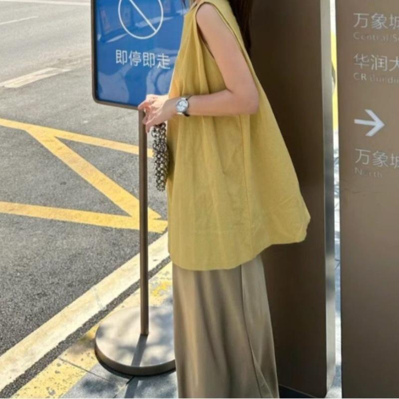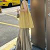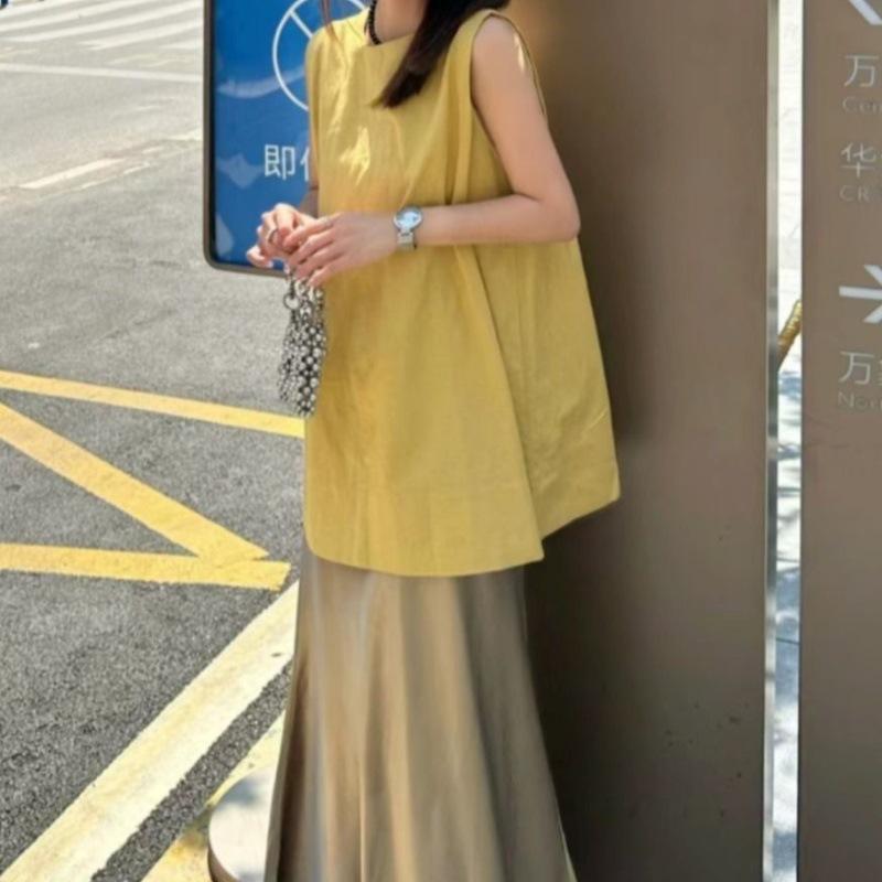 Top Chaleco Amarillo Holgado Casual Sin Mangas para Mujer 2025 Verano Nuevo Color Champaña Falda Cola de Pescado Conjunto de Dos Piezas
