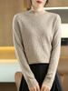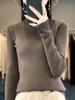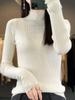 Suéter de lana peinada con cuello medio alto para mujer, jersey de color liso, ajustado, con base adelgazante y manga larga.