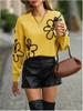 Tejidos de Punto para Mujer de Comercio Exterior Transfronterizo Europeo y Americano Otoño e Invierno Jacquard de Flores Tejidos de Punto Jersey de Moda Cuello Redondo Manga Larga Tops para Mujer