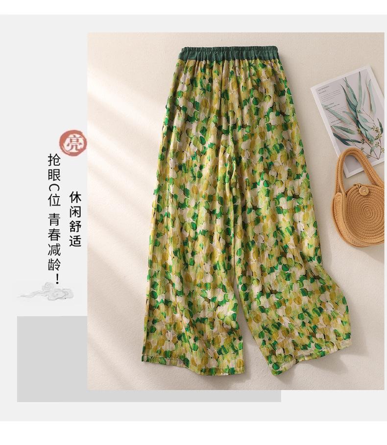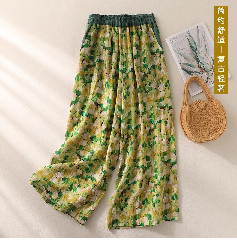 Pantalones casuales ligeros y transpirables de verano 2024 para mujer, con cintura holgada, adelgazantes, holgados y combinables, con pierna ancha y recortados.