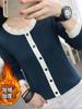 Suéter de punto con forro polar/sin forro polar, suéter coreano de manga larga con costuras a juego, camisa básica para mujer, otoño e invierno, nuevo