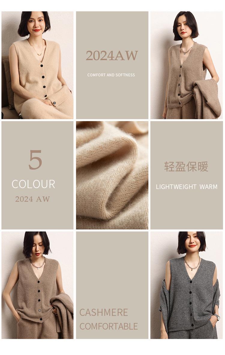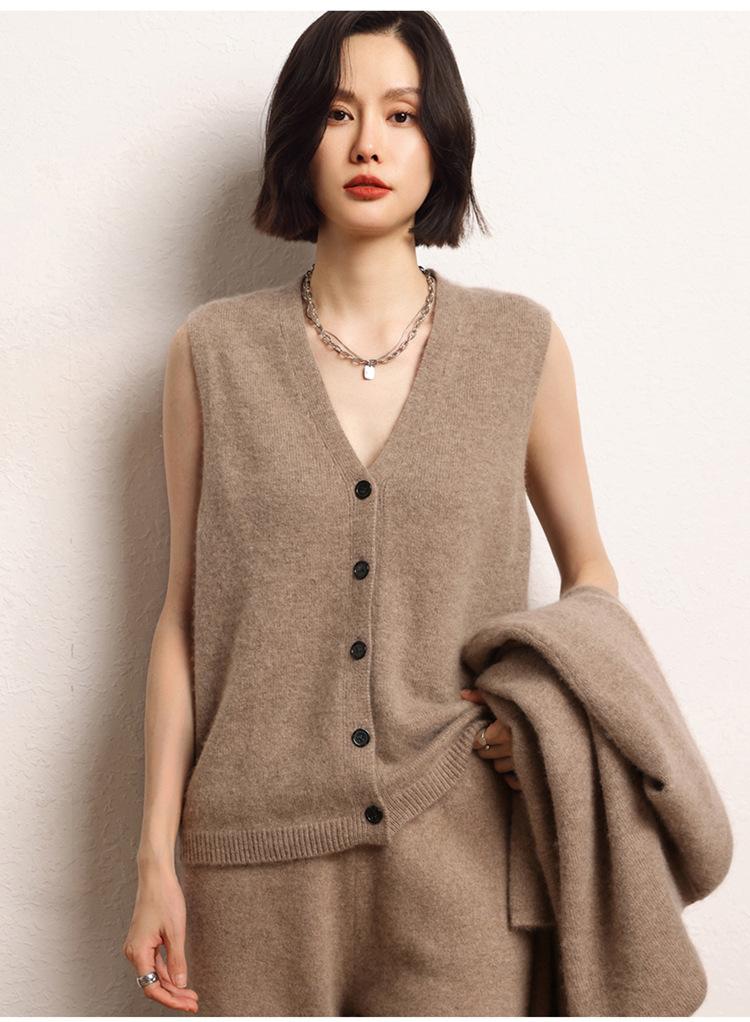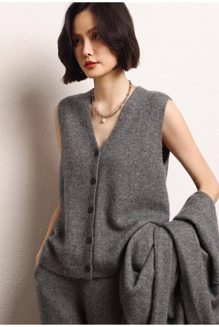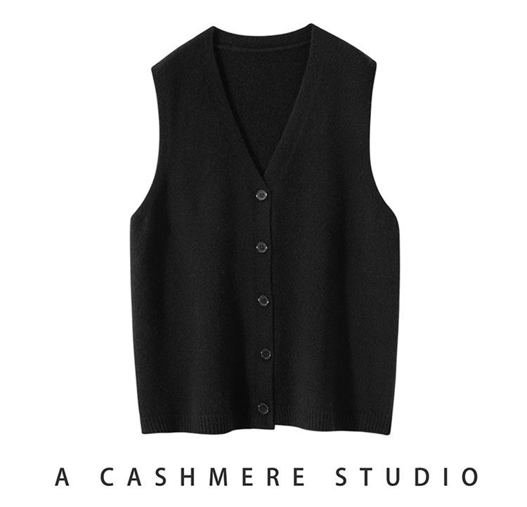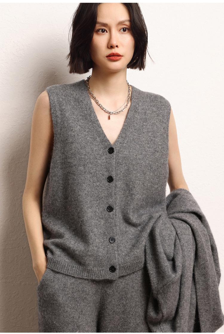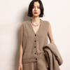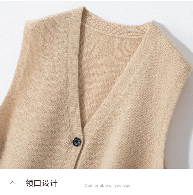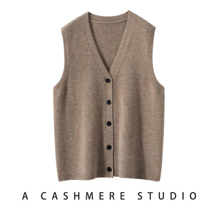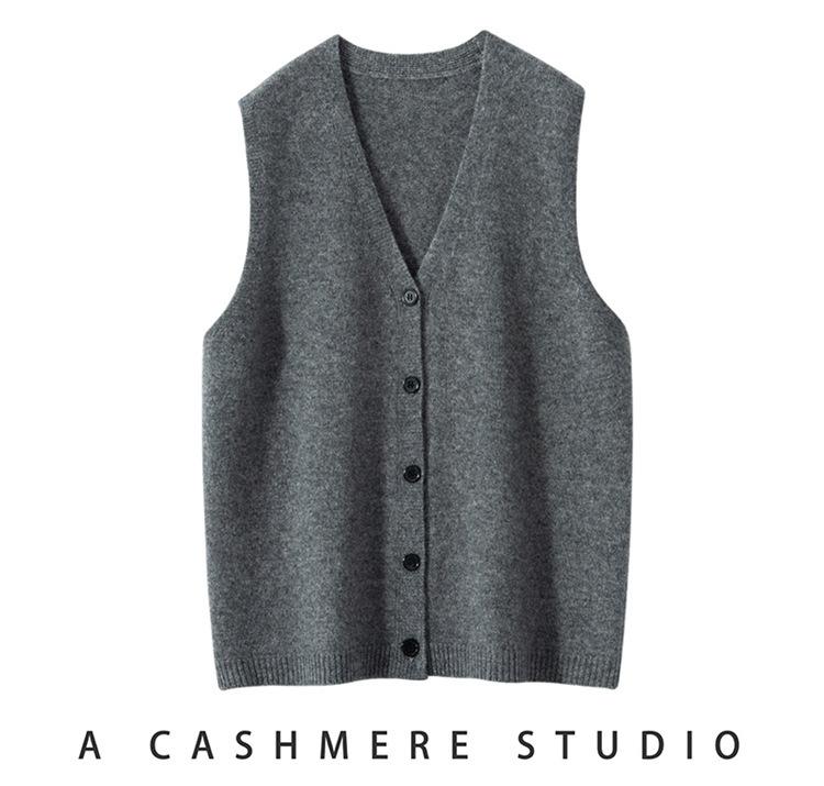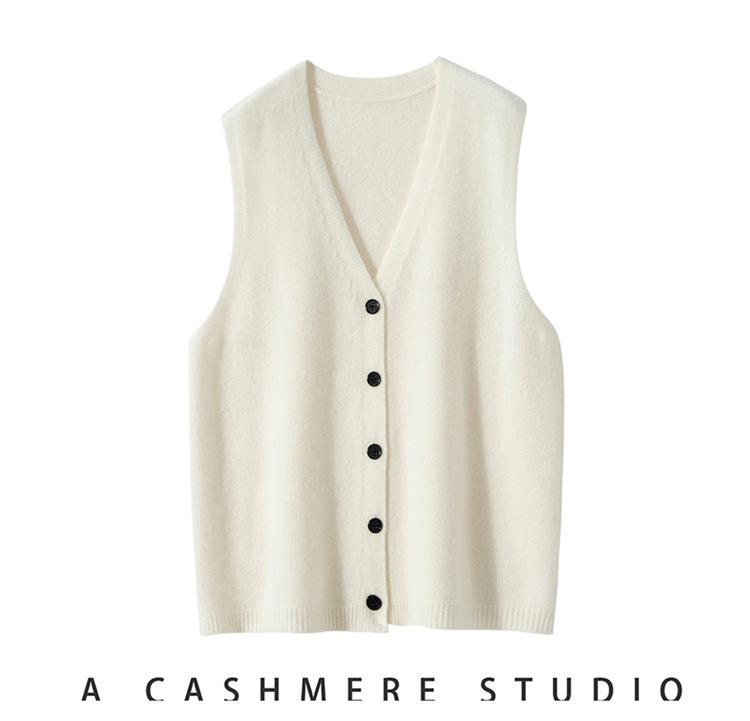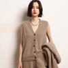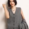 Cachemira 2025 Nuevo Otoño e Invierno para Mujer Corto Suelto Cuello en V Color Puro Botones con Chaleco Cárdigan de Punto