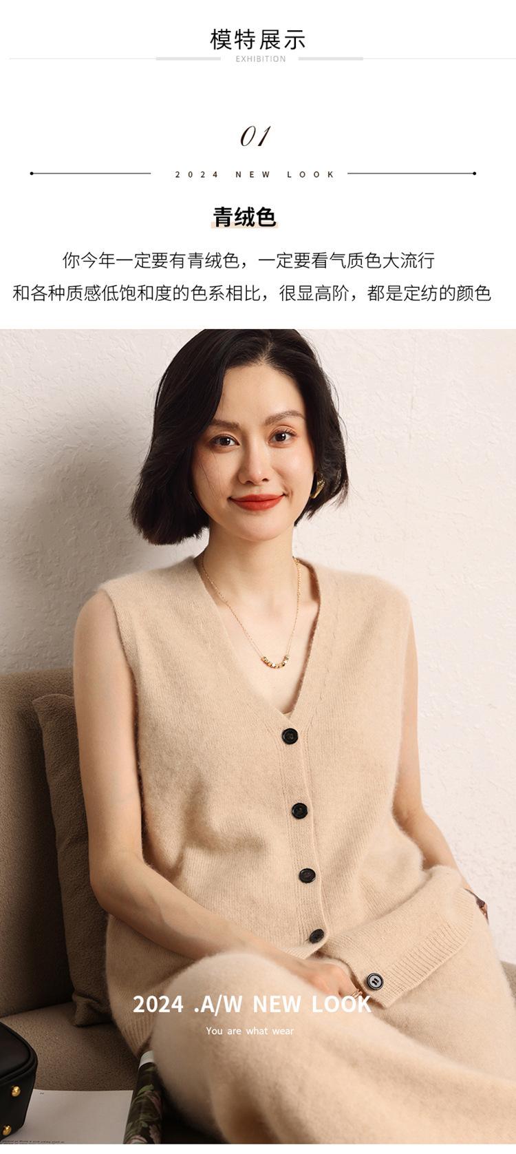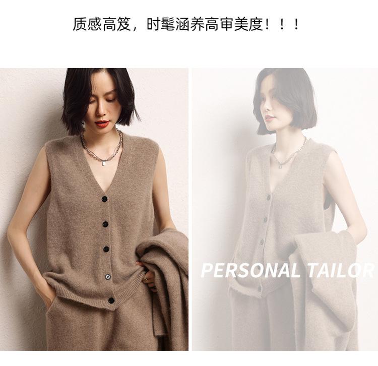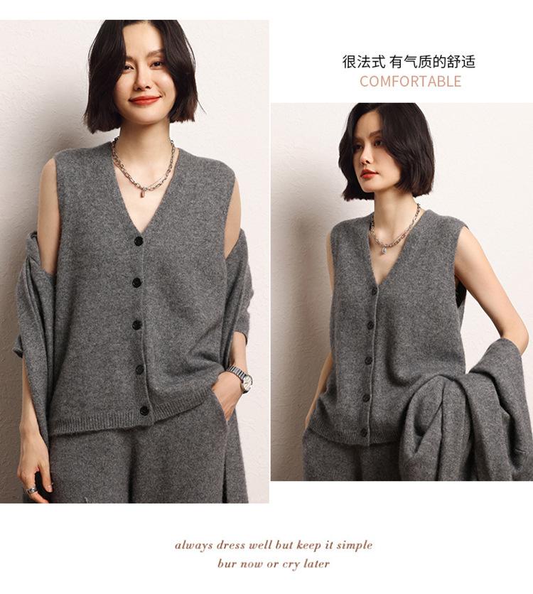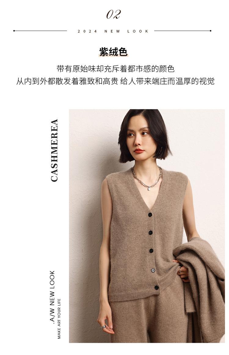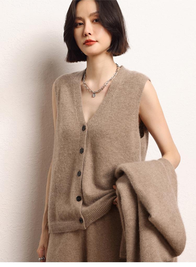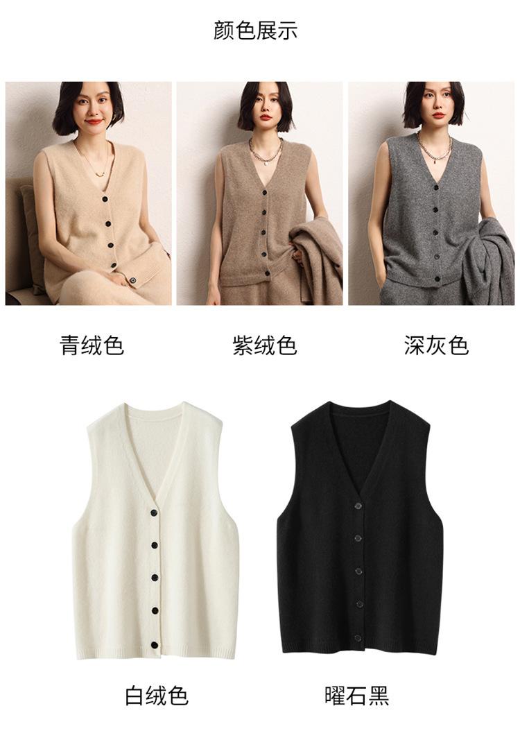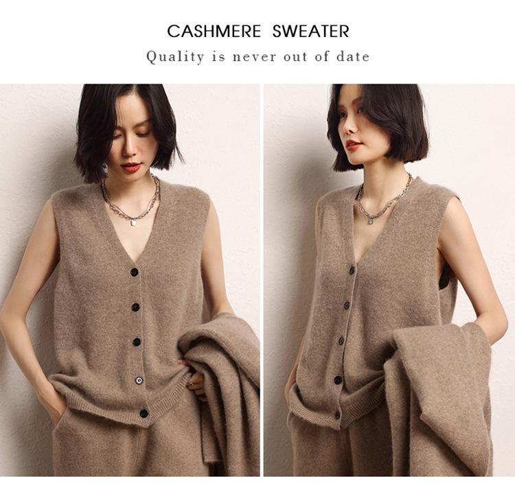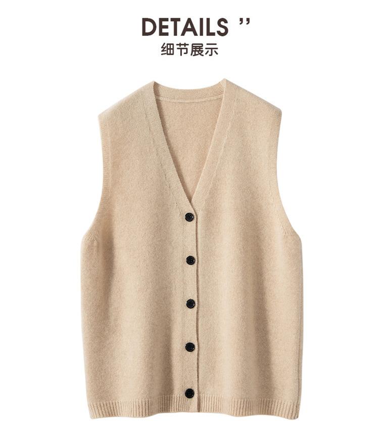 Cachemira 2025 Nuevo Otoño e Invierno para Mujer Corto Suelto Cuello en V Color Puro Botones con Chaleco Cárdigan de Punto