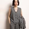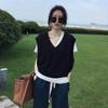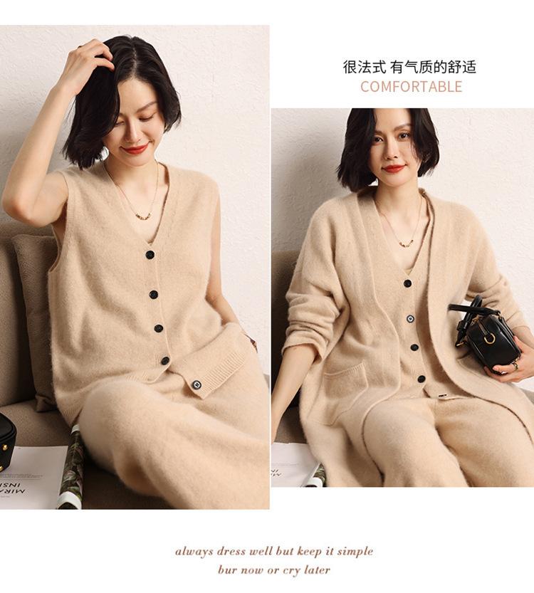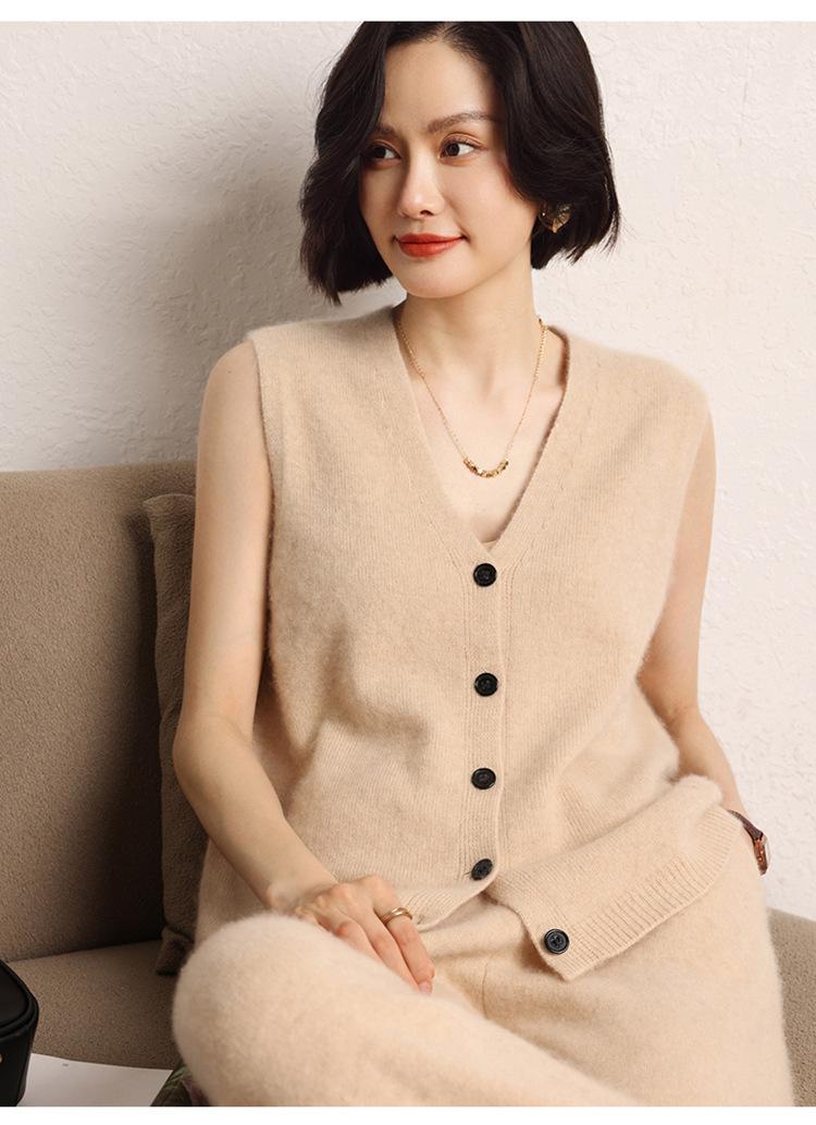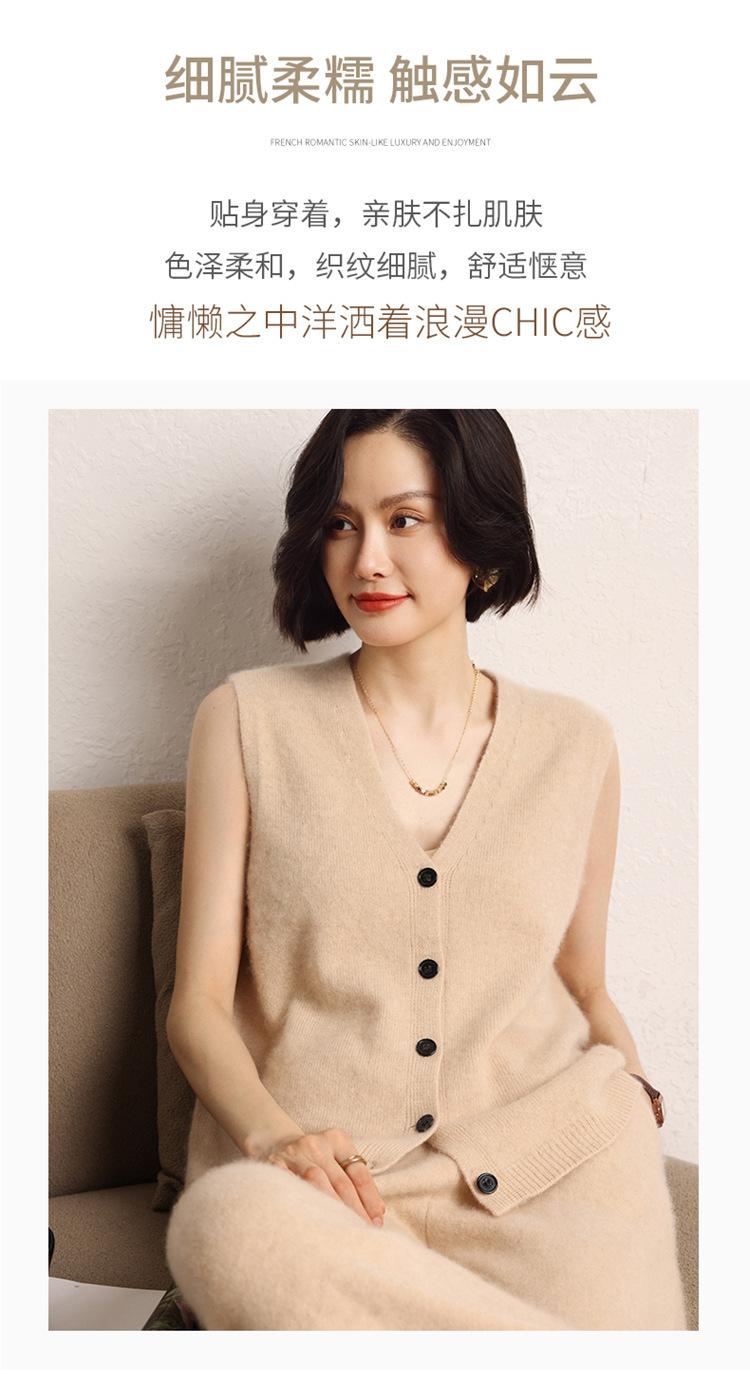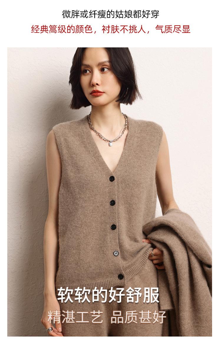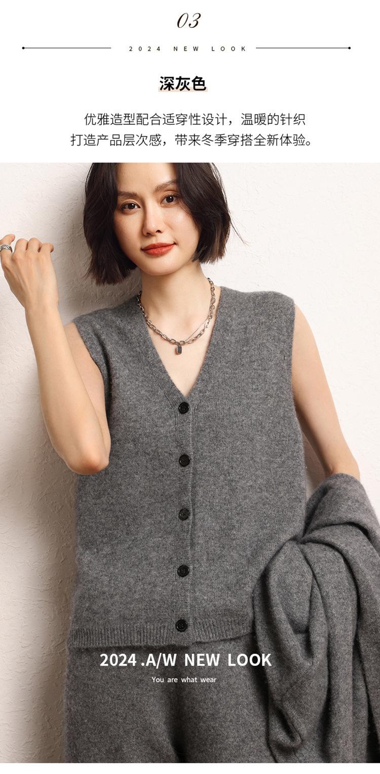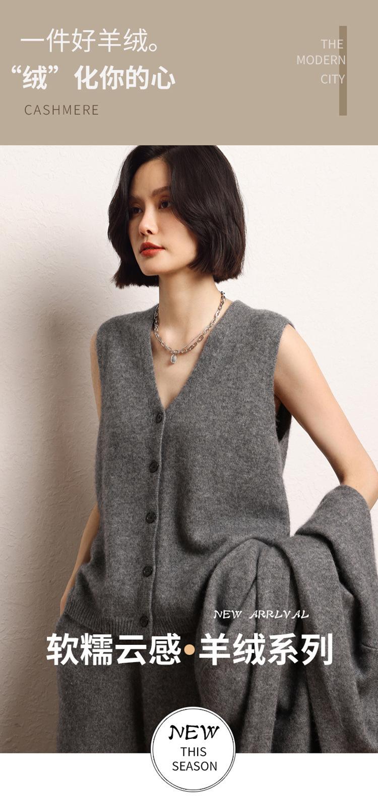 Cachemira 2025 Nuevo Otoño e Invierno para Mujer Corto Suelto Cuello en V Color Puro Botones con Chaleco Cárdigan de Punto