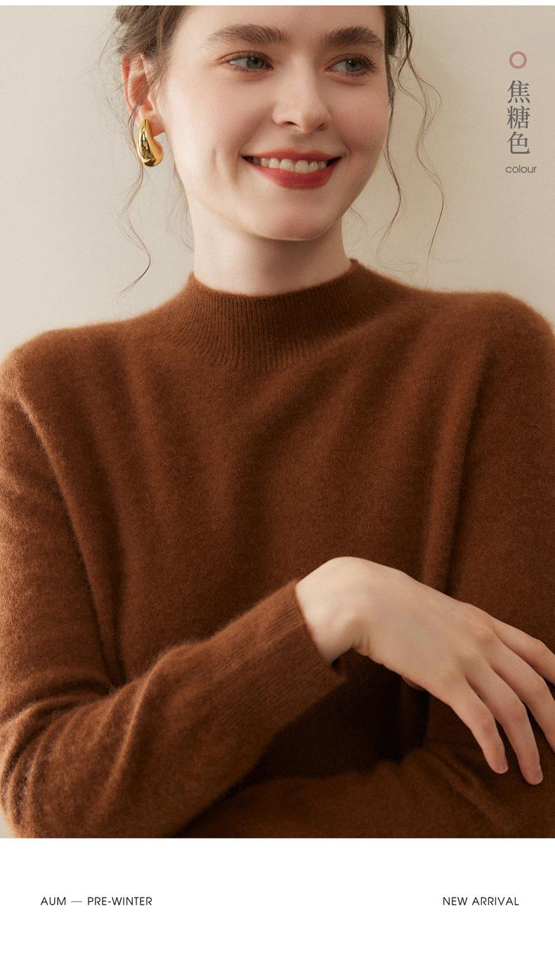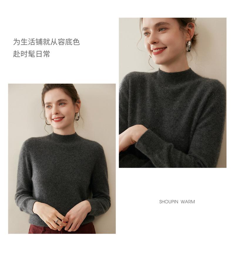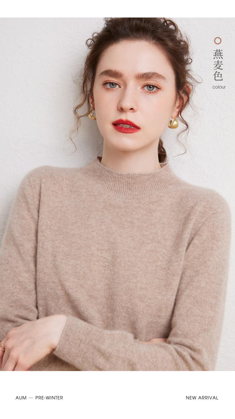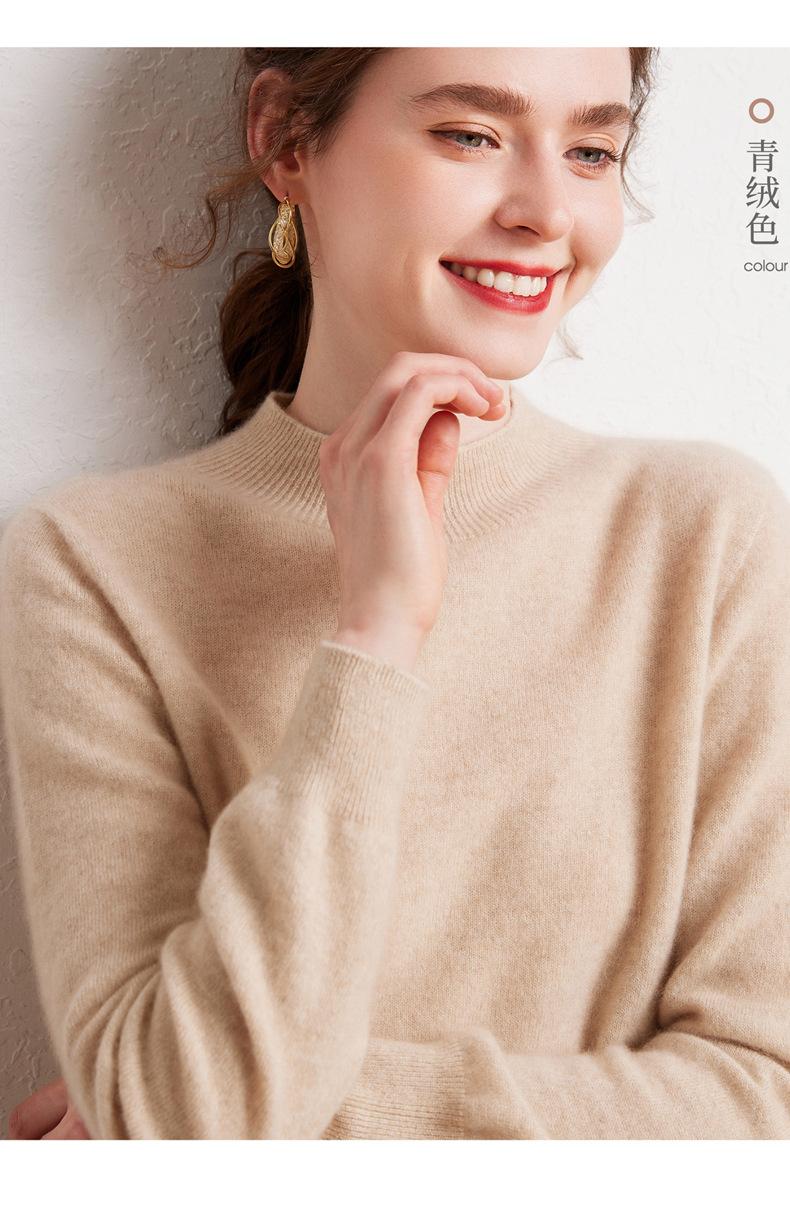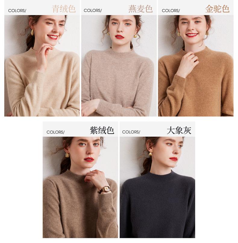 Suéter de Cachemira para Mujer 100% Cachemira Pura Otoño e Invierno Nuevo Listo para Usar de Una Línea Cuello Medio Tortuga Tejido Suéter Básico