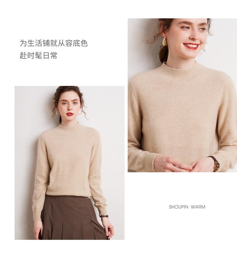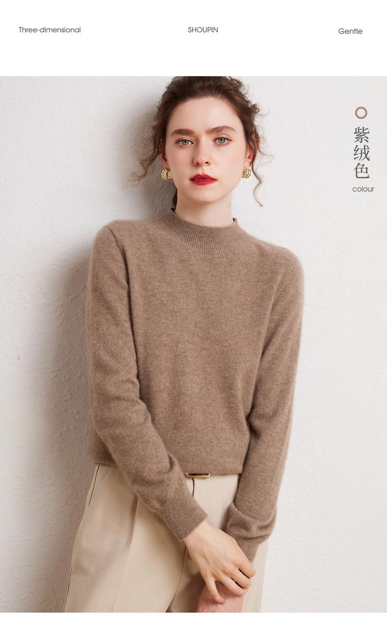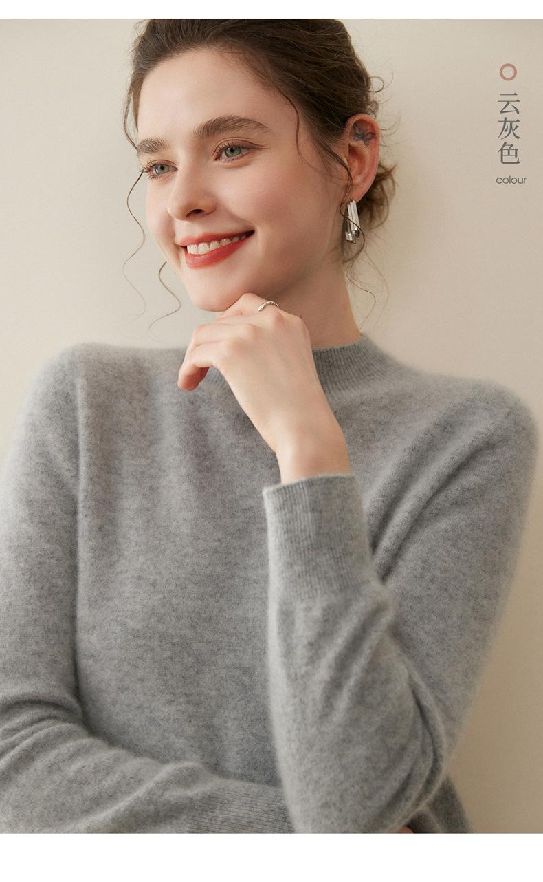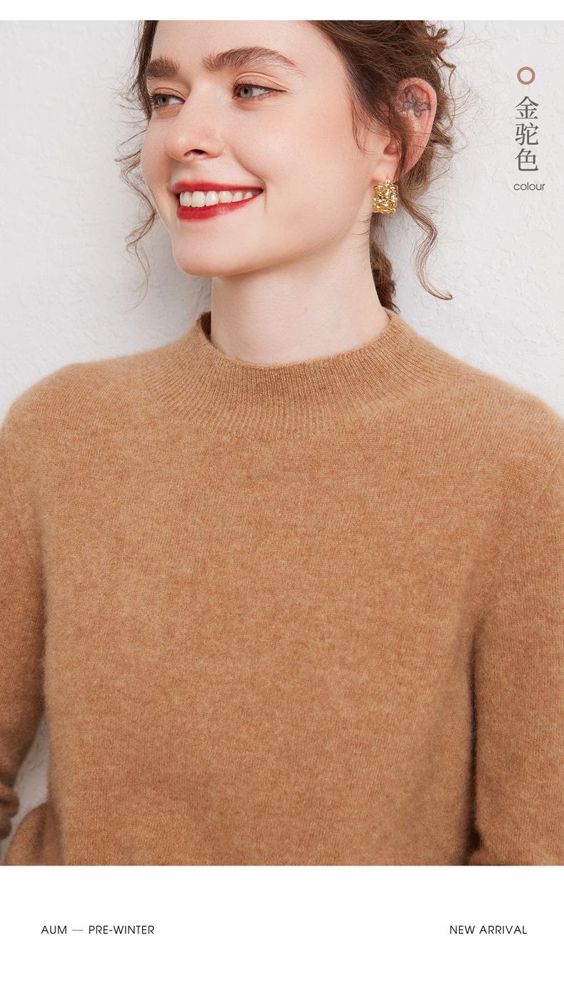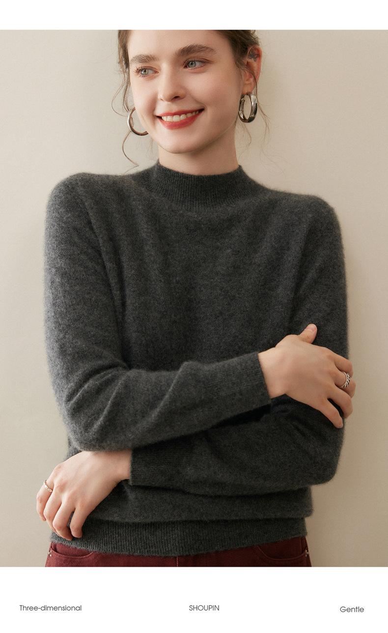 Suéter de Cachemira para Mujer 100% Cachemira Pura Otoño e Invierno Nuevo Listo para Usar de Una Línea Cuello Medio Tortuga Tejido Suéter Básico