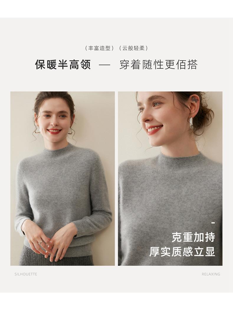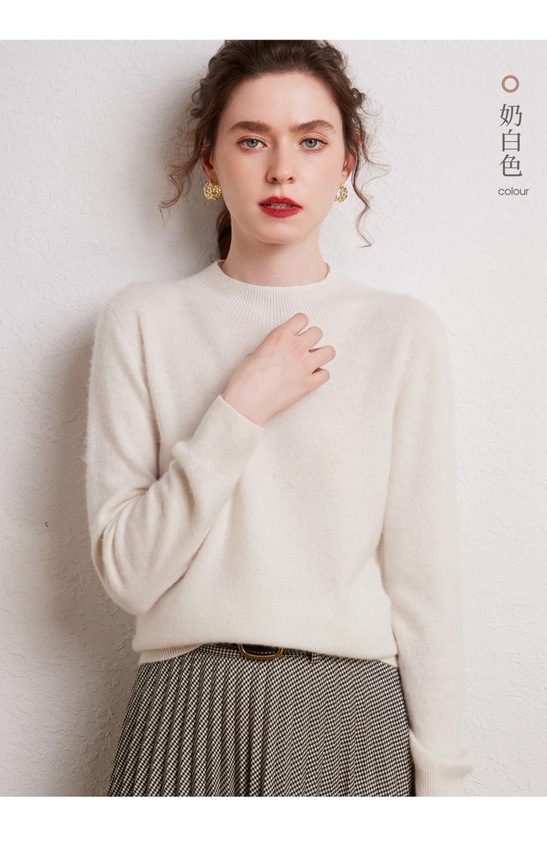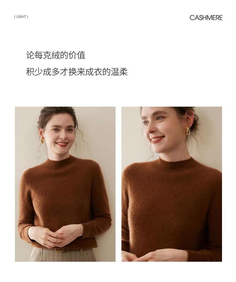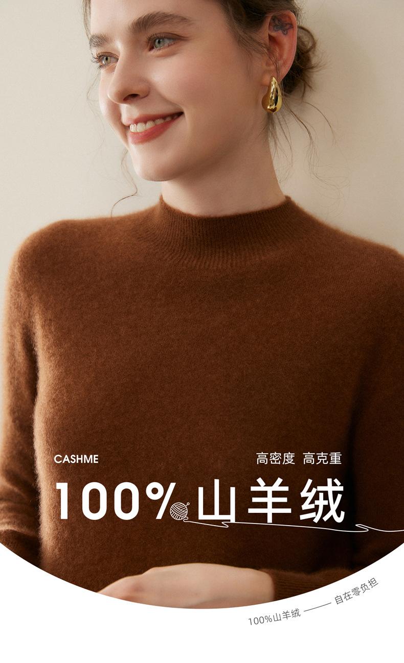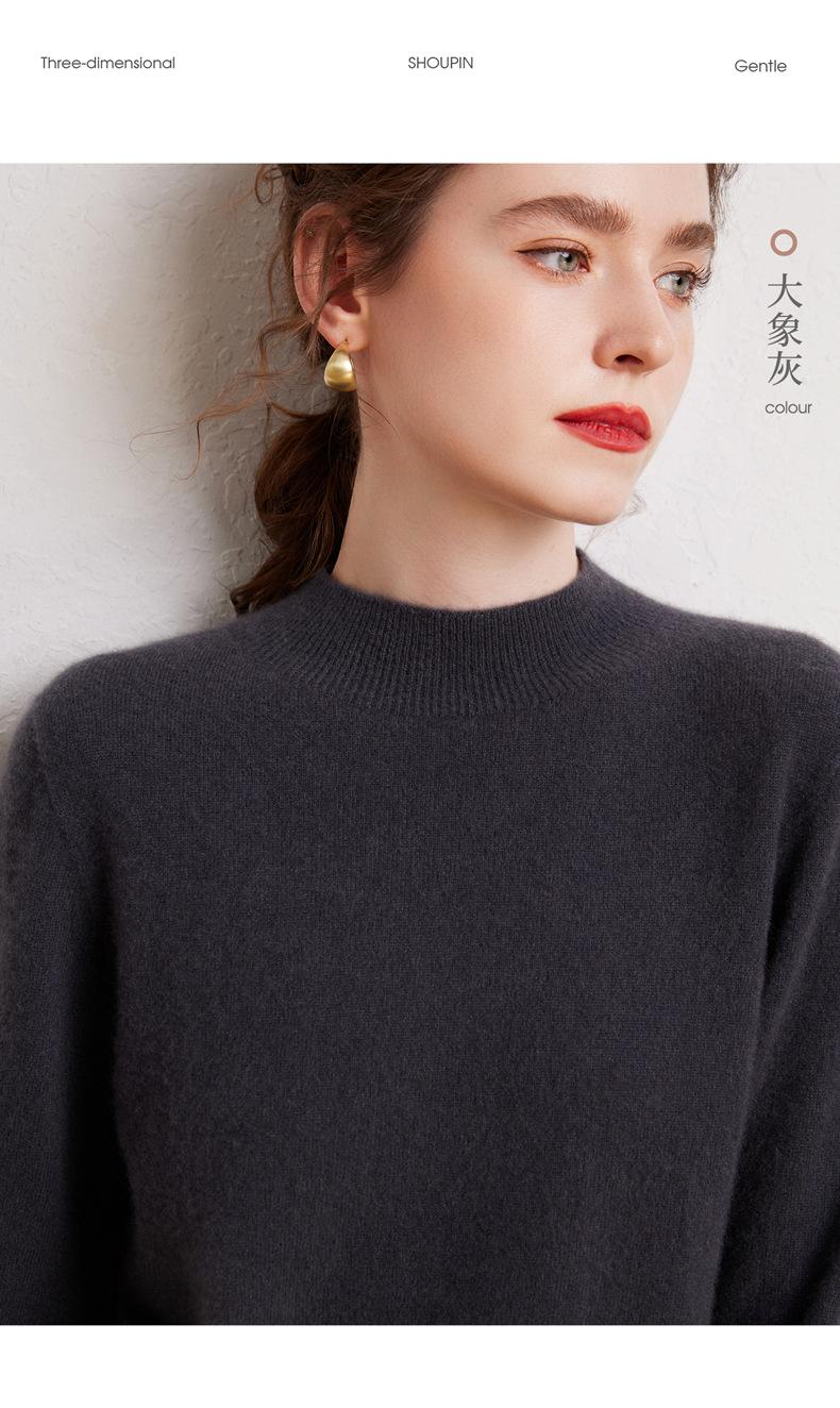 Suéter de Cachemira para Mujer 100% Cachemira Pura Otoño e Invierno Nuevo Listo para Usar de Una Línea Cuello Medio Tortuga Tejido Suéter Básico