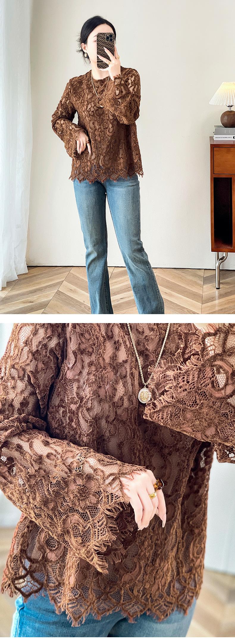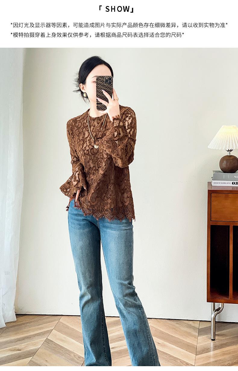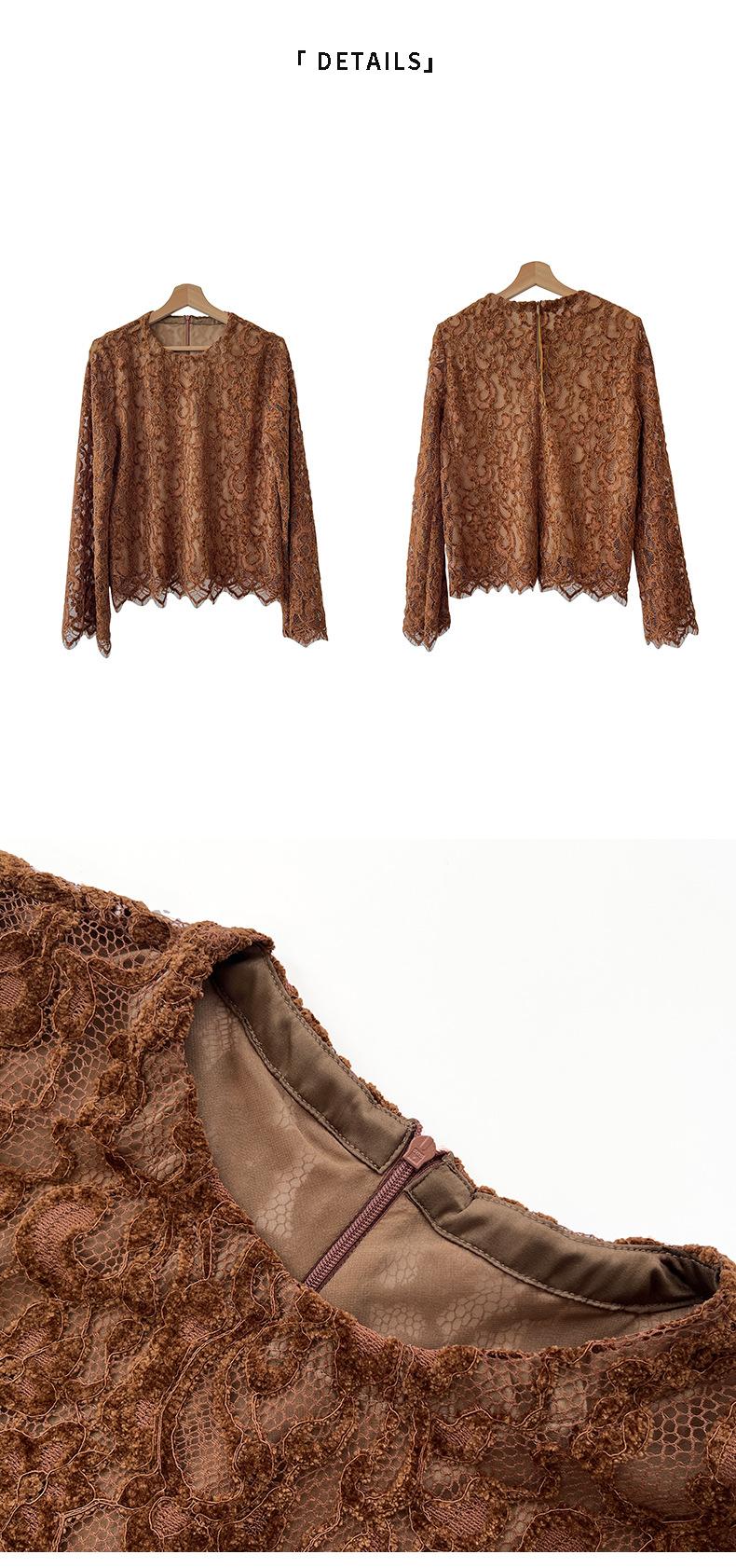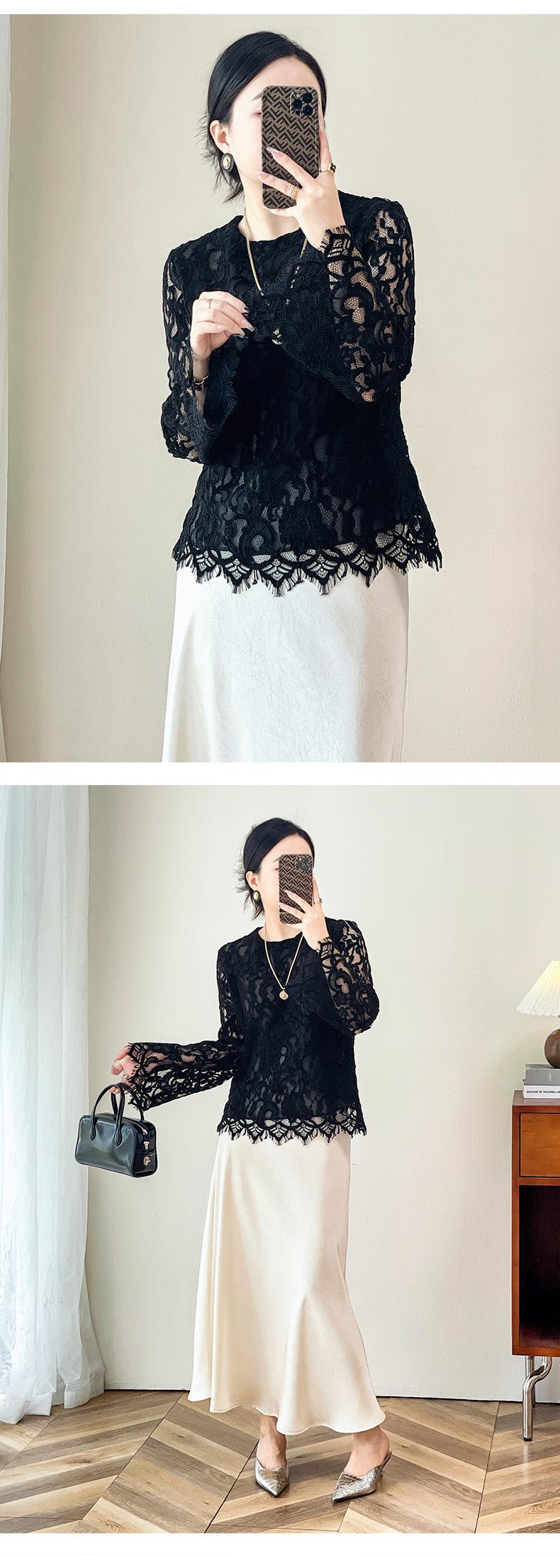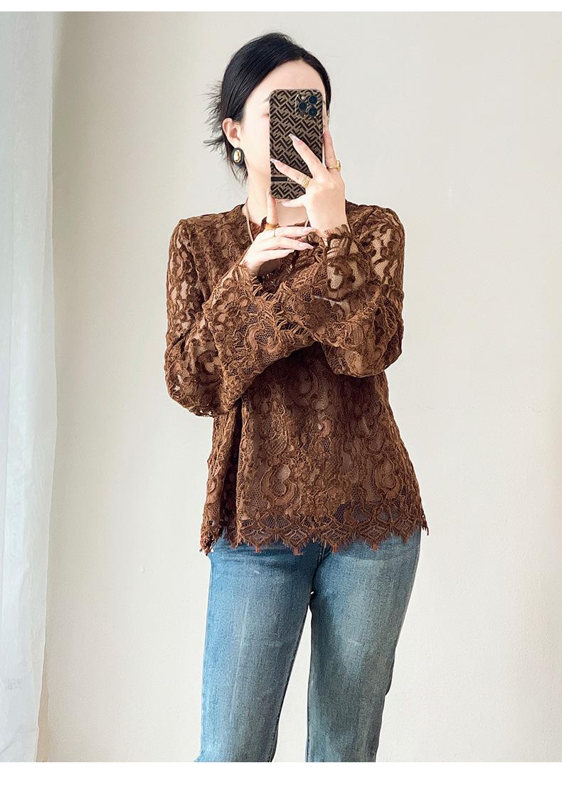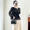 2424106-Jersey de cuello redondo con diseño hueco de encaje estilo occidental de Shenzhen Nanyou Mingyuan para mujer