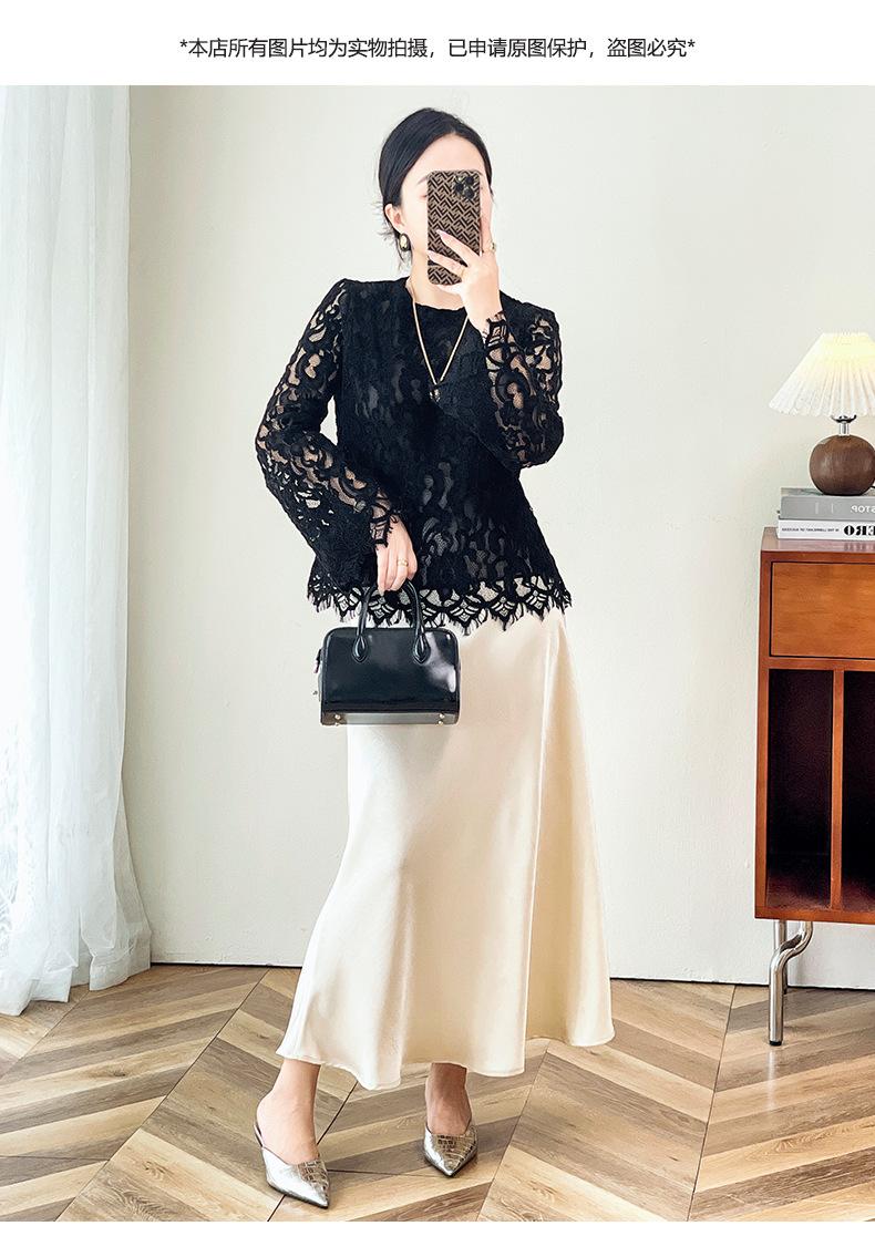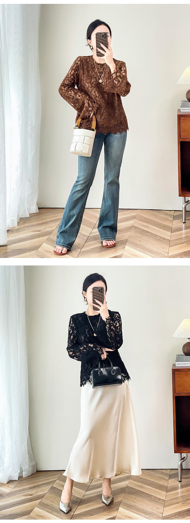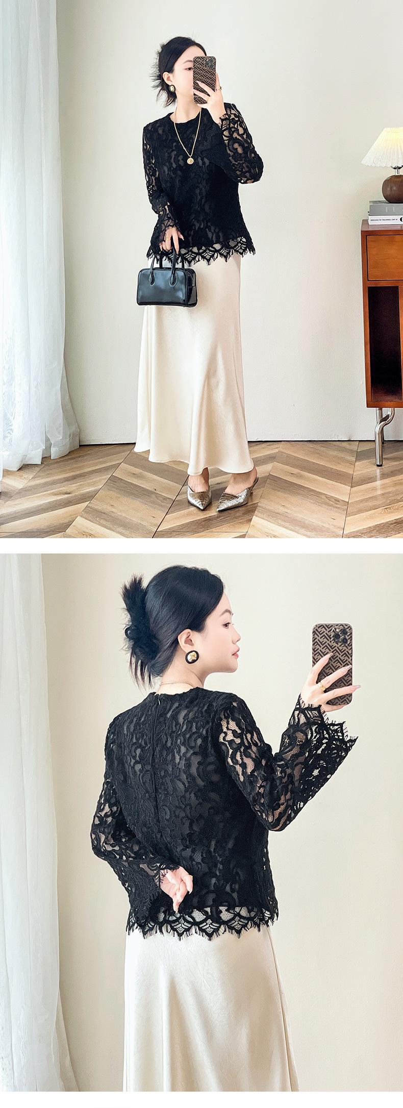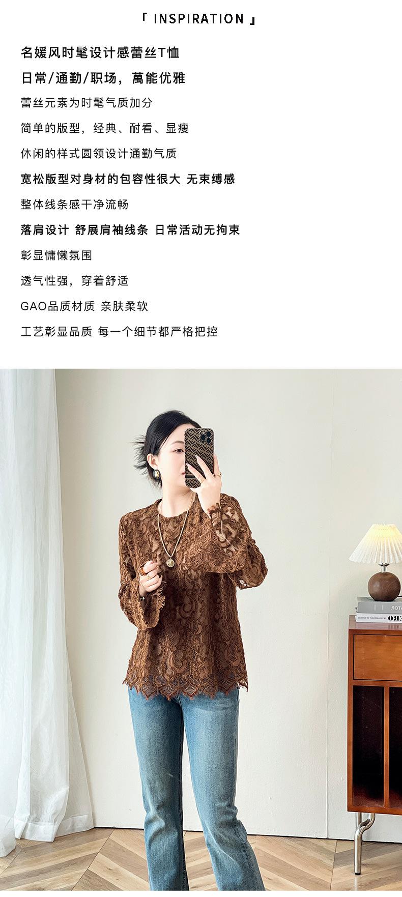 2424106-Jersey de cuello redondo con diseño hueco de encaje estilo occidental de Shenzhen Nanyou Mingyuan para mujer