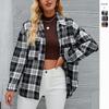 Abrigo de lana suelto de manga larga con solapa a cuadros para mujer, otoño e invierno 2024, comercio exterior transfronterizo de Amazon Europa y Estados Unidos en stock