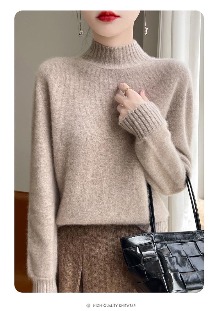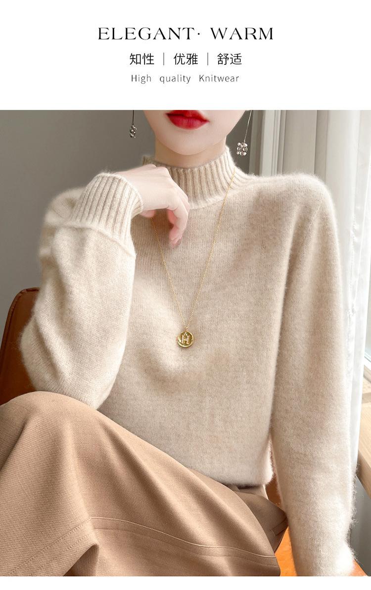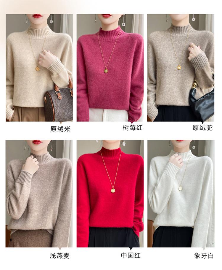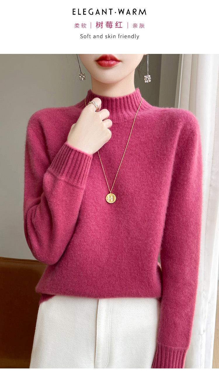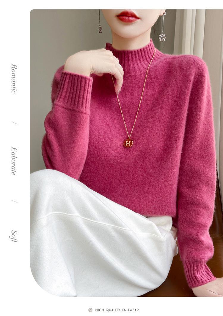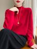 Suéter de primera línea para otoño e invierno, nuevo suéter rojo grueso de cuello medio alto para mujer, top de punto suelto