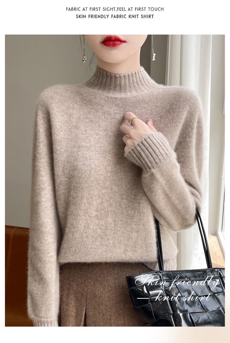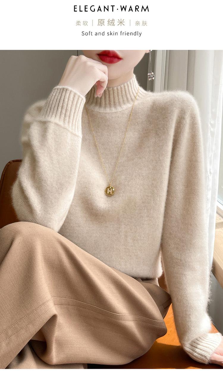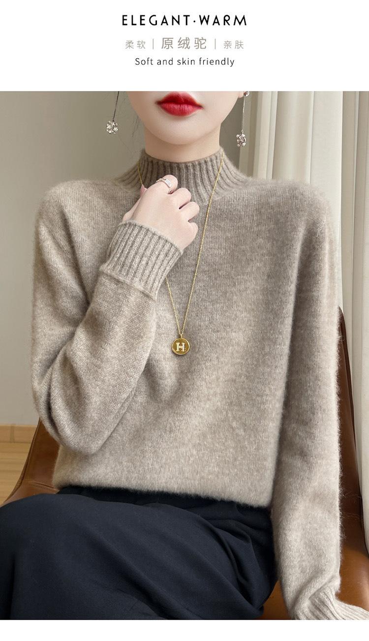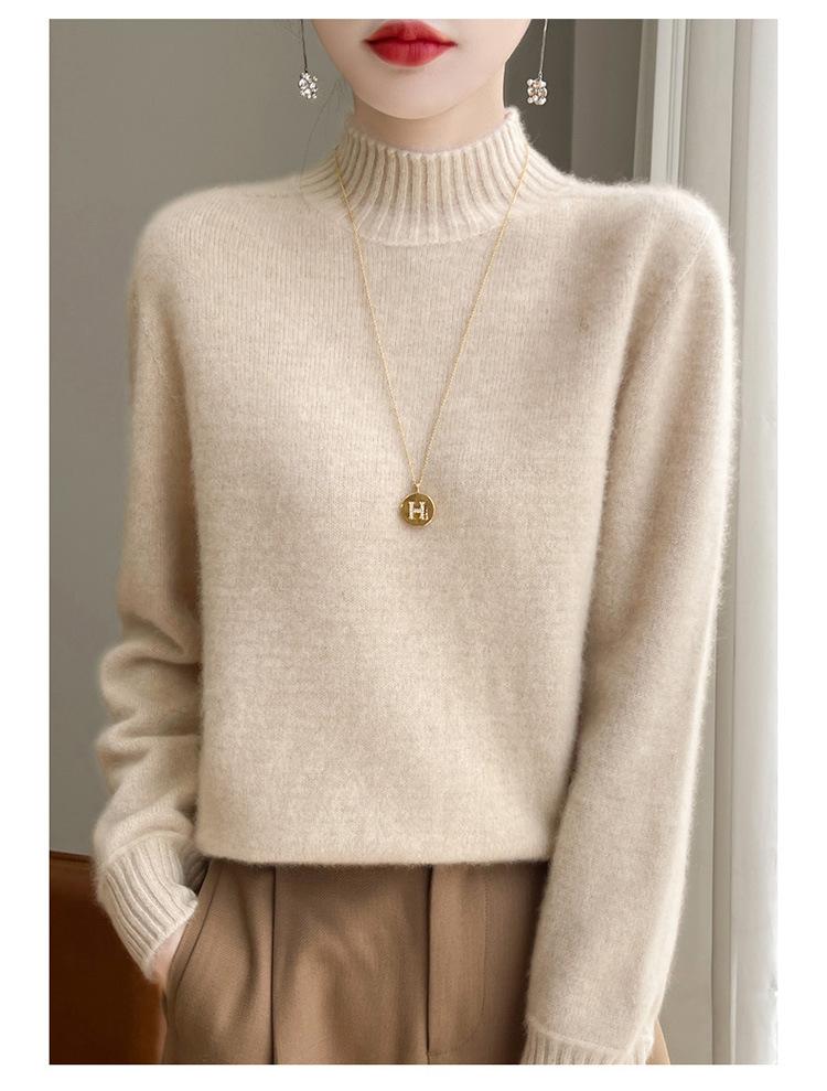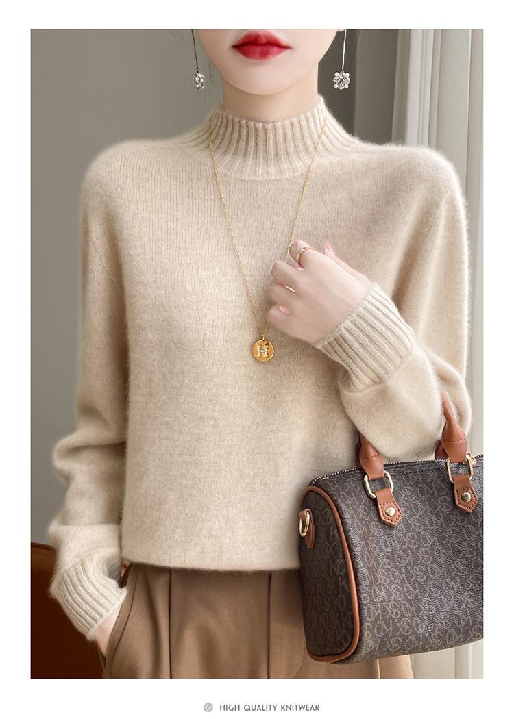 Suéter de primera línea para otoño e invierno, nuevo suéter rojo grueso de cuello medio alto para mujer, top de punto suelto