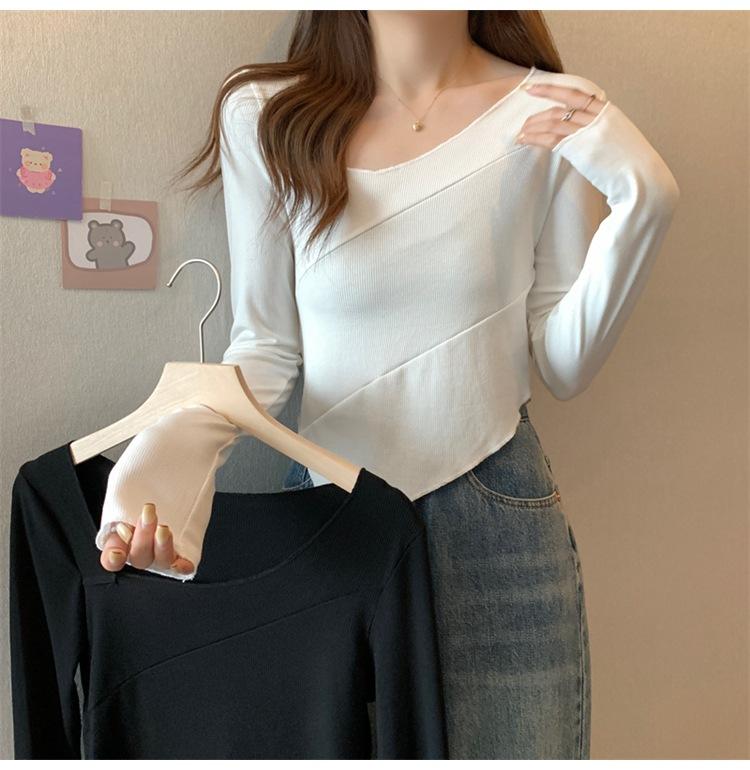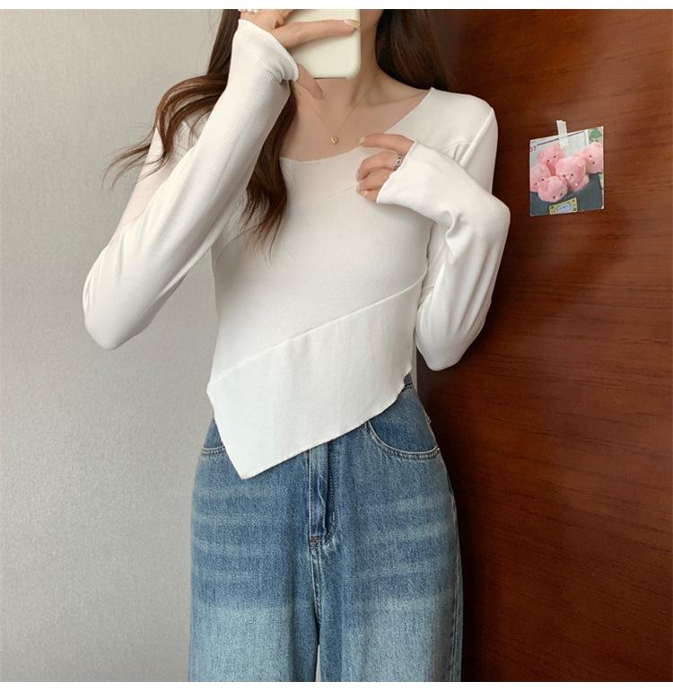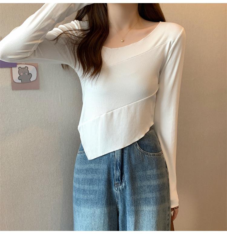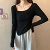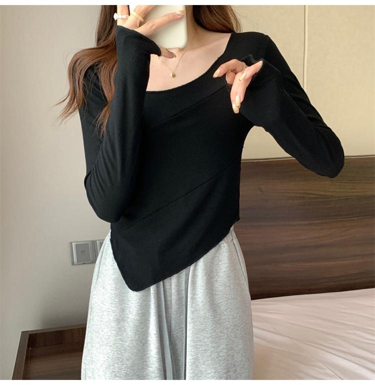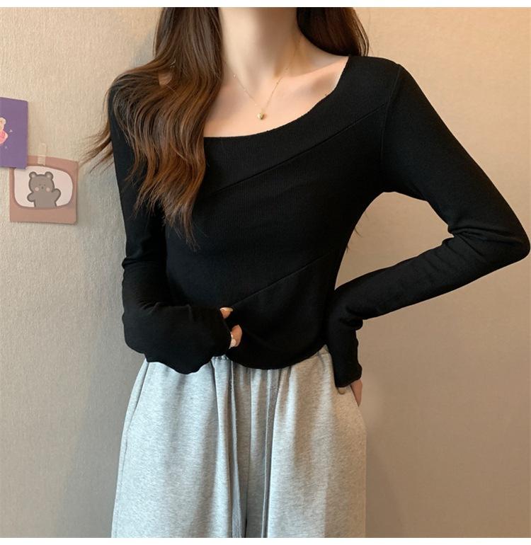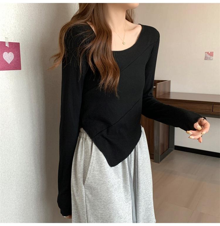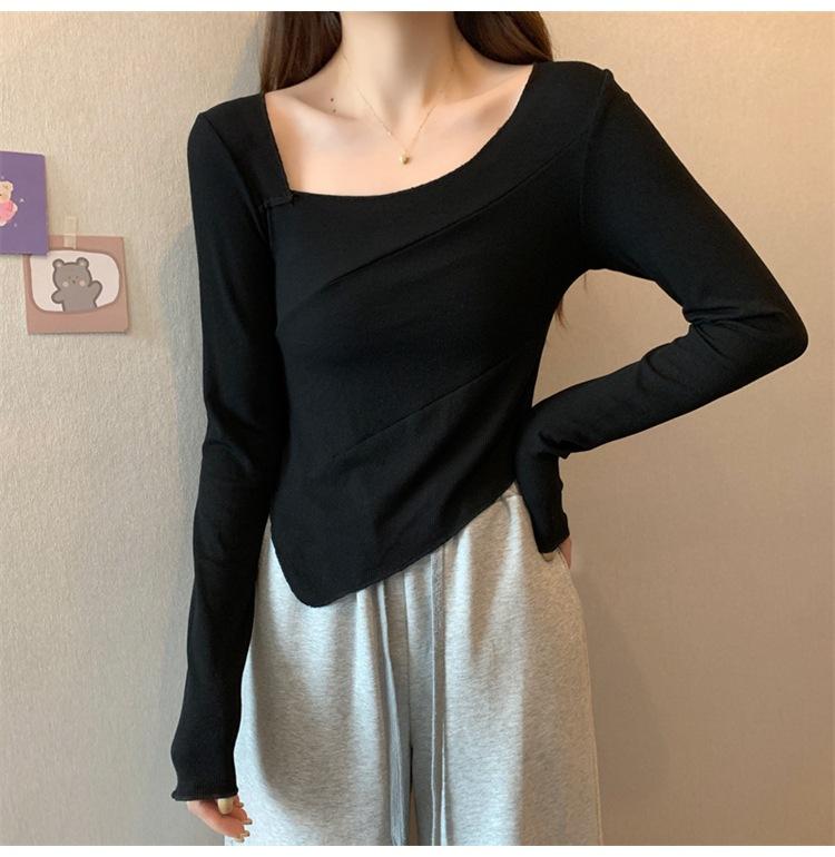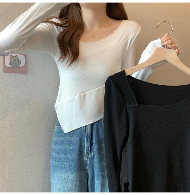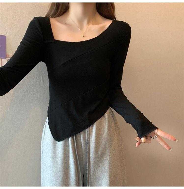 Camiseta de mujer de otoño e invierno nueva Spice Girls sexy entallada irregular Top de moda Ins chica cuello cuadrado camiseta de manga larga