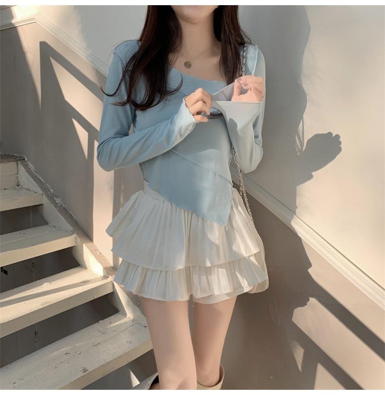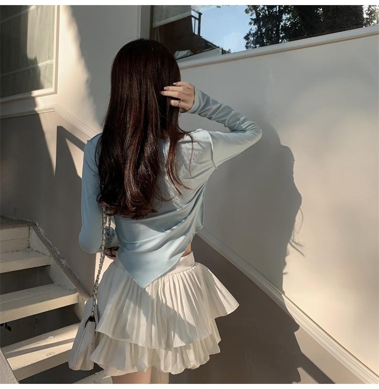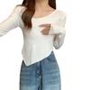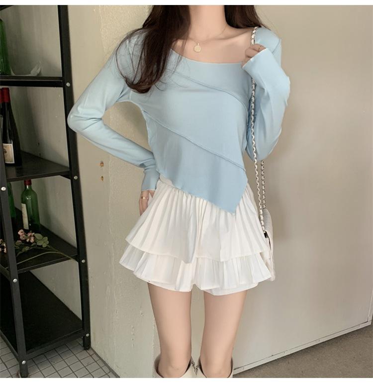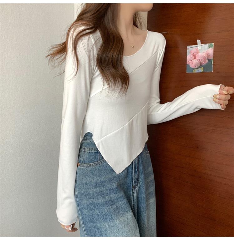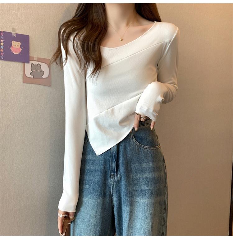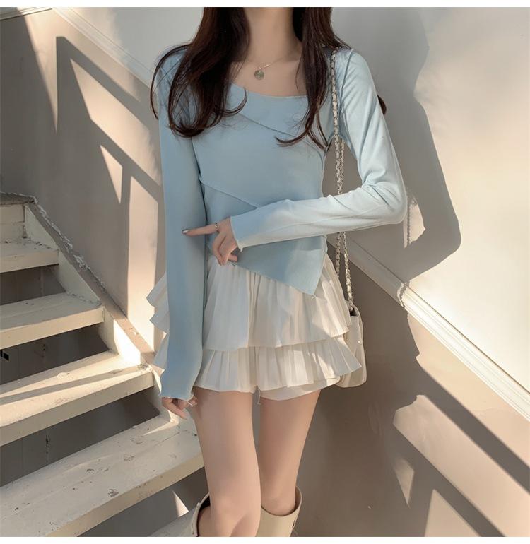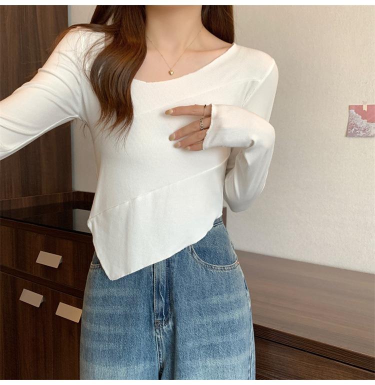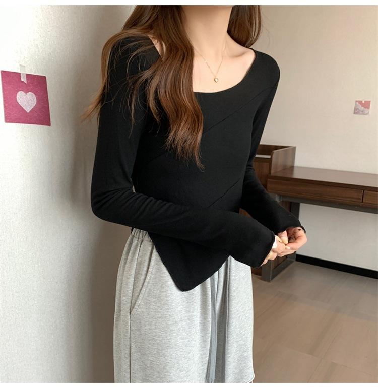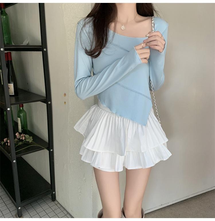 Camiseta de mujer de otoño e invierno nueva Spice Girls sexy entallada irregular Top de moda Ins chica cuello cuadrado camiseta de manga larga
